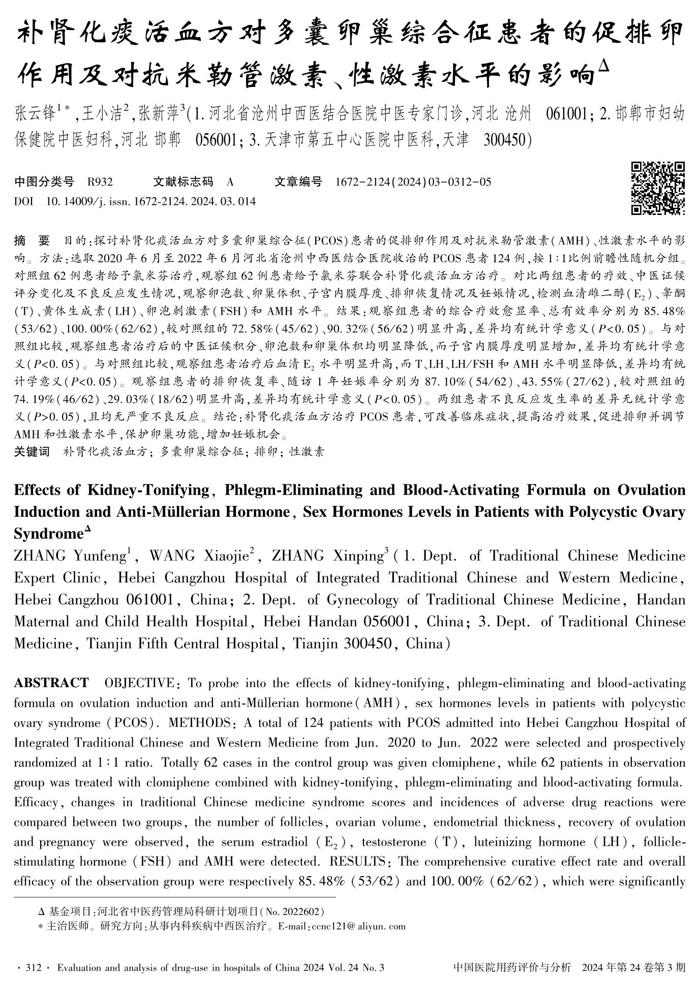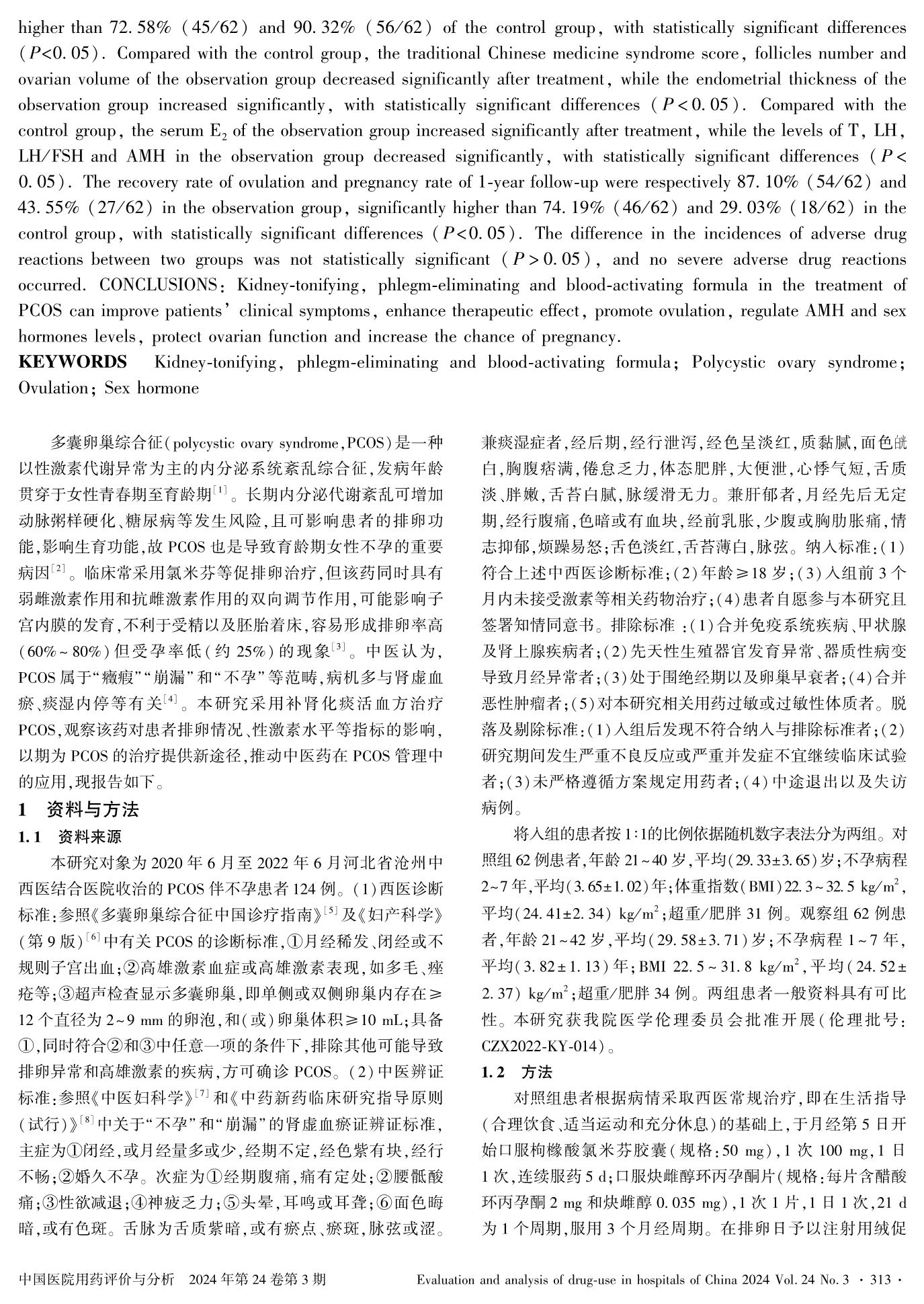 Effects of Kidney-Tonifying, Phlegm-Eliminating and Blood-Activating Formula on Ovulation Induction and Anti-Müllerian Hormone,Sex Hormones Levels in Patients with Polycystic Ovary Syndrome