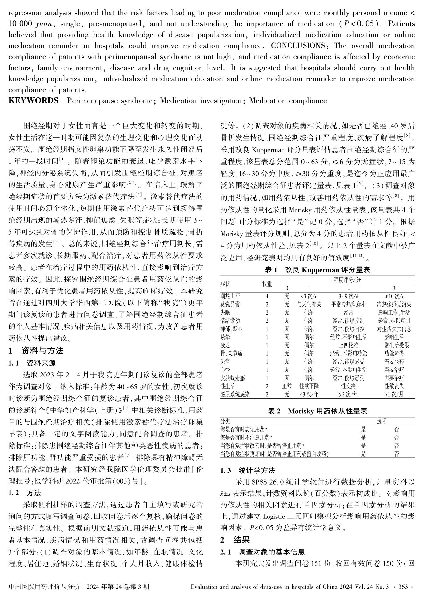 Investigation and Analysis of Medication Compliance in 150 Patients with Perimenopausal Syndrome
