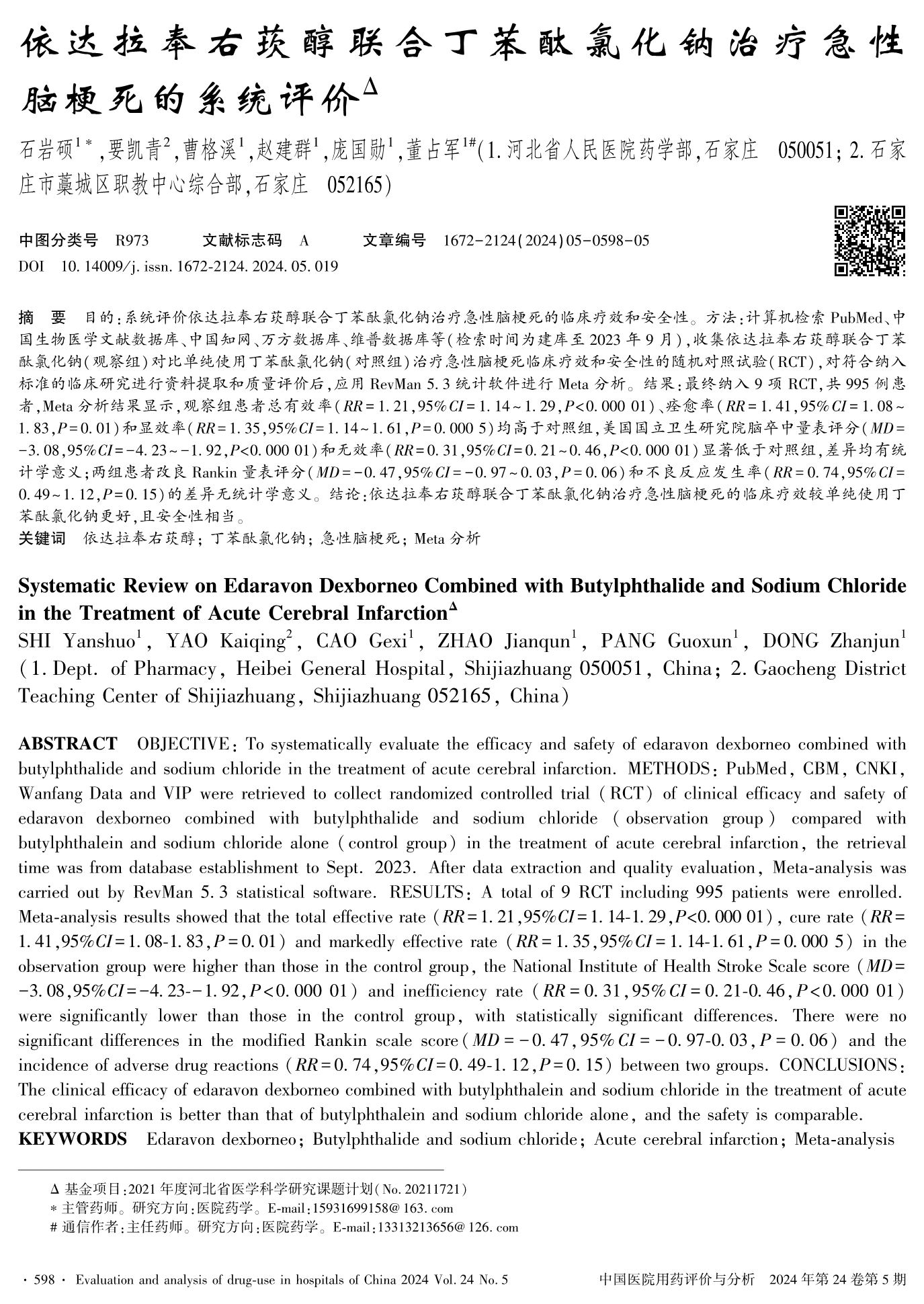 依达拉奉右莰醇联合丁苯酞氯化钠治疗急性脑梗死的系统评价