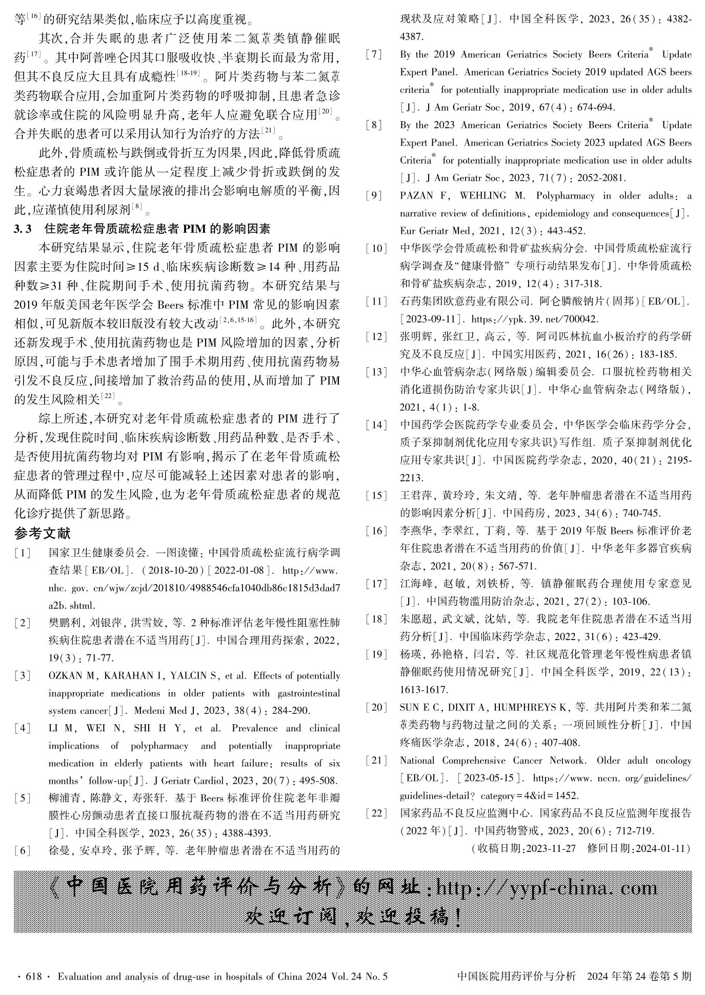 老年骨质疏松症患者潜在不适当用药的影响因素分析