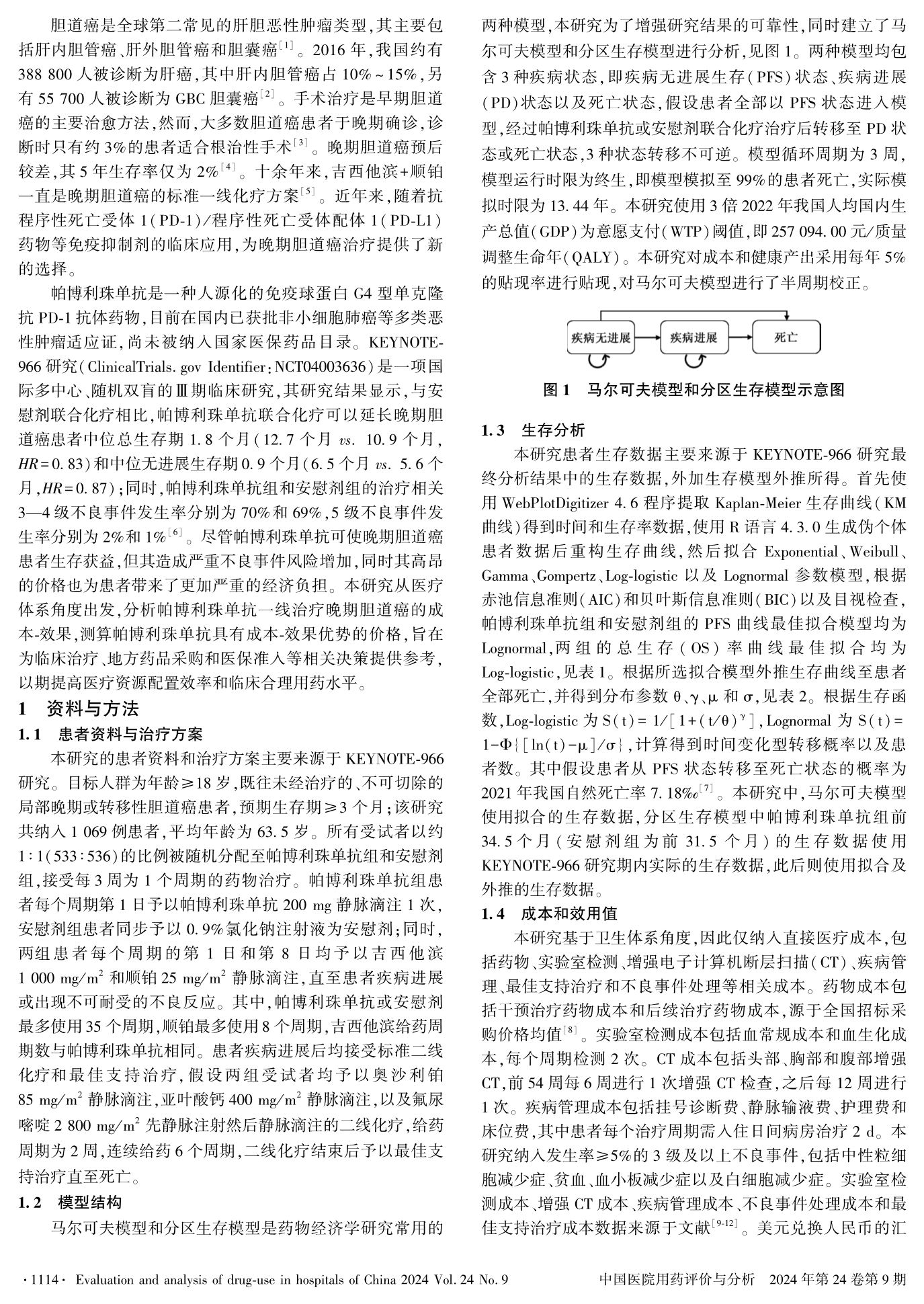 基于两种模型的帕博利珠单抗联合化疗一线治疗晚期胆道癌的经济学评价
