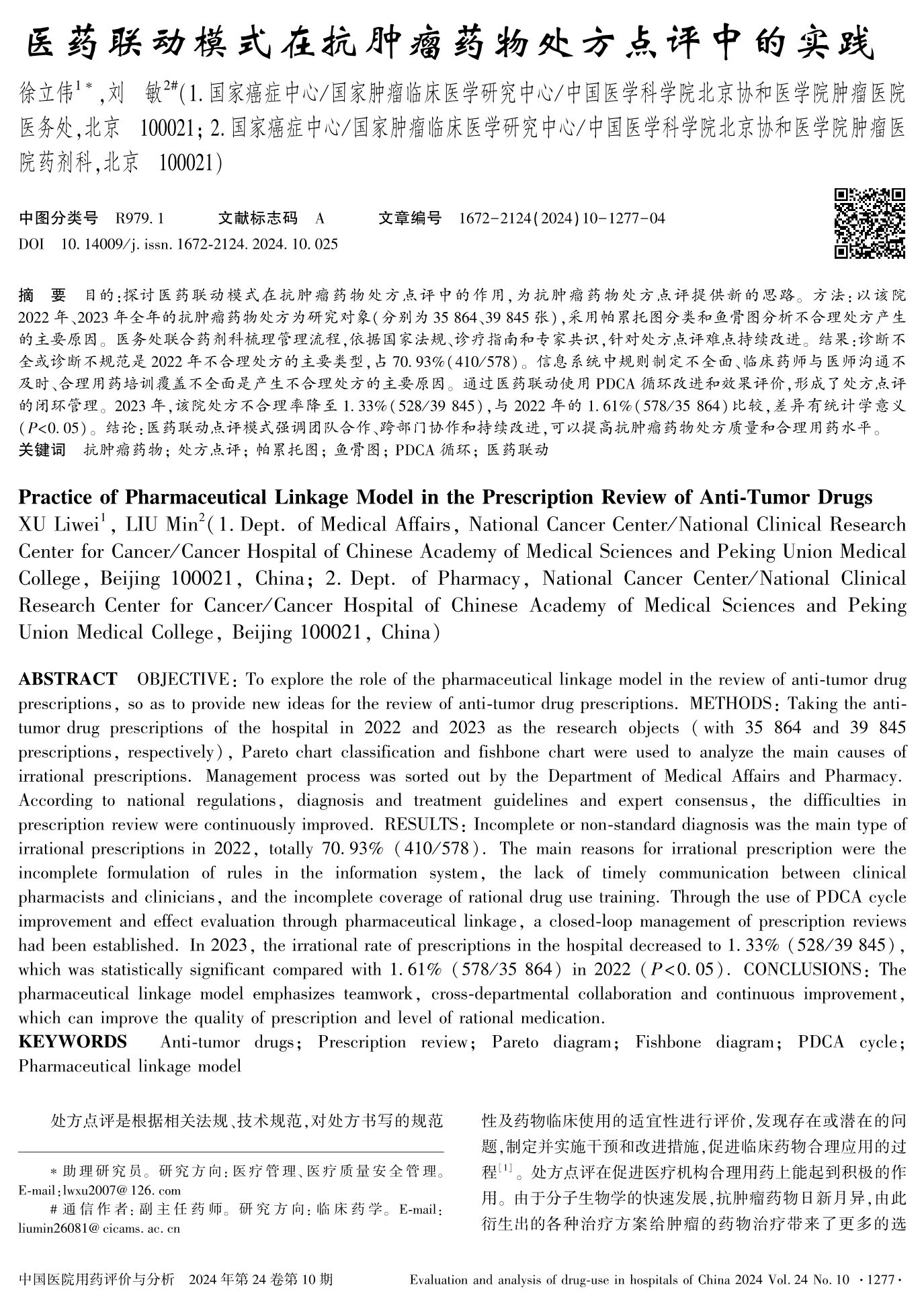 医药联动模式在抗肿瘤药物处方点评中的实践