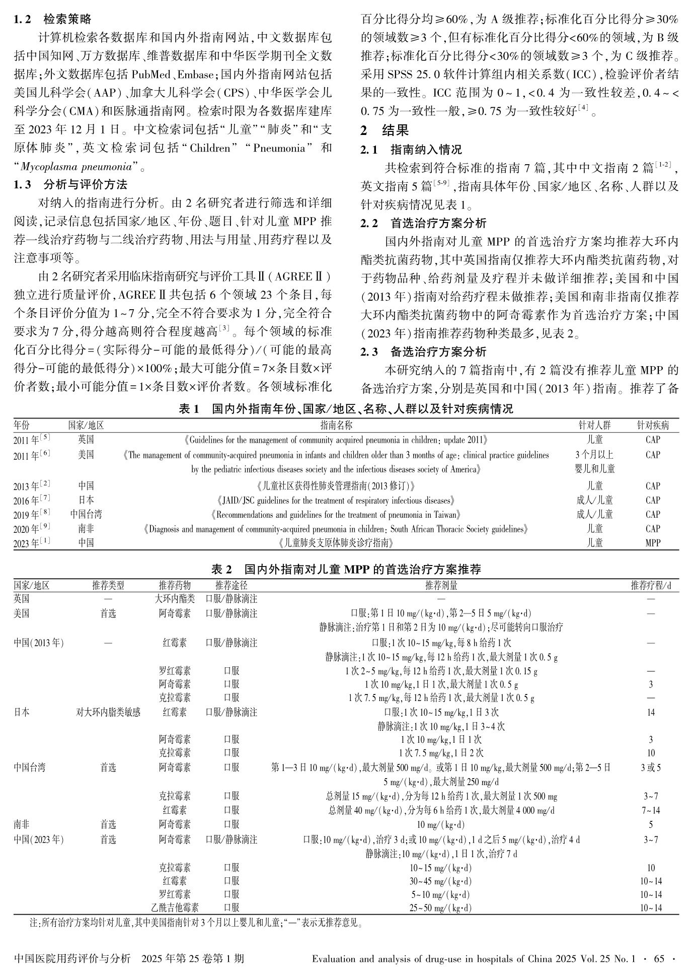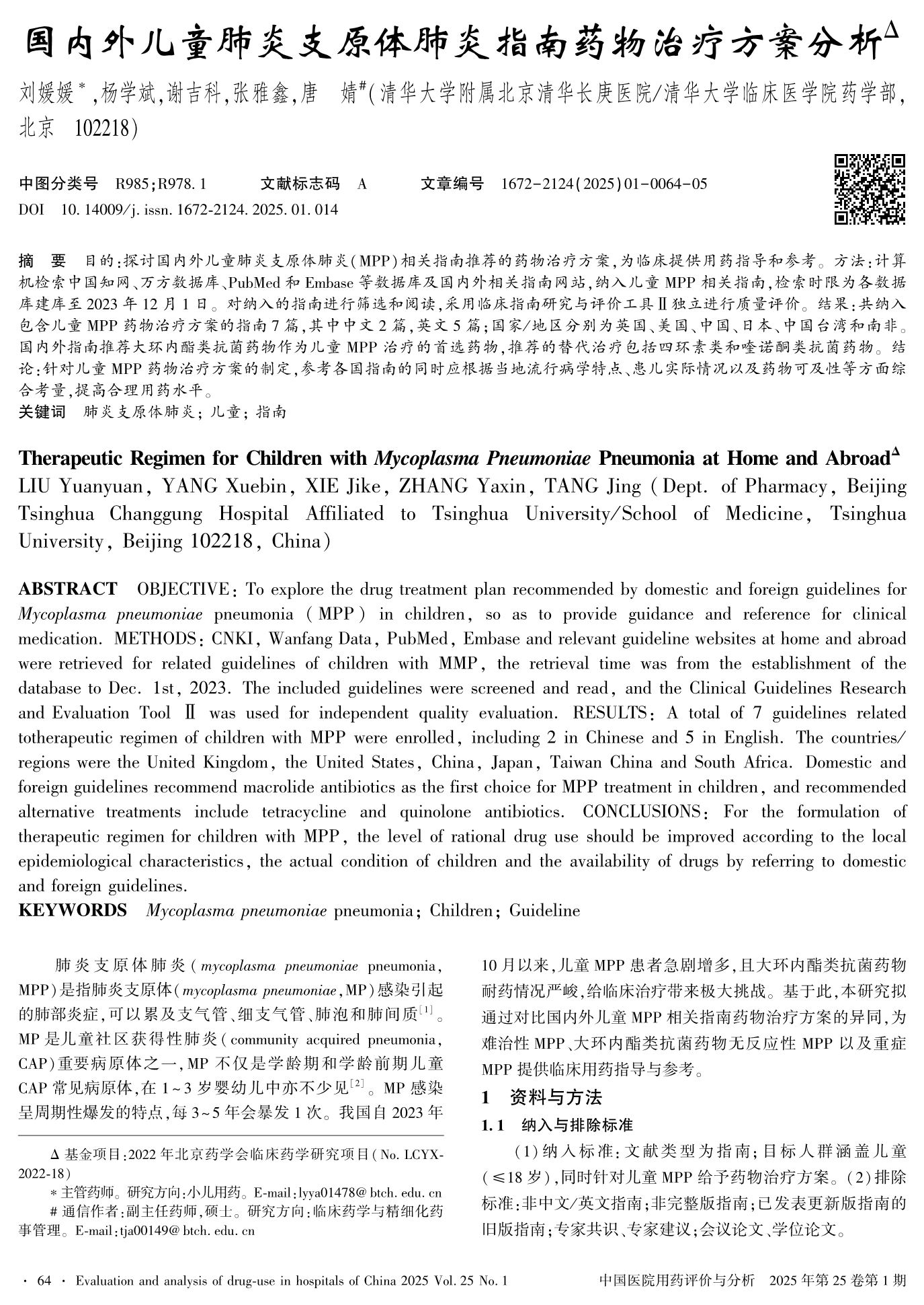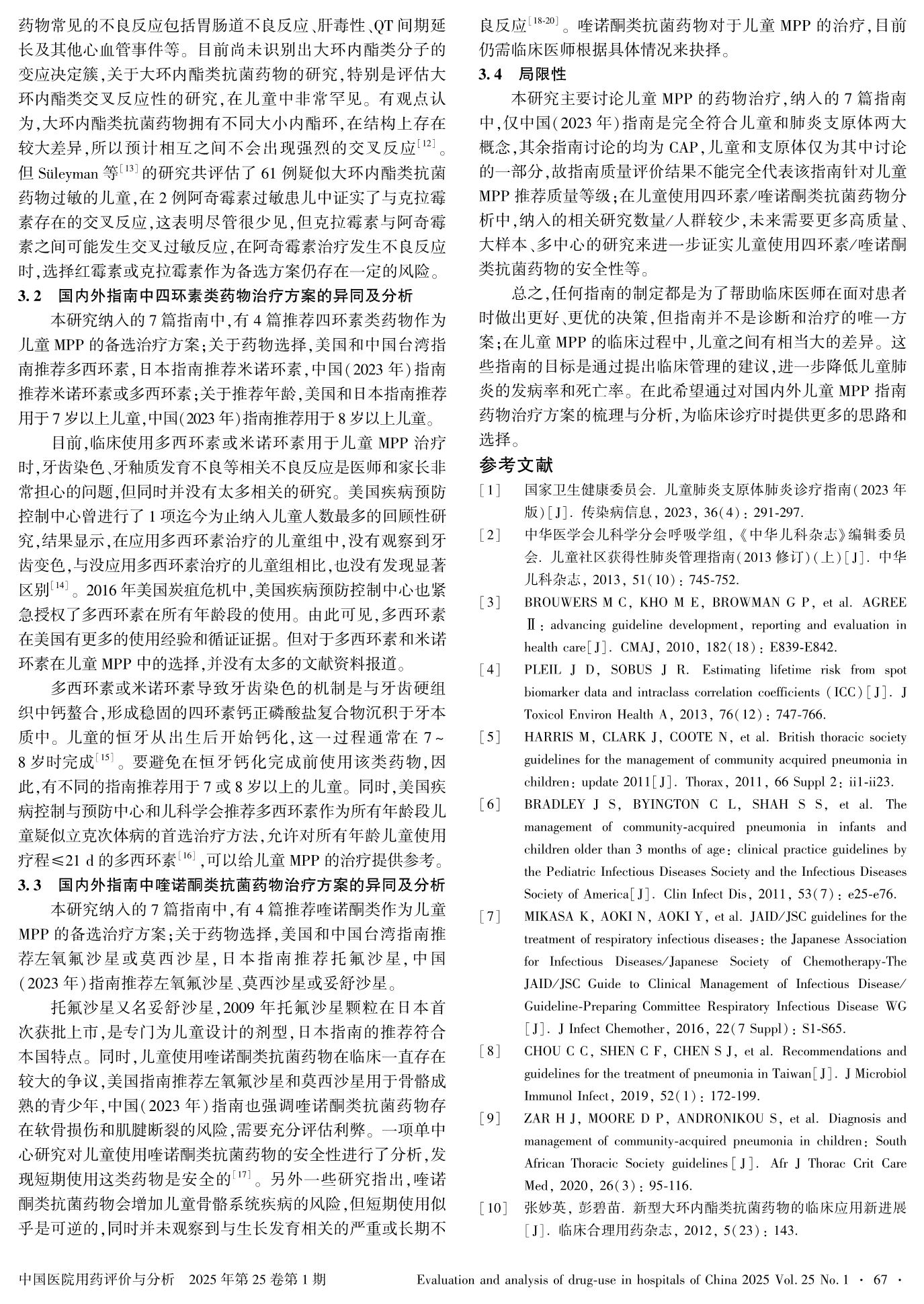 国内外儿童肺炎支原体肺炎指南药物治疗方案分析