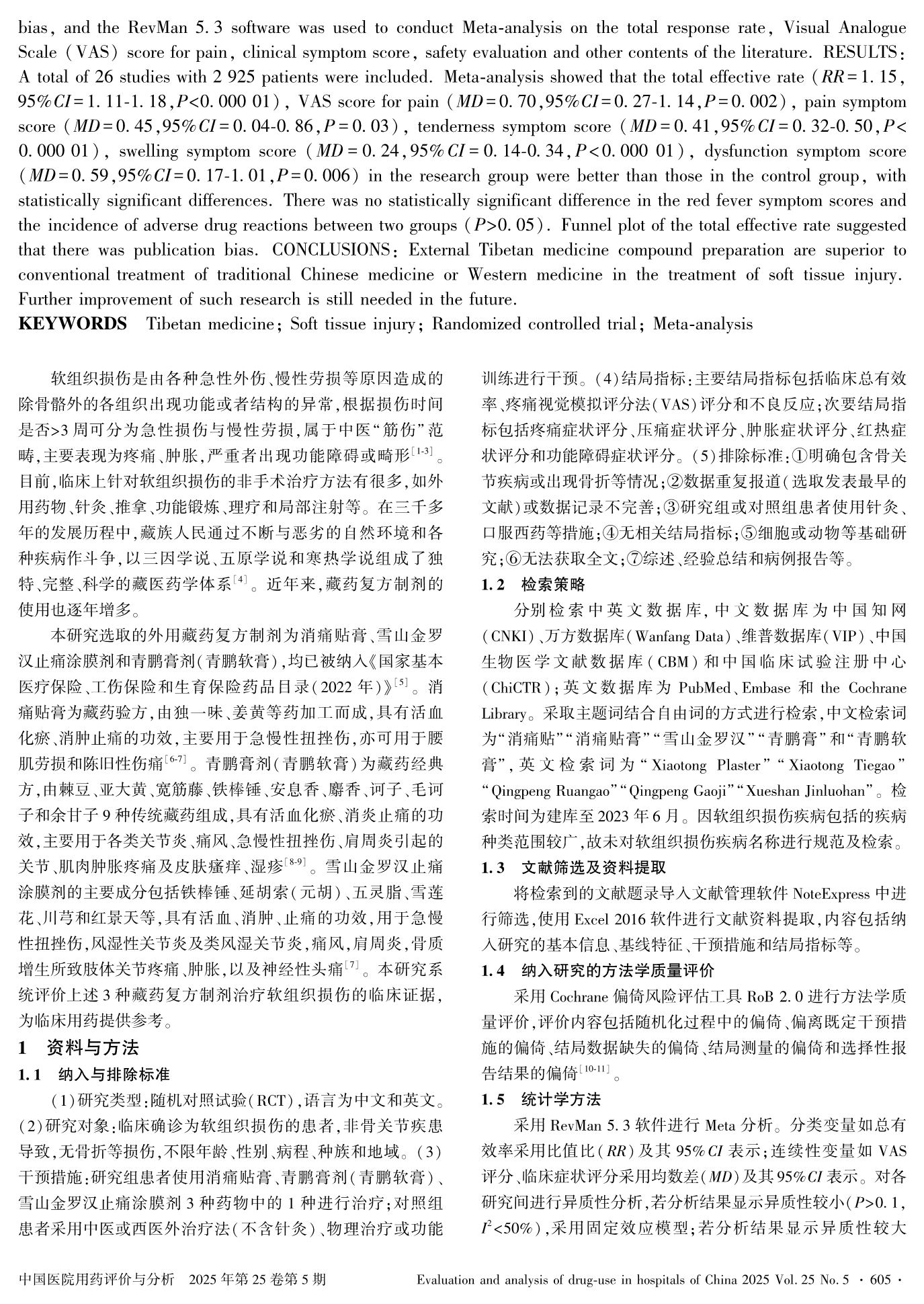 外用藏药复方制剂治疗软组织损伤的有效性和安全性的Meta分析