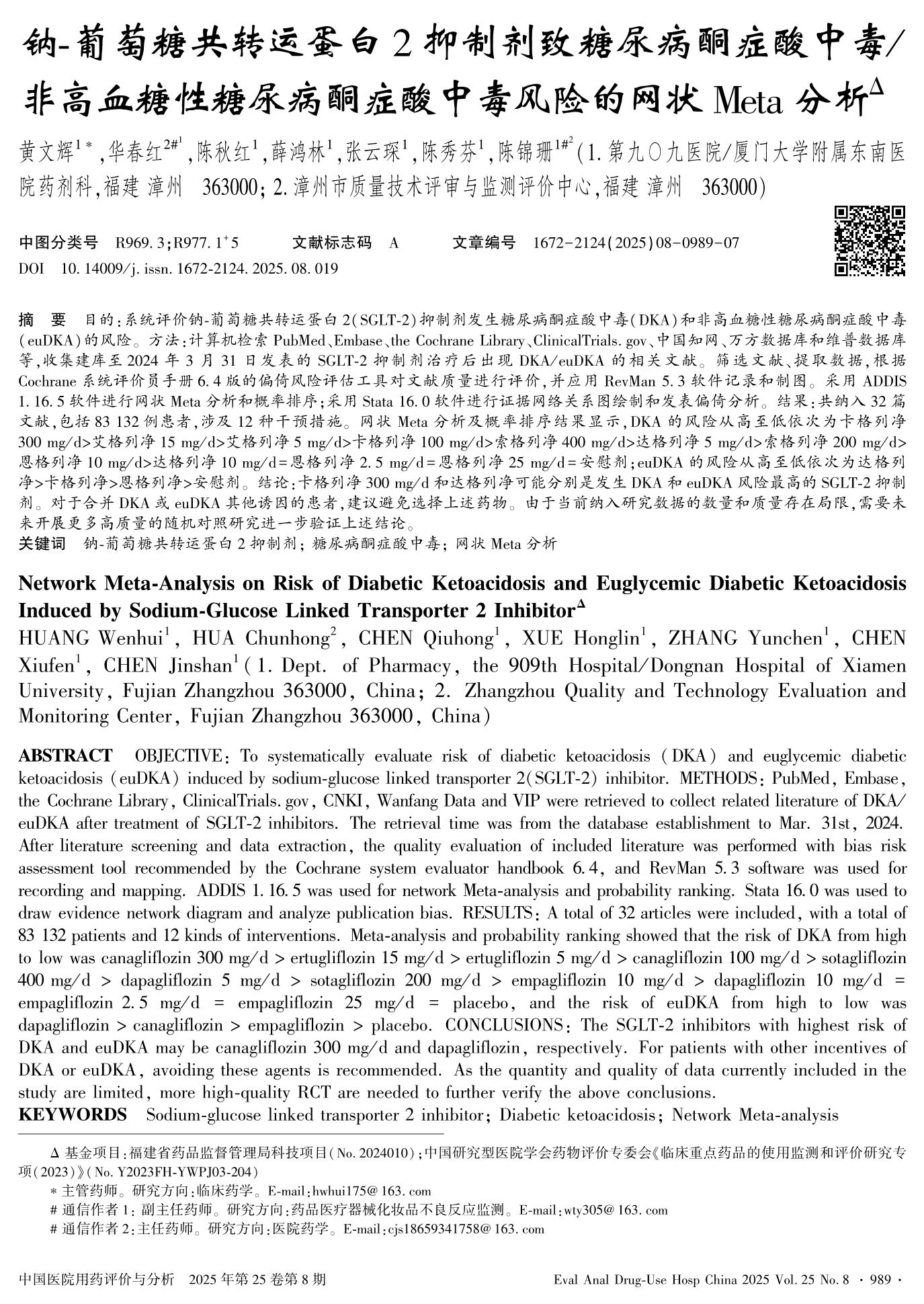 Network Meta-Analysis on Risk of Diabetic Ketoacidosis and Euglycemic Diabetic Ketoacidosis Induced by Sodium-Glucose Linked Transporter 2 Inhibitor