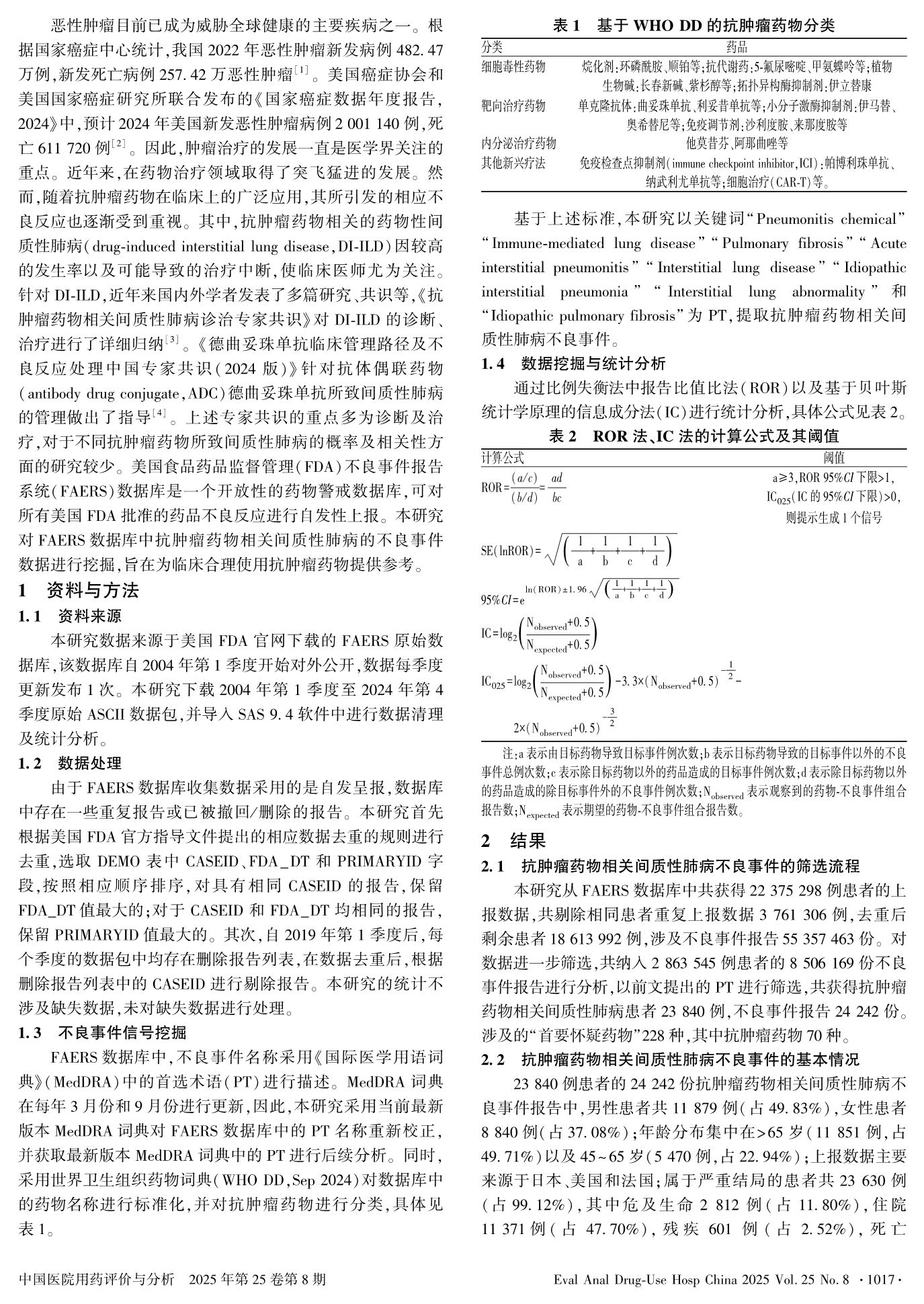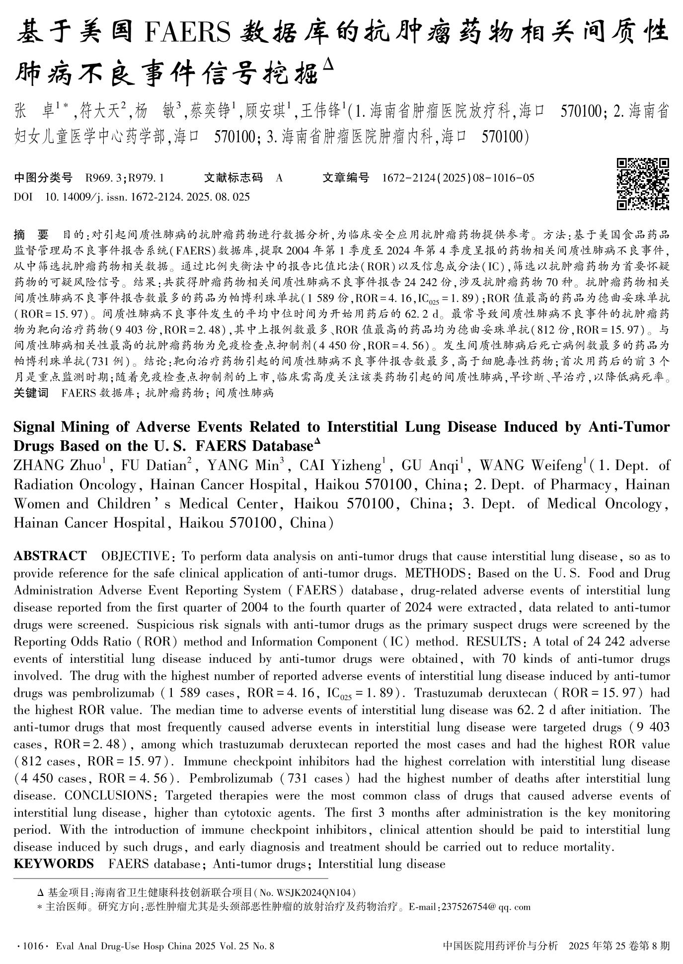 Signal Mining of Adverse Events Related to Interstitial Lung Disease Induced by Anti-Tumor Drugs Based on the U. S. FAERS Database