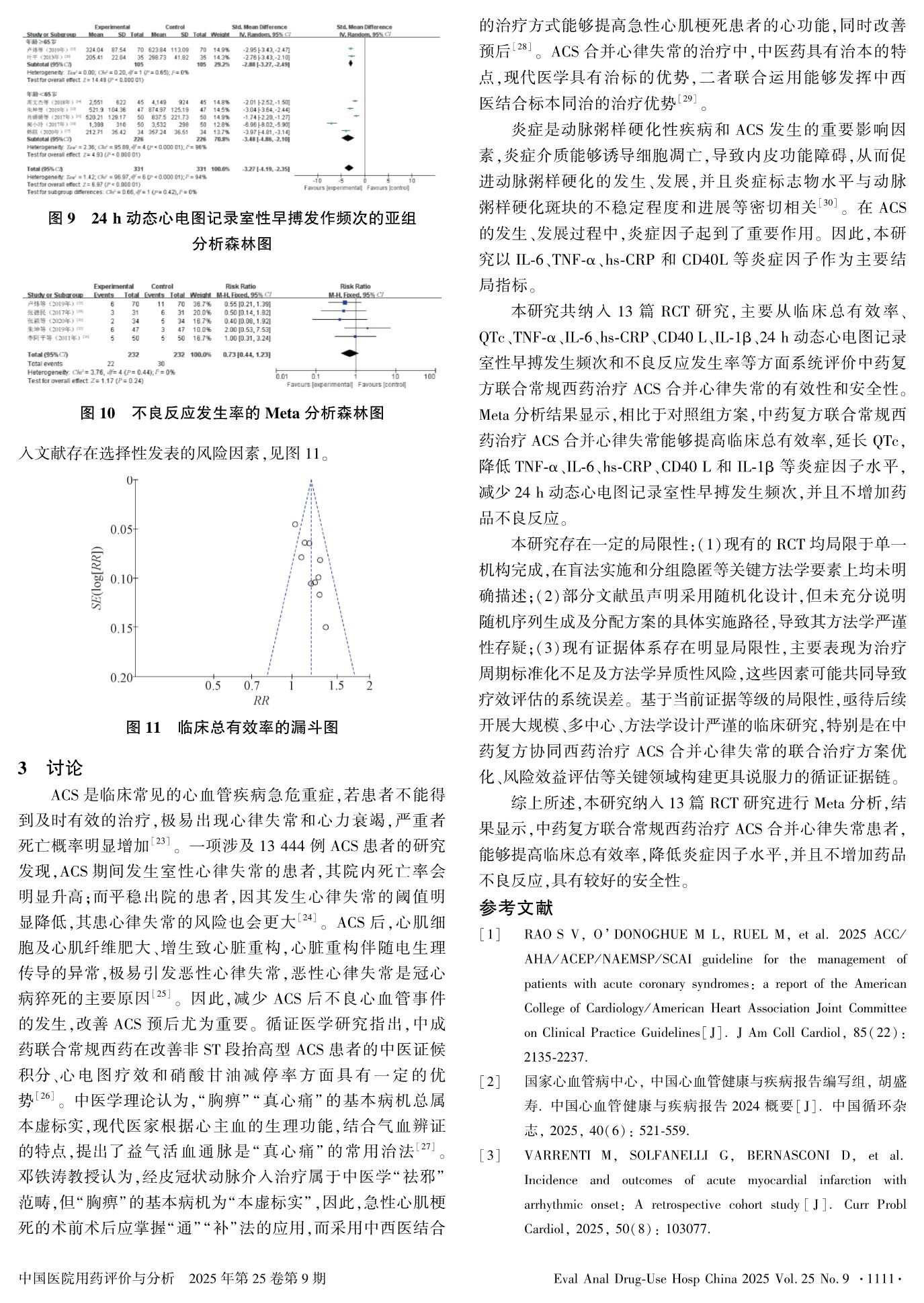 Meta-Analysis on Clinical Efficacy and Safety of Traditional Chinese Medicine Compound Combined with Conventional Western Medicine in the Treatment of Acute Coronary Syndrome Complicated with Arrhythmia ZHOU Lijun, WANG Xinyue, WU Min
