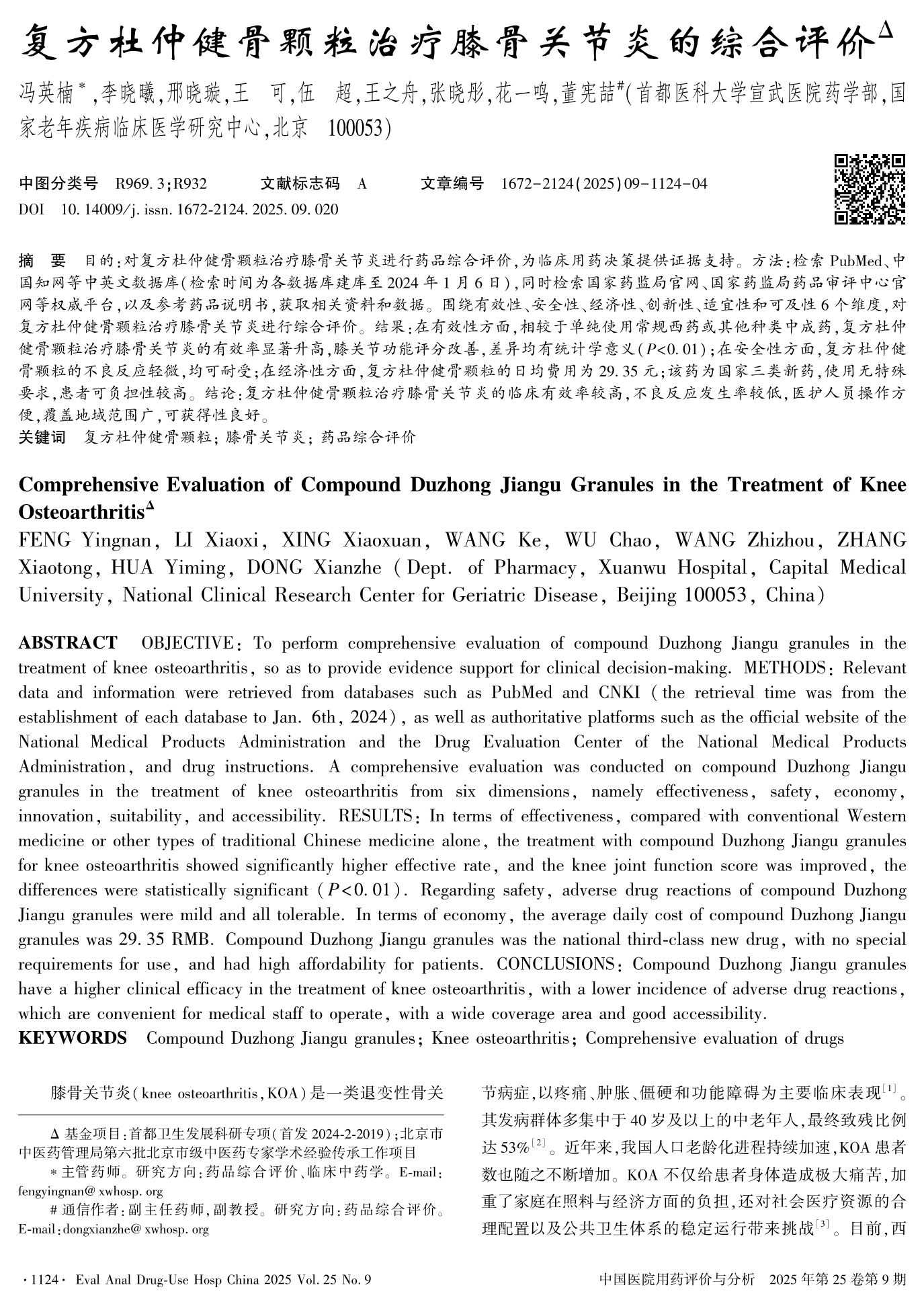 Comprehensive Evaluation of Compound Duzhong Jiangu Granules in the Treatment of Knee Osteoarthritis