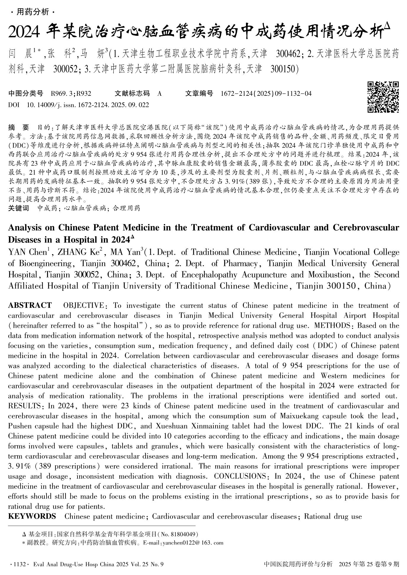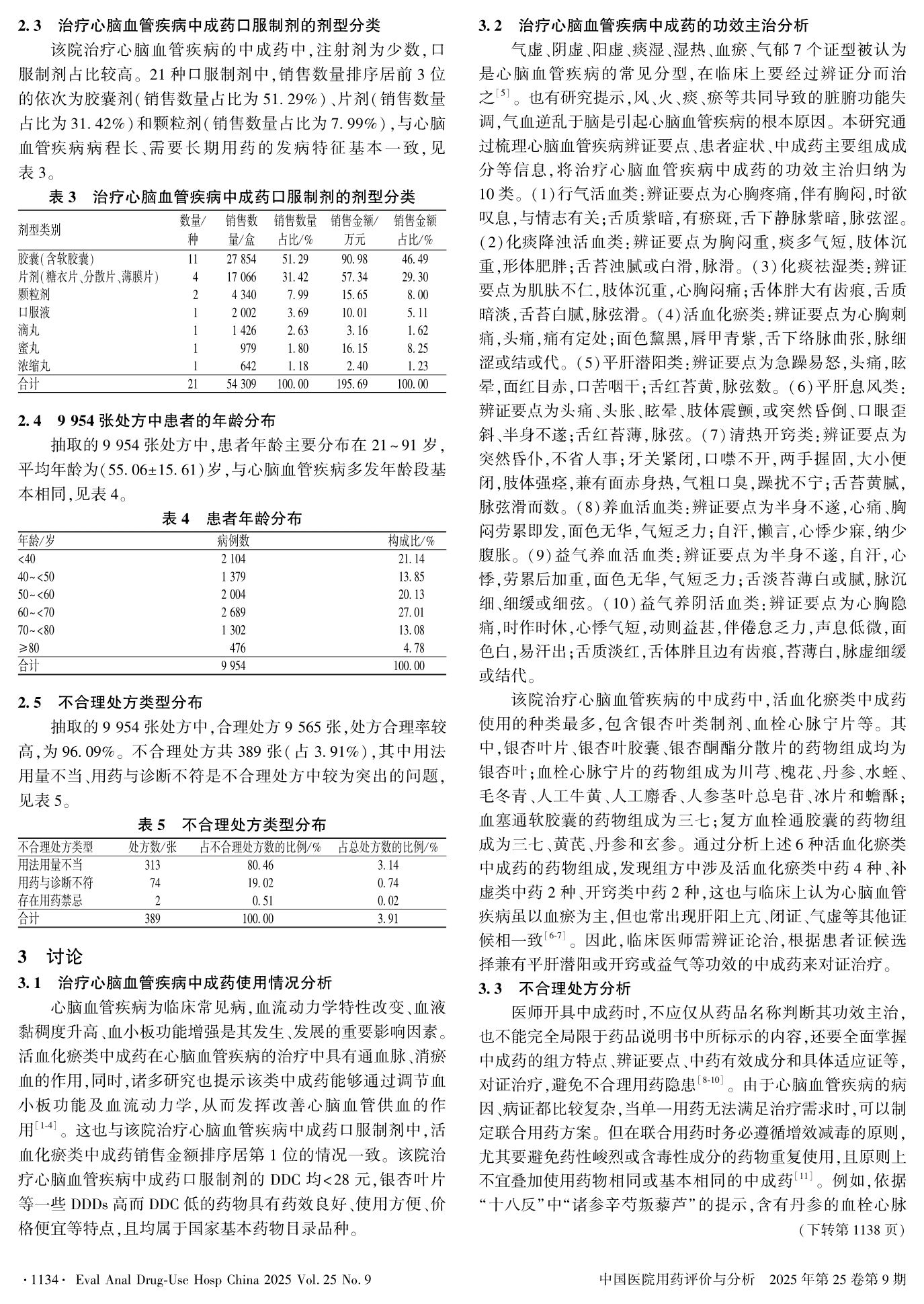 2024年某院治疗心脑血管疾病的中成药使用情况分析