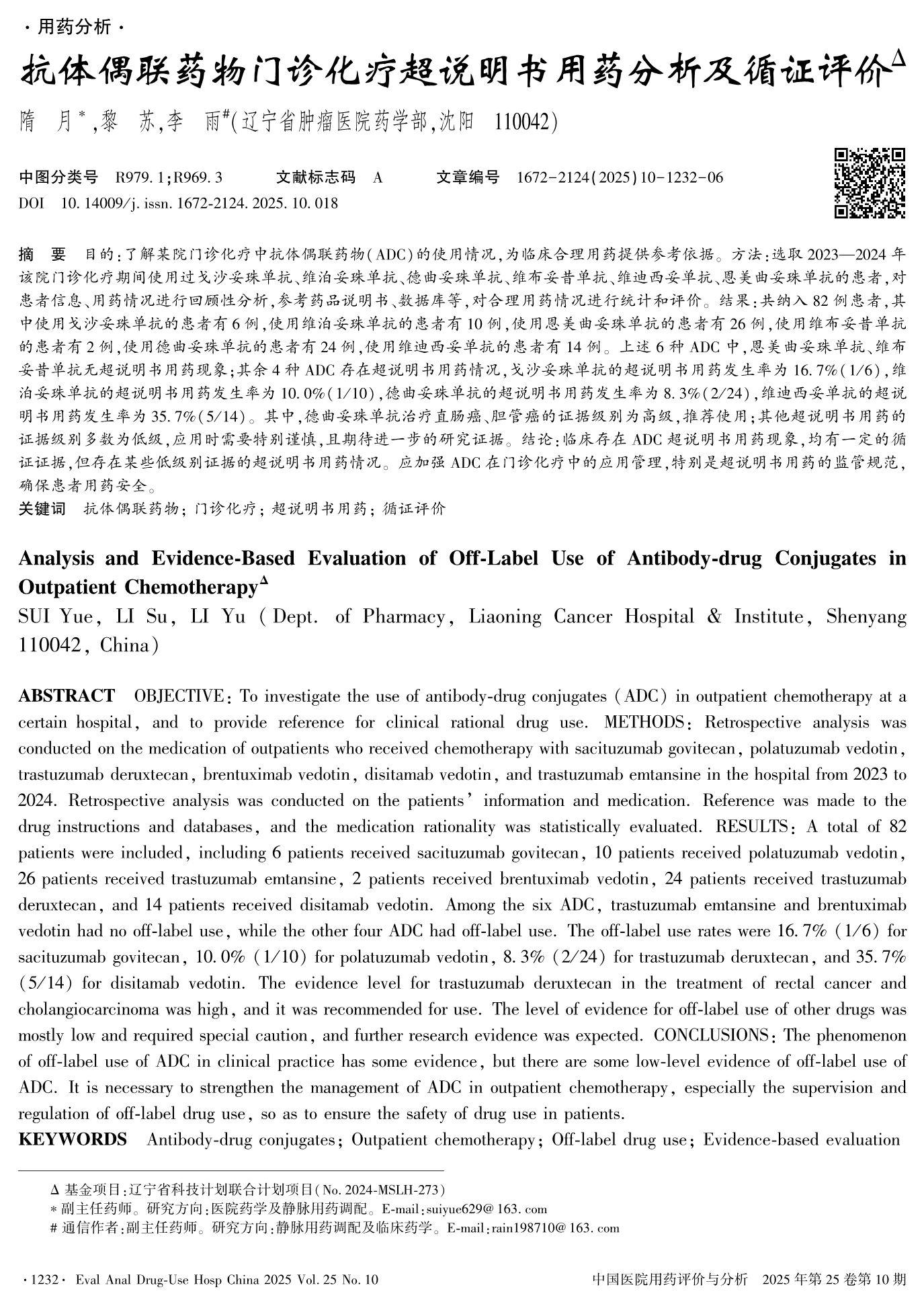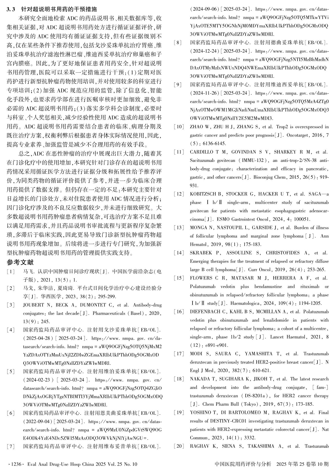 抗体偶联药物门诊化疗超说明书用药分析及循证评价
