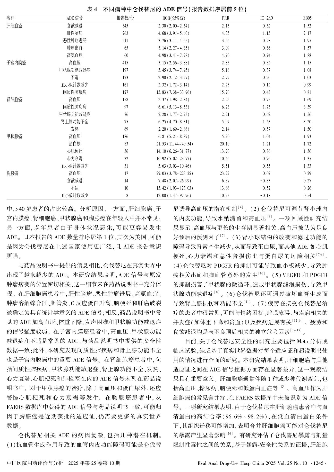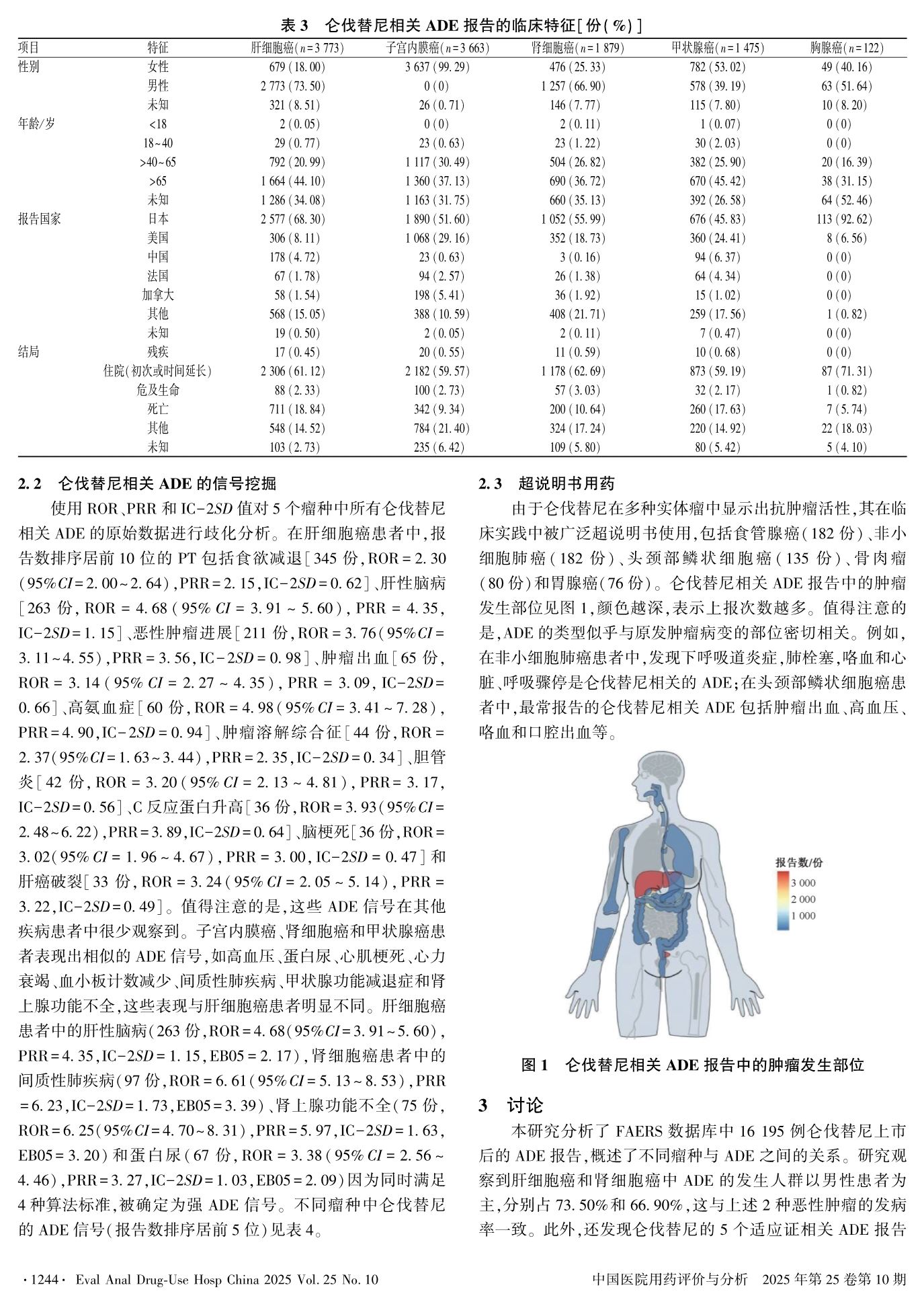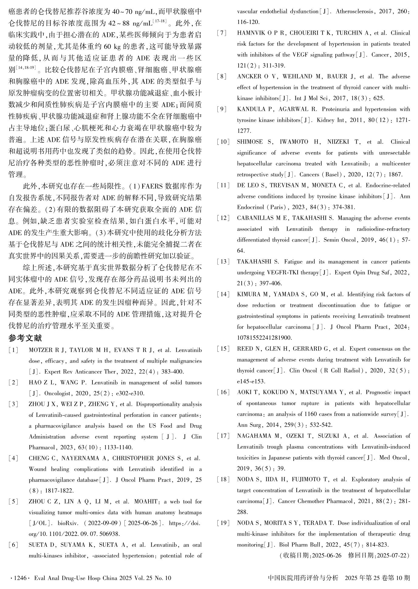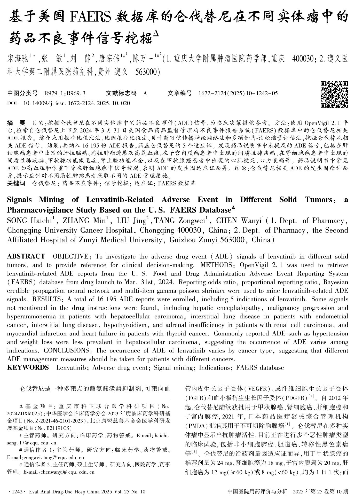 基于美国FAERS数据库的仑伐替尼在不同实体瘤中的药品不良事件信号挖掘