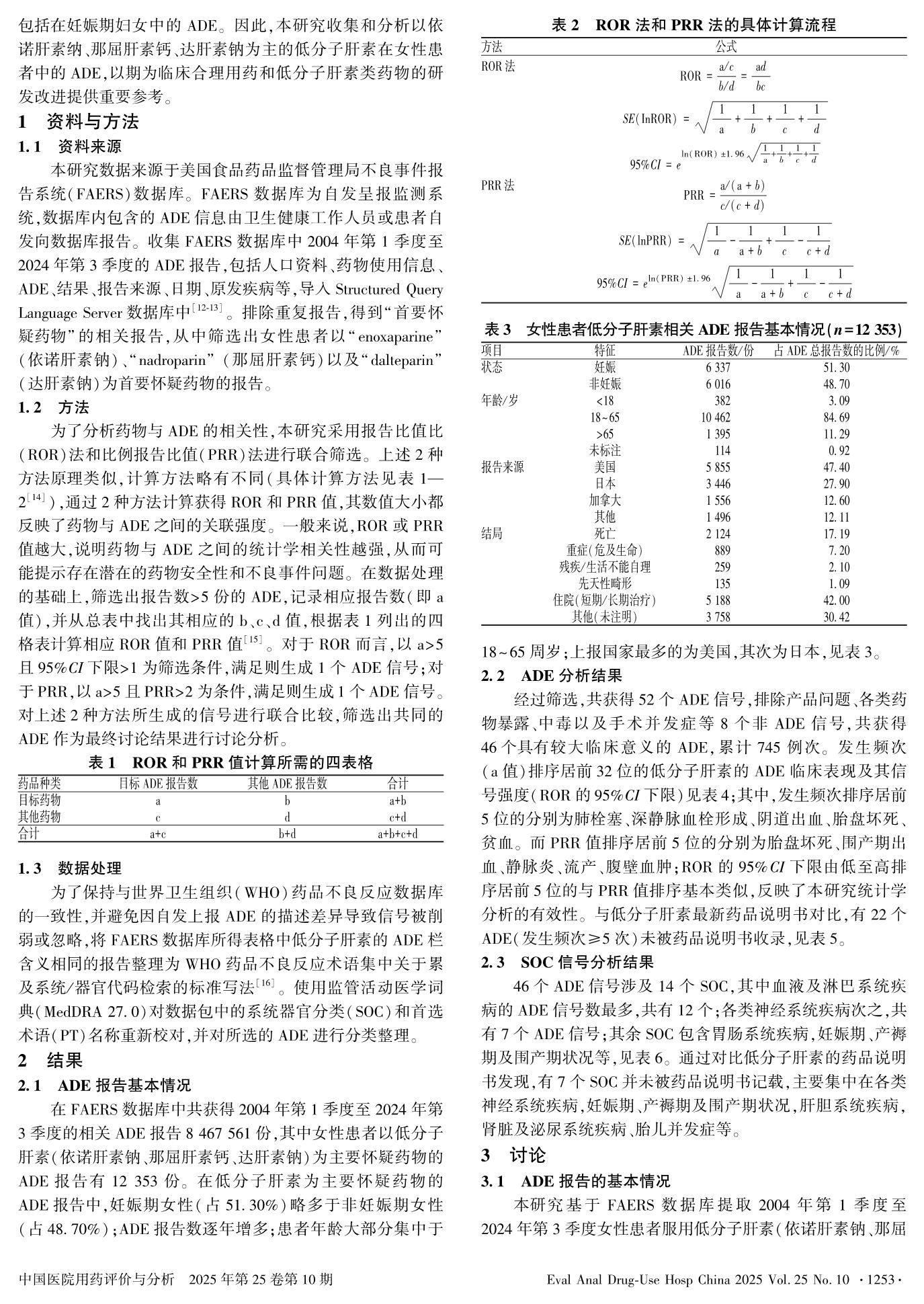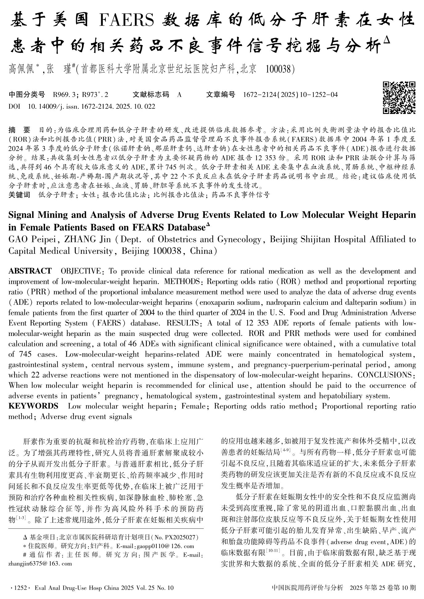 基于美国FAERS数据库的低分子肝素在女性患者中的相关药品不良事件信号挖掘与分析