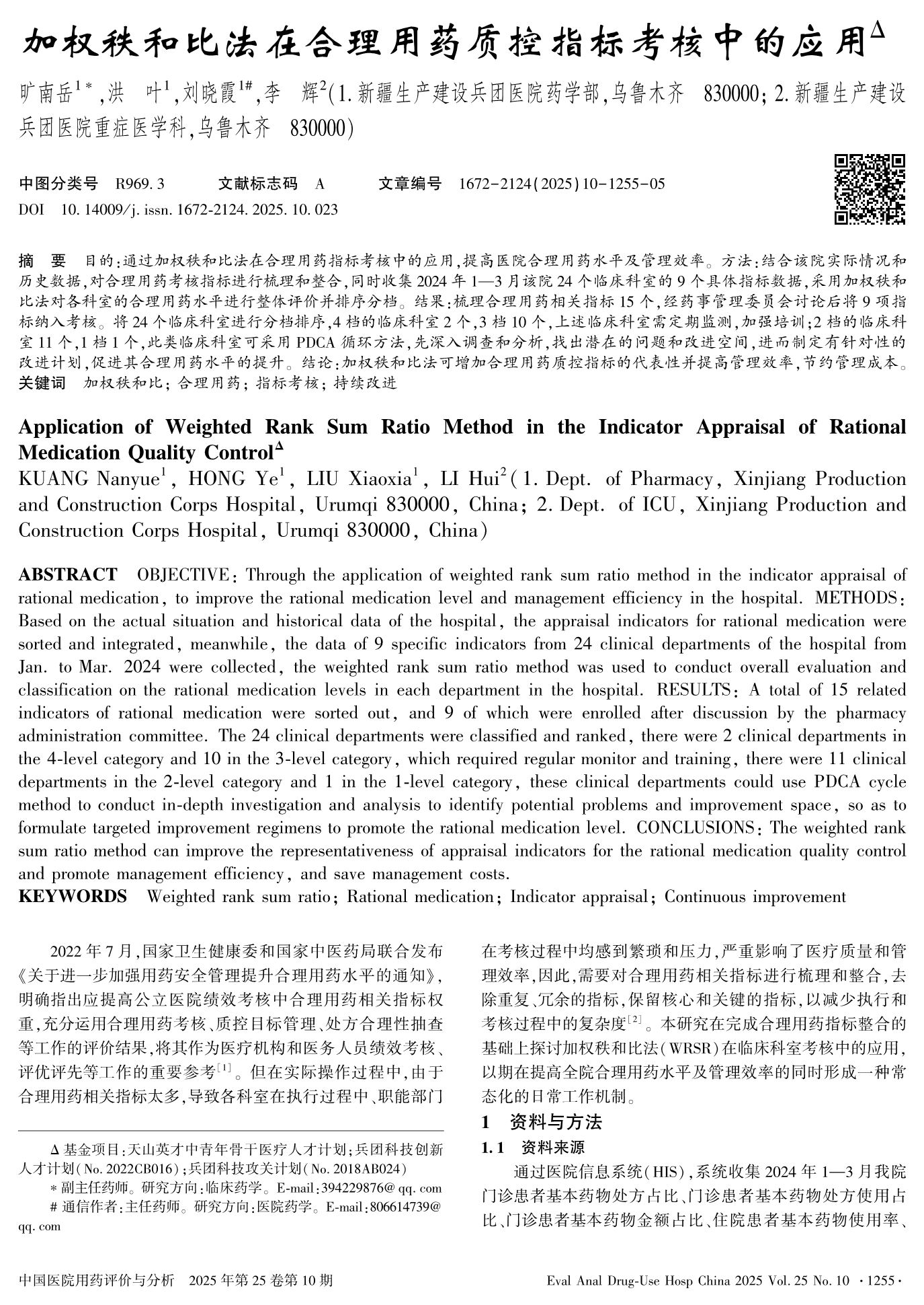 加权秩和比法在合理用药质控指标考核中的应用