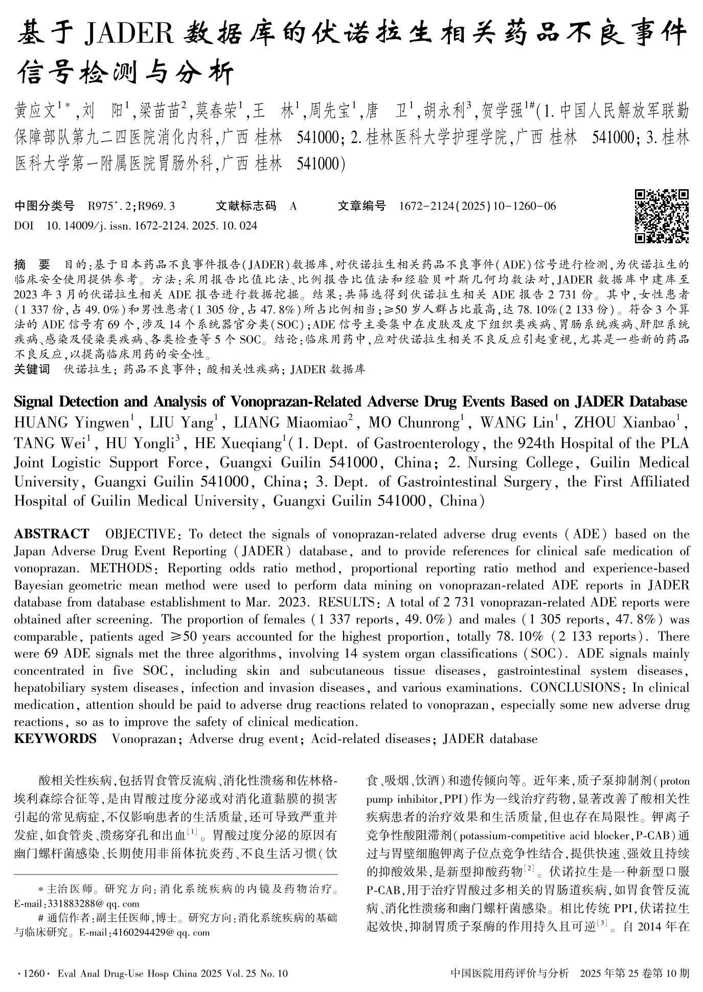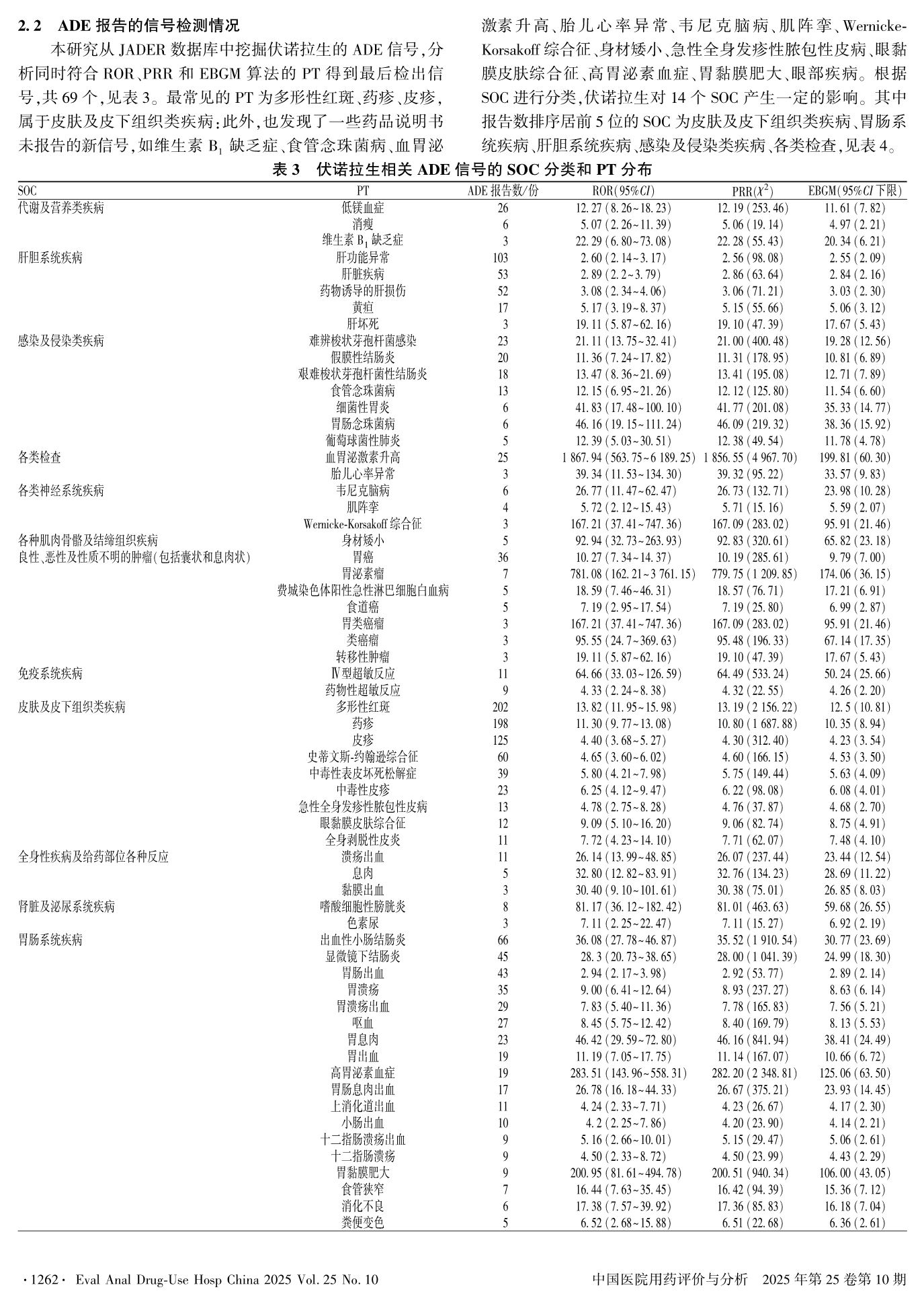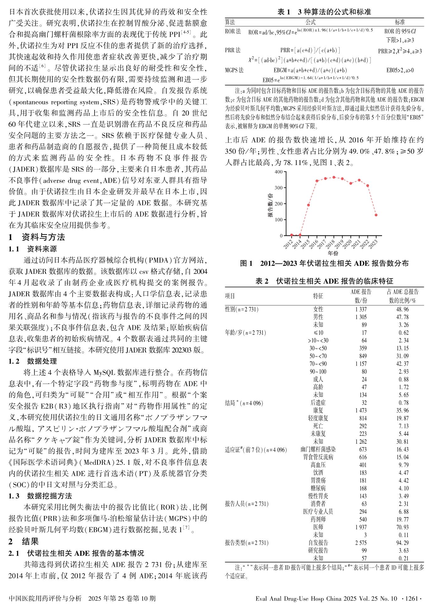 基于JADER数据库的伏诺拉生相关药品不良事件信号检测与分析