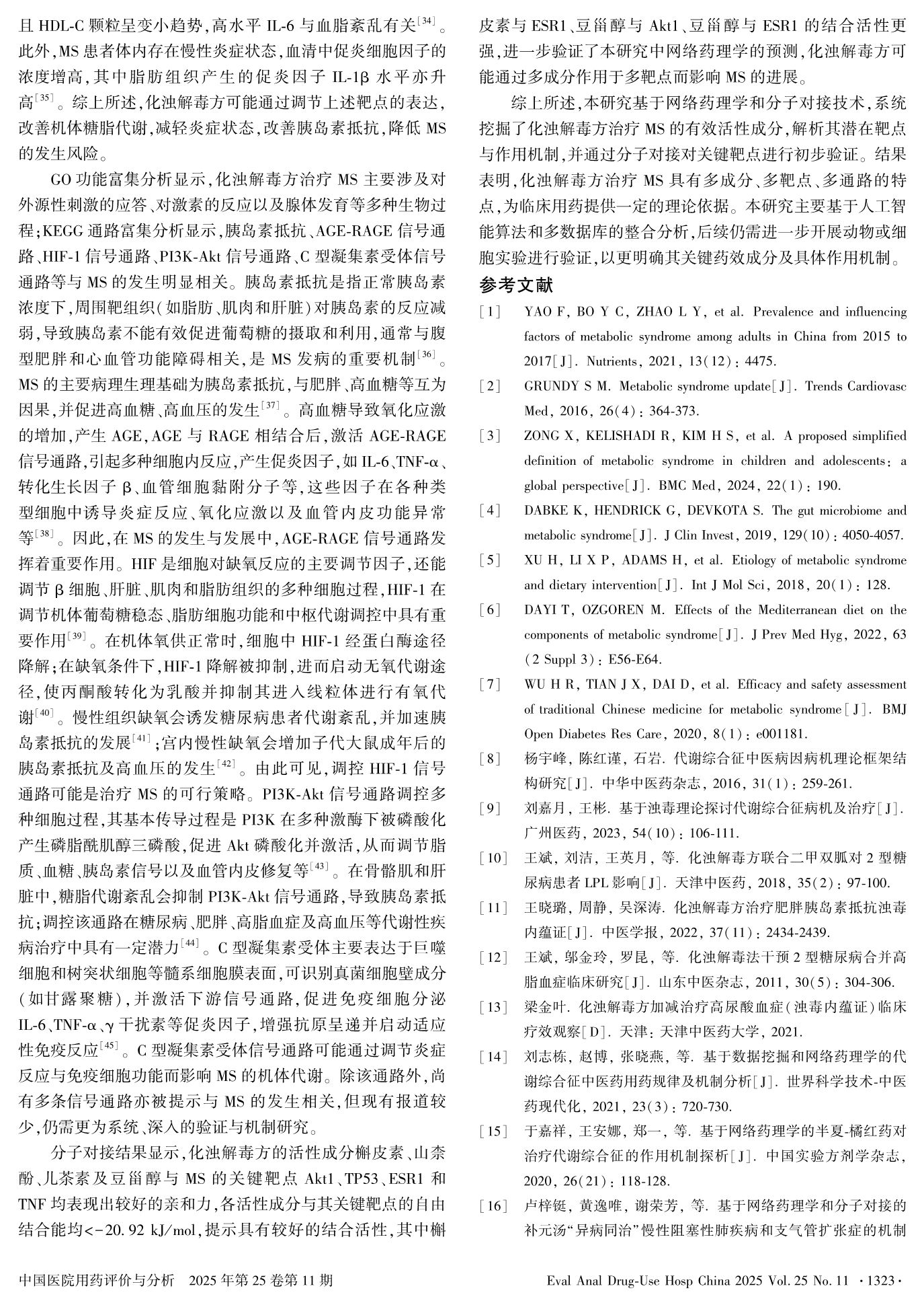基于网络药理学及分子对接技术探究化浊解毒方治疗代谢综合征的作用机制