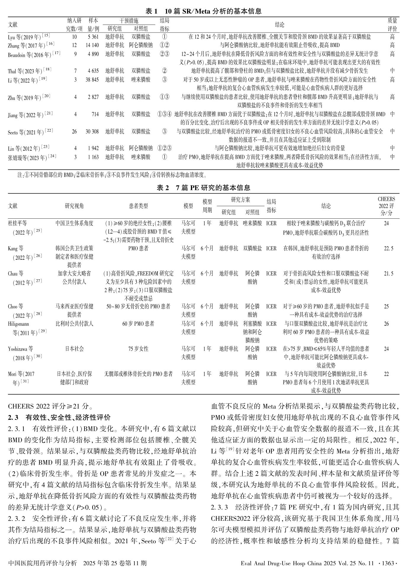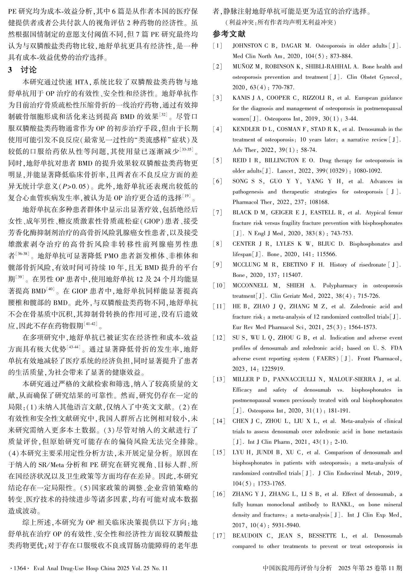 地舒单抗对比双膦酸盐类药物用于骨质疏松症的快速卫生技术评估