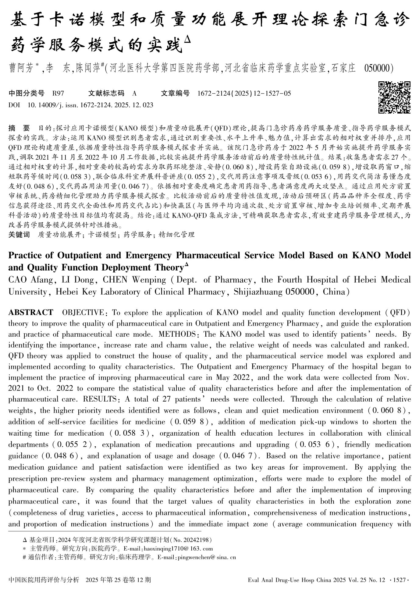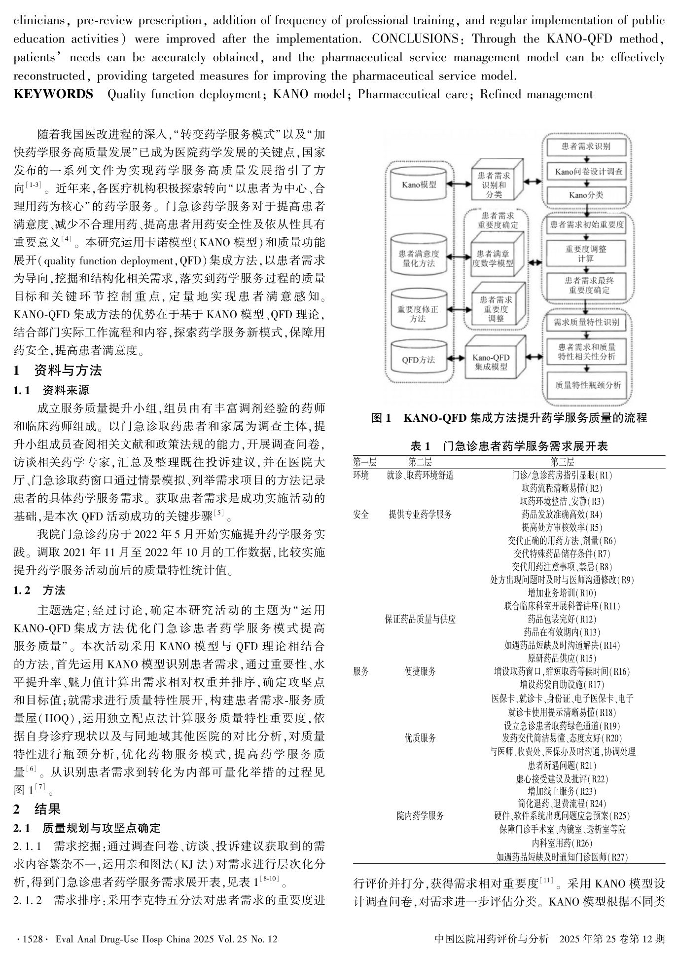 基于卡诺模型和质量功能展开理论探索门急诊药学服务模式的实践