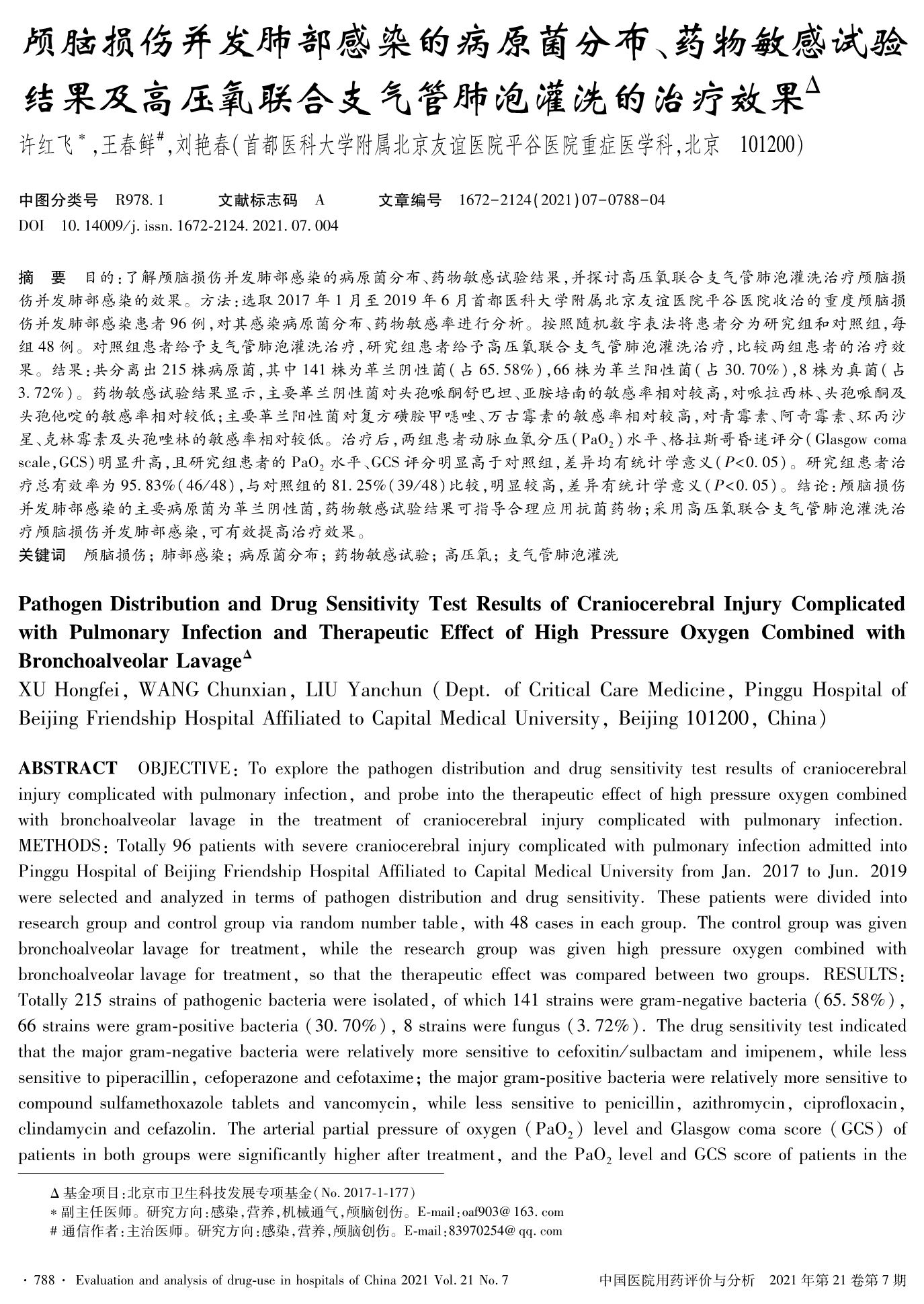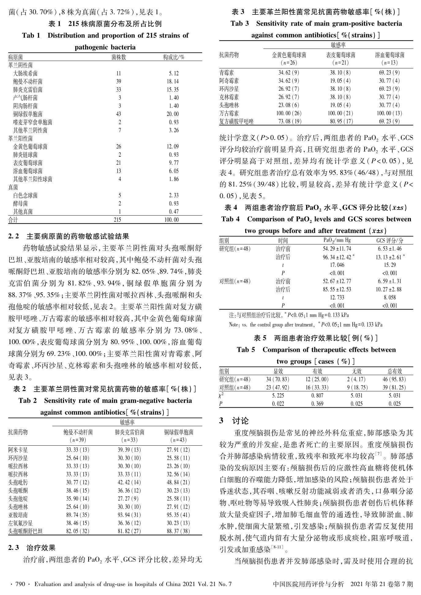 颅脑损伤并发肺部感染的病原菌分布、药物敏感试验结果及高压氧联合支气管肺泡灌洗的治疗效果