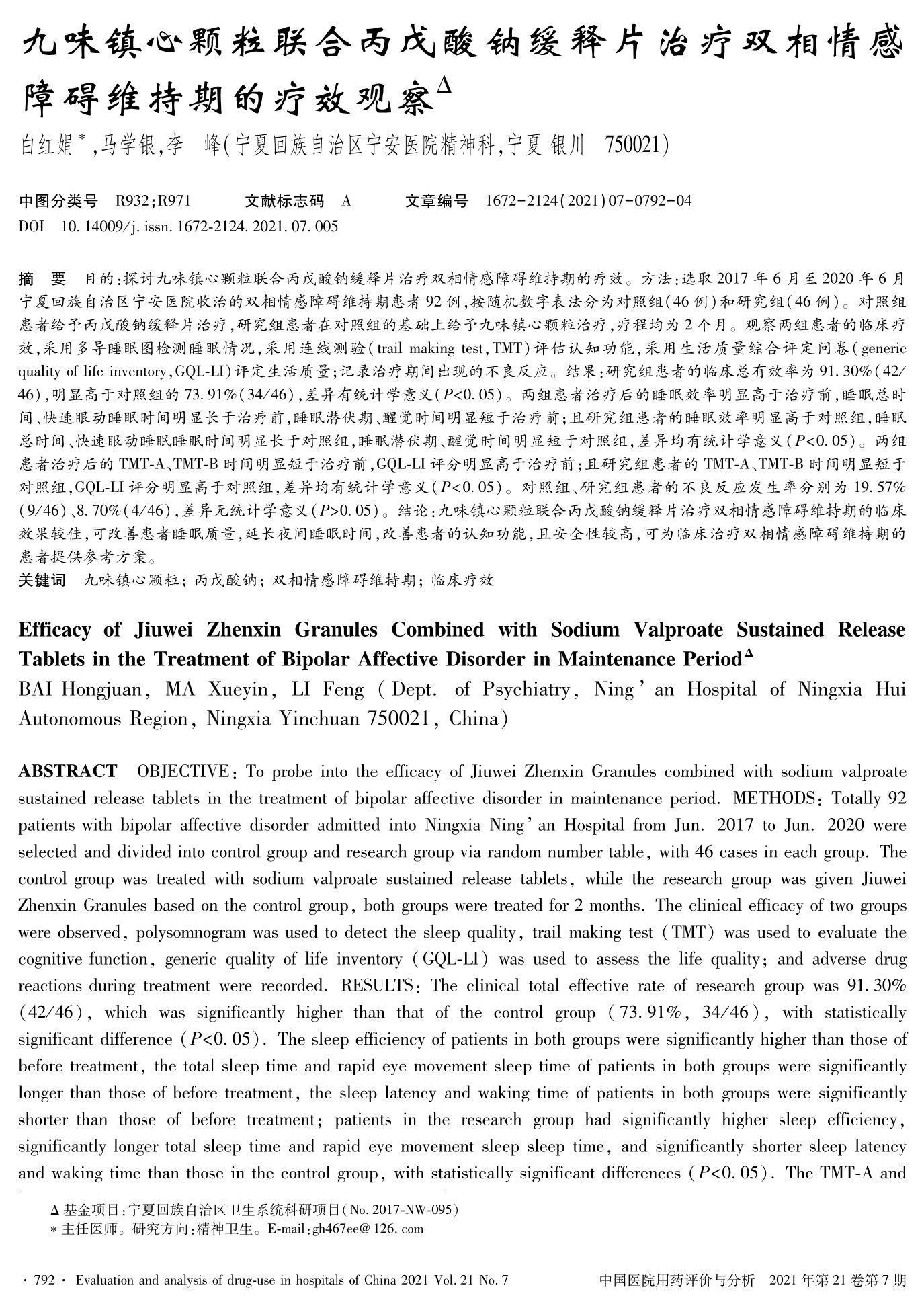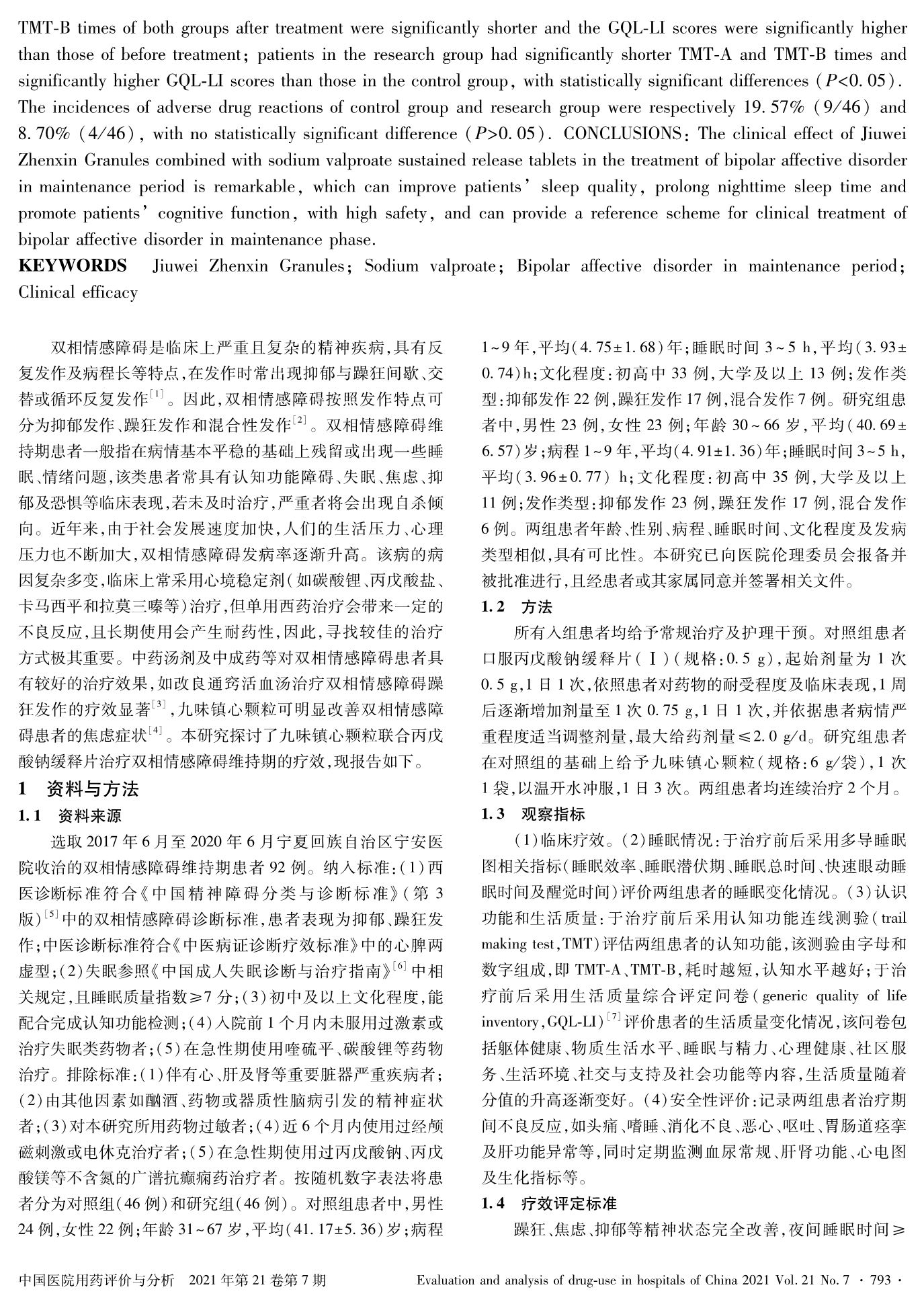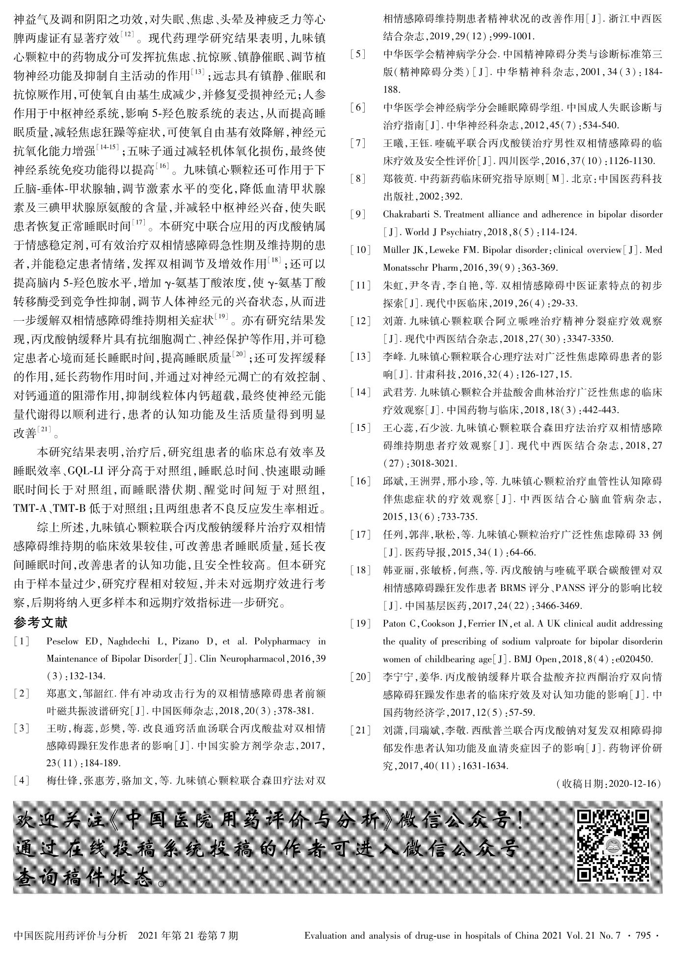 九味镇心颗粒联合丙戊酸钠缓释片治疗双相情感障碍维持期的疗效观察