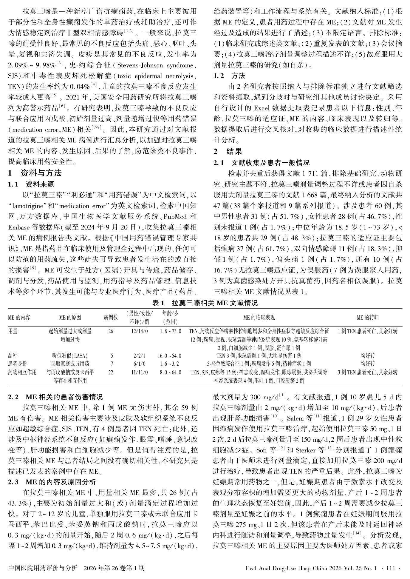 拉莫三嗪相关用药错误病例报告文献分析