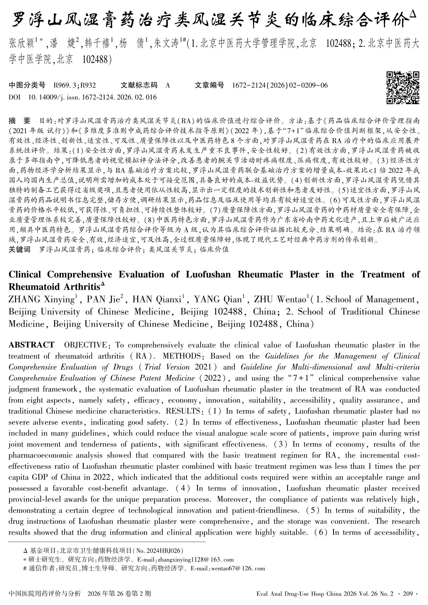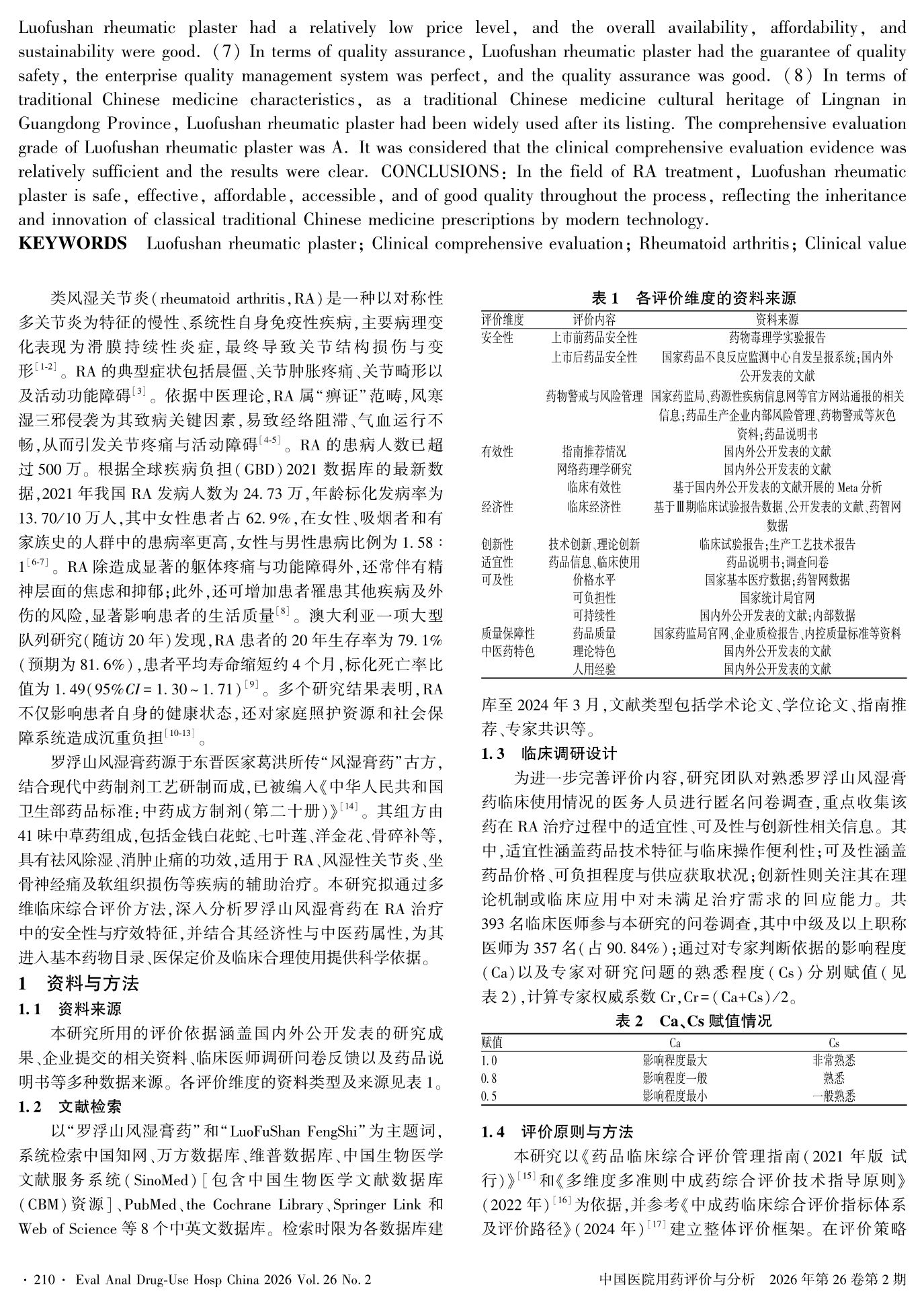 Clinical Comprehensive Evaluation of Luofushan Rheumatic Plaster in the Treatment of Rheumatoid Arthritis