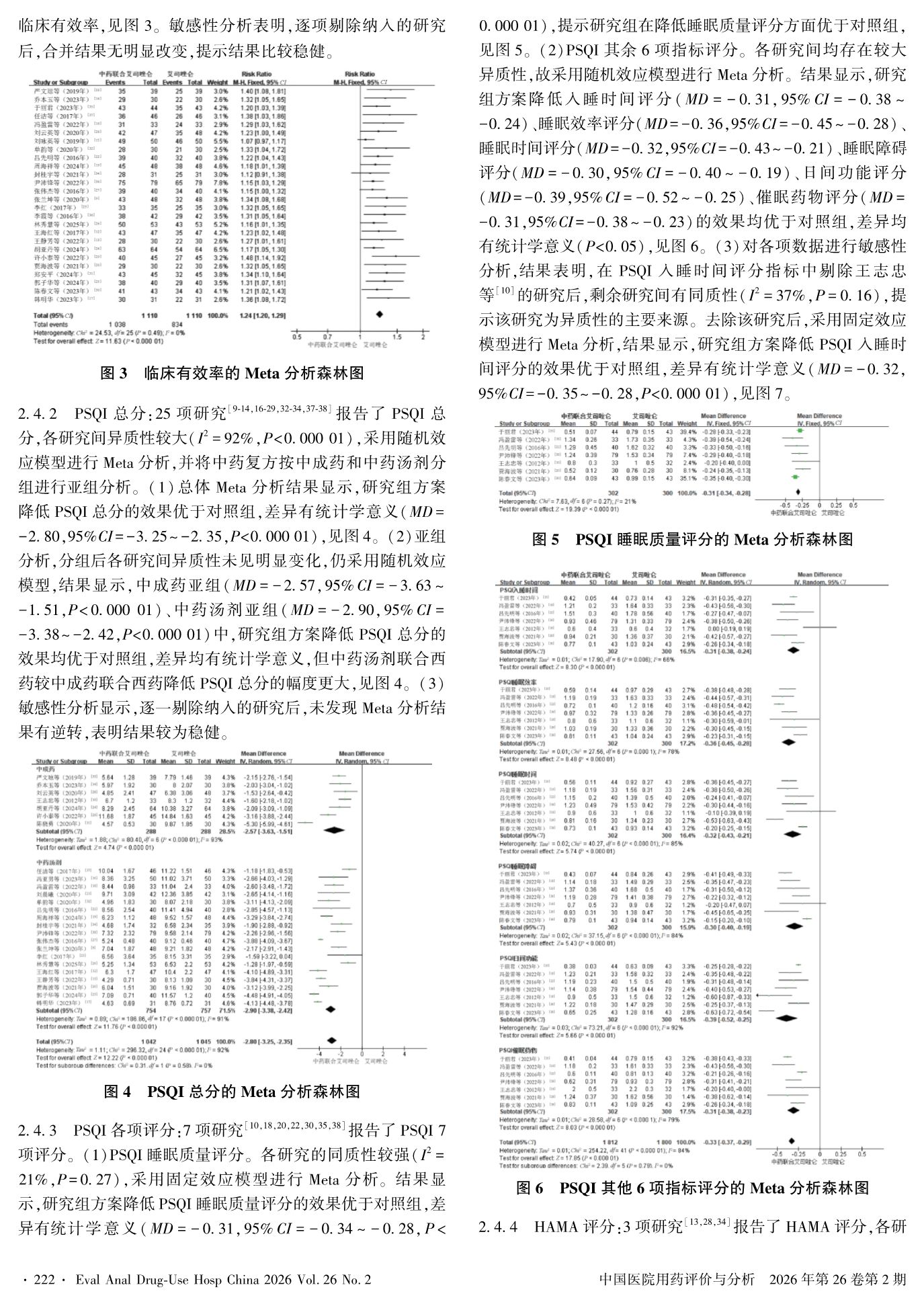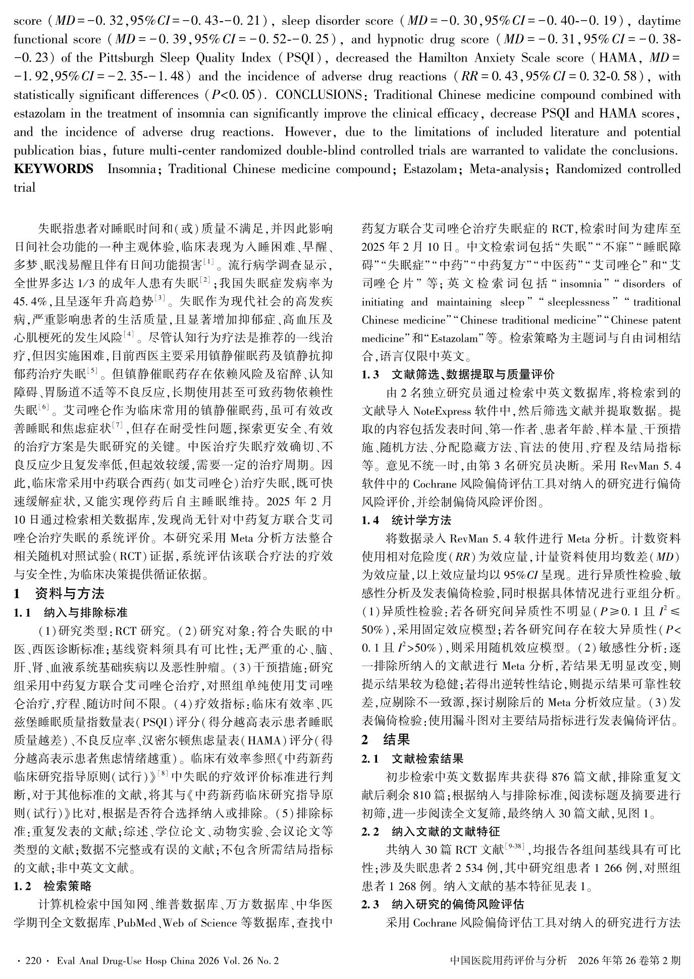 中药复方联合艾司唑仑治疗失眠的有效性及安全性的Meta分析