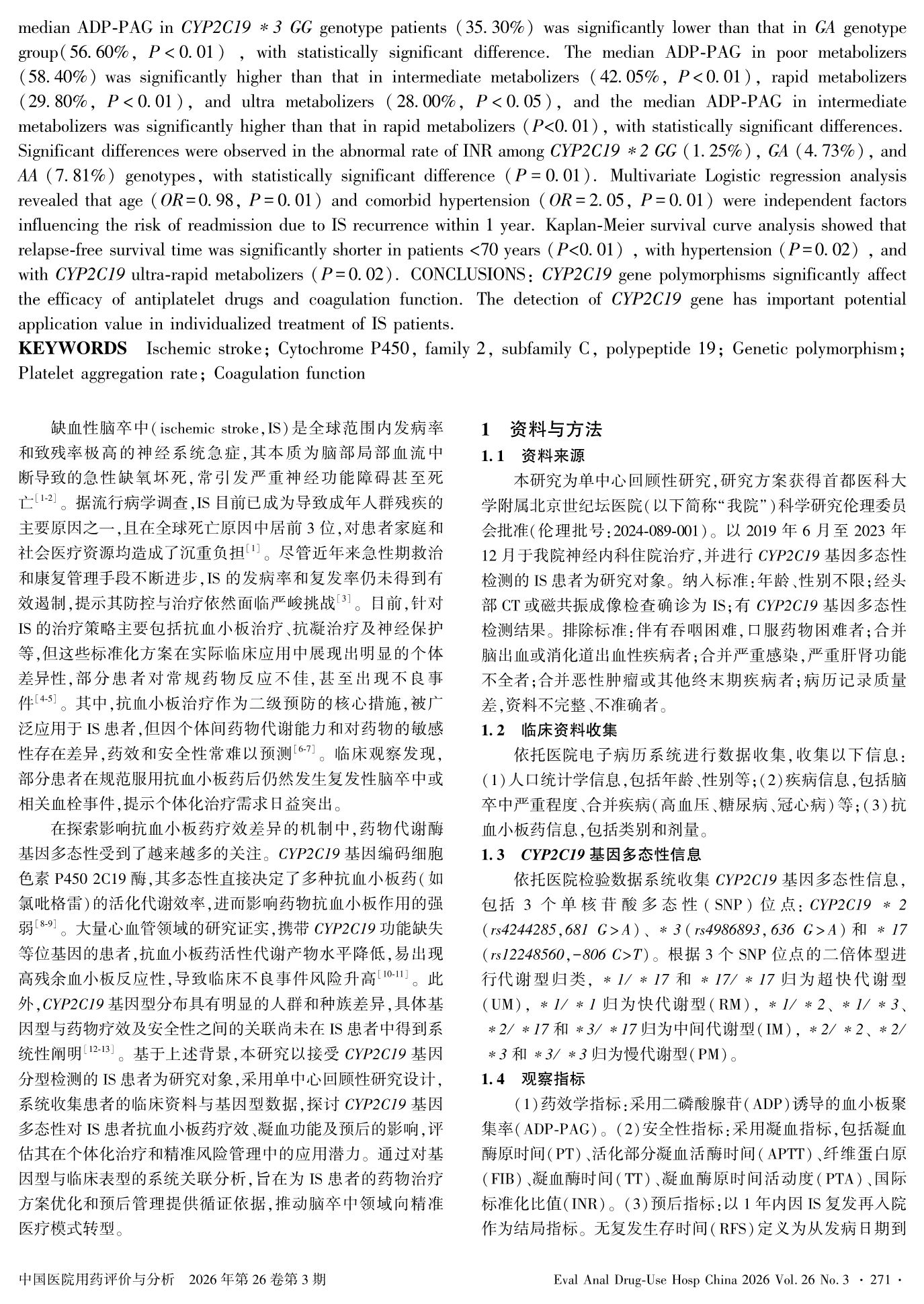 缺血性脑卒中患者CYP2C19基因多态性分布与预后的相关性研究
