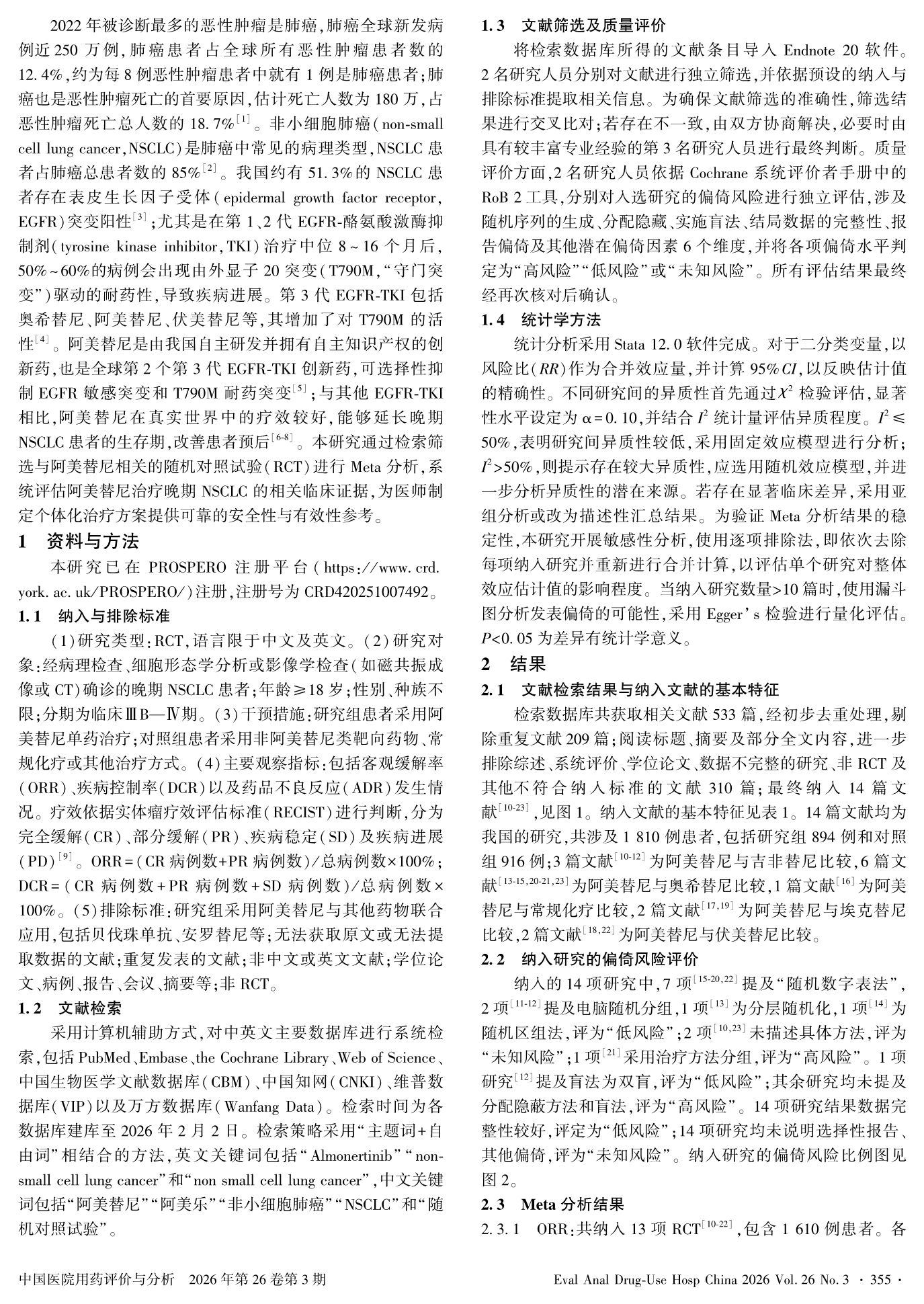 阿美替尼治疗晚期非小细胞肺癌的临床有效性和安全性的Meta分析
