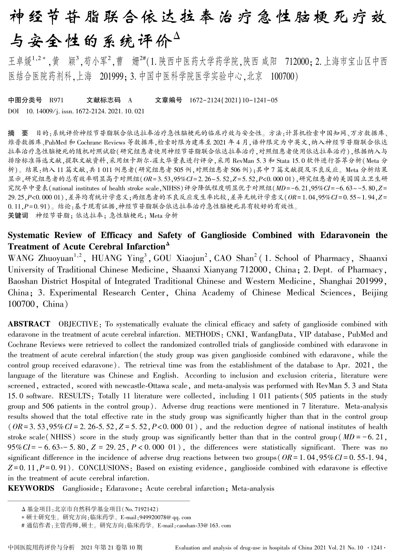 神经节苷脂联合依达拉奉治疗急性脑梗死疗效与安全性的系统评价