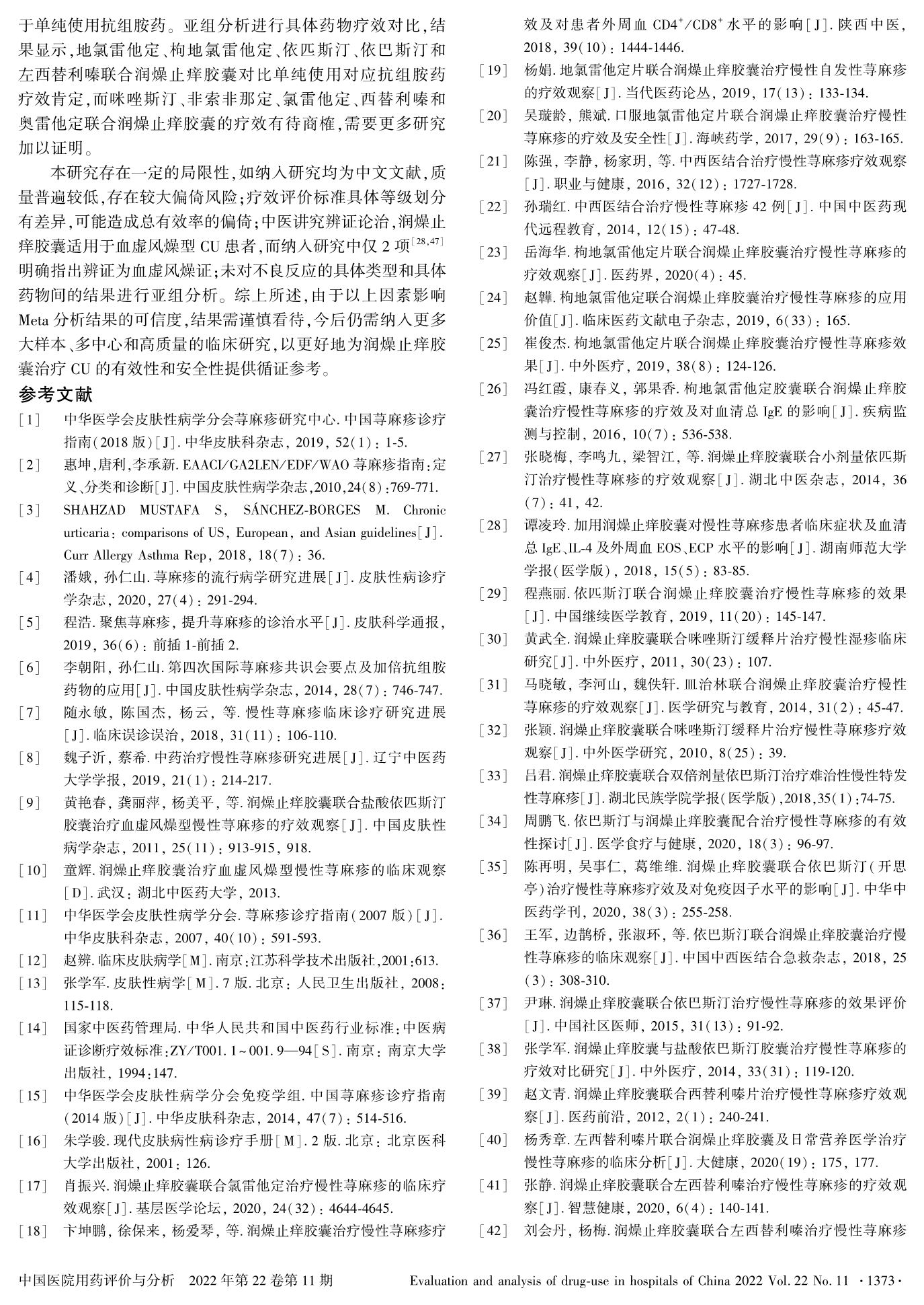 润燥止痒胶囊联合抗组胺药治疗慢性荨麻疹的系统评价