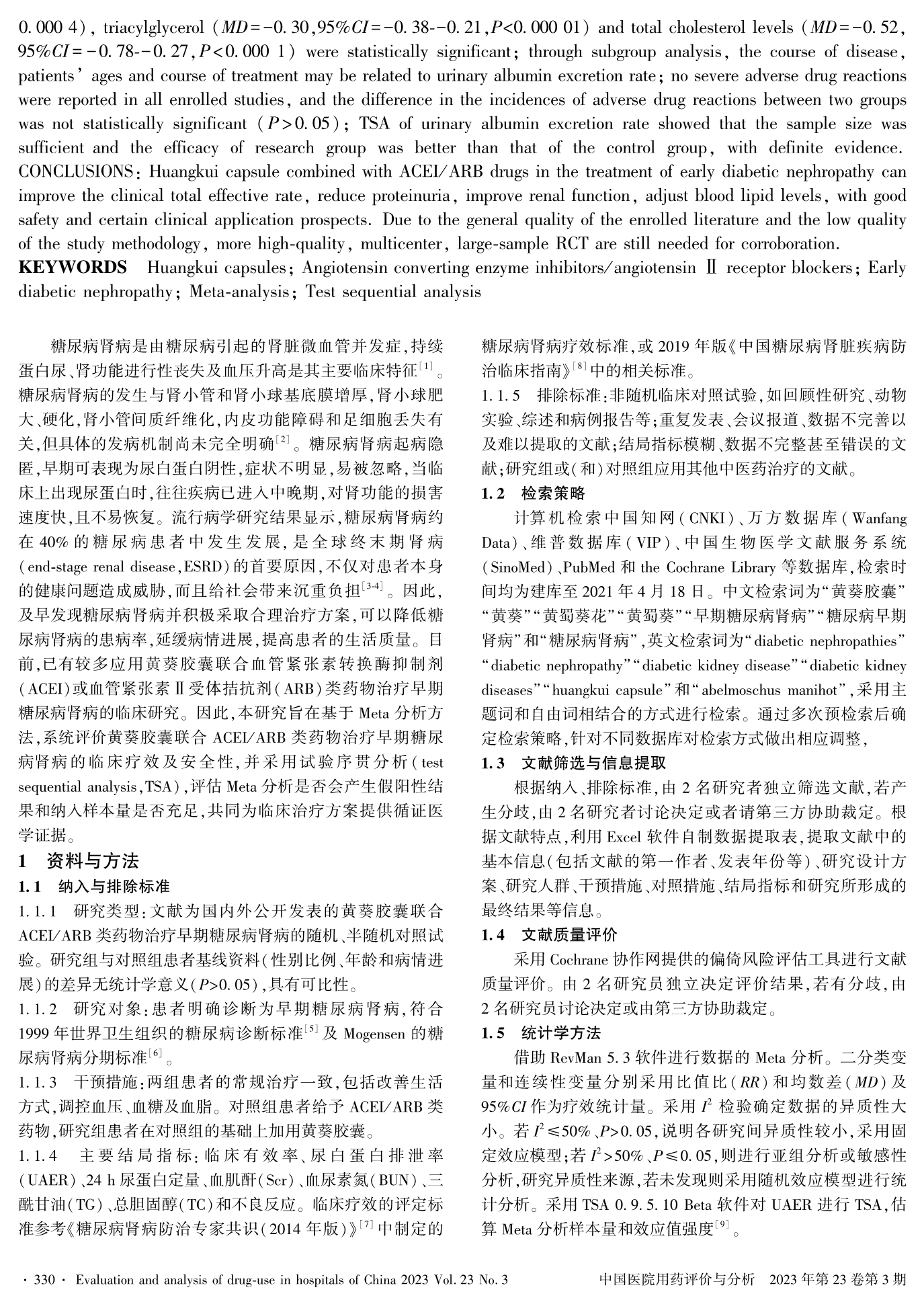 黄葵胶囊联合ACEI/ARB类药物治疗早期糖尿病肾病随机对照研究的Meta分析和试验序贯分析