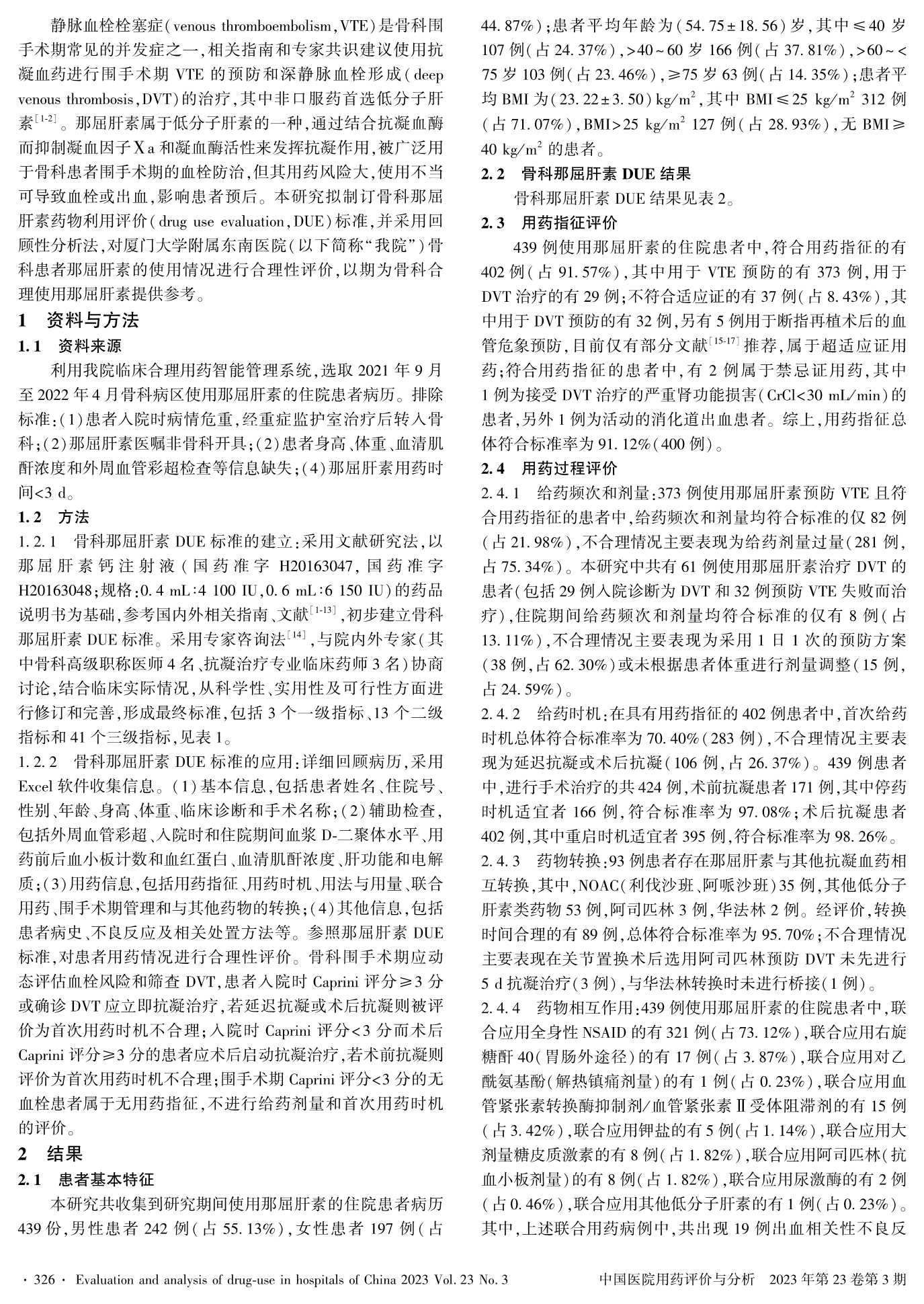骨科那屈肝素药物利用评价标准的建立与应用