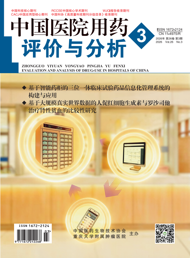 《中国医院用药评价与分析》杂志是由中国医药生物技术协会主管,中国医药生物技术协会、重庆大学附属肿瘤医院主办的医药类学术期刊。2001年创刊,月刊,每月30日出版。2018-2025年入选中国科技论文统计源期刊(中国科技核心期刊),2020、2023年入选武汉大学中国科学评价研究中心“RCCSE中国核心学术期刊(A-)”,2024年入选武汉大学中国科学评价研究中心CACJ中国应用型核心期刊。本刊以提高医院科学、合理用药水平,减少药品不良反应和医药资源浪费为办刊方针;主要刊载内容包括:临床用药评价与分析,医药前瞻信息和合理用药专家共识,临床用药与医药工商企业、医药卫生管理部门间的信息和动态等,具科学性、导向性、权威性、实用性、可读性。