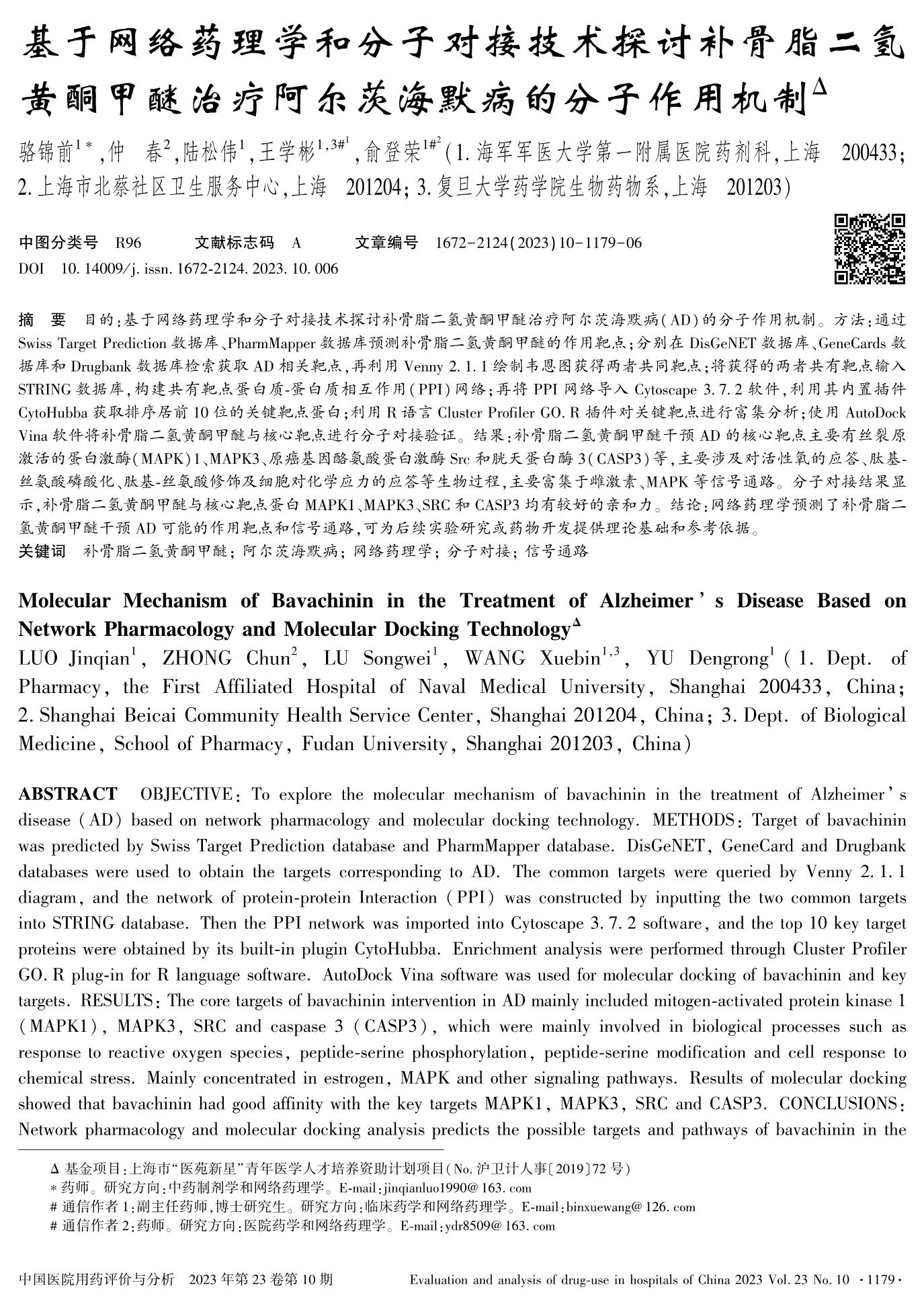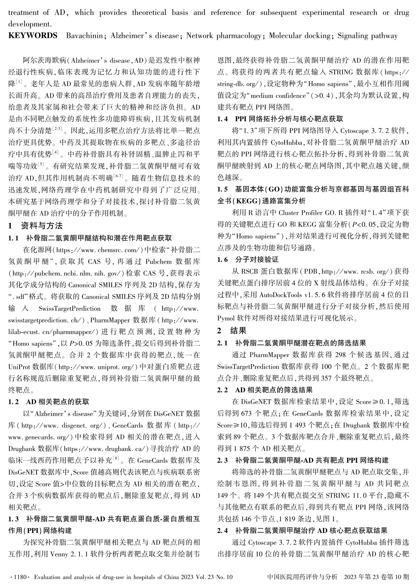 基于网络药理学和分子对接技术探讨补骨脂二氢黄酮甲醚治疗阿尔茨海默病的分子作用机制