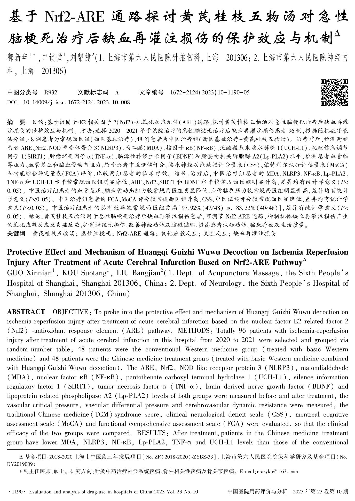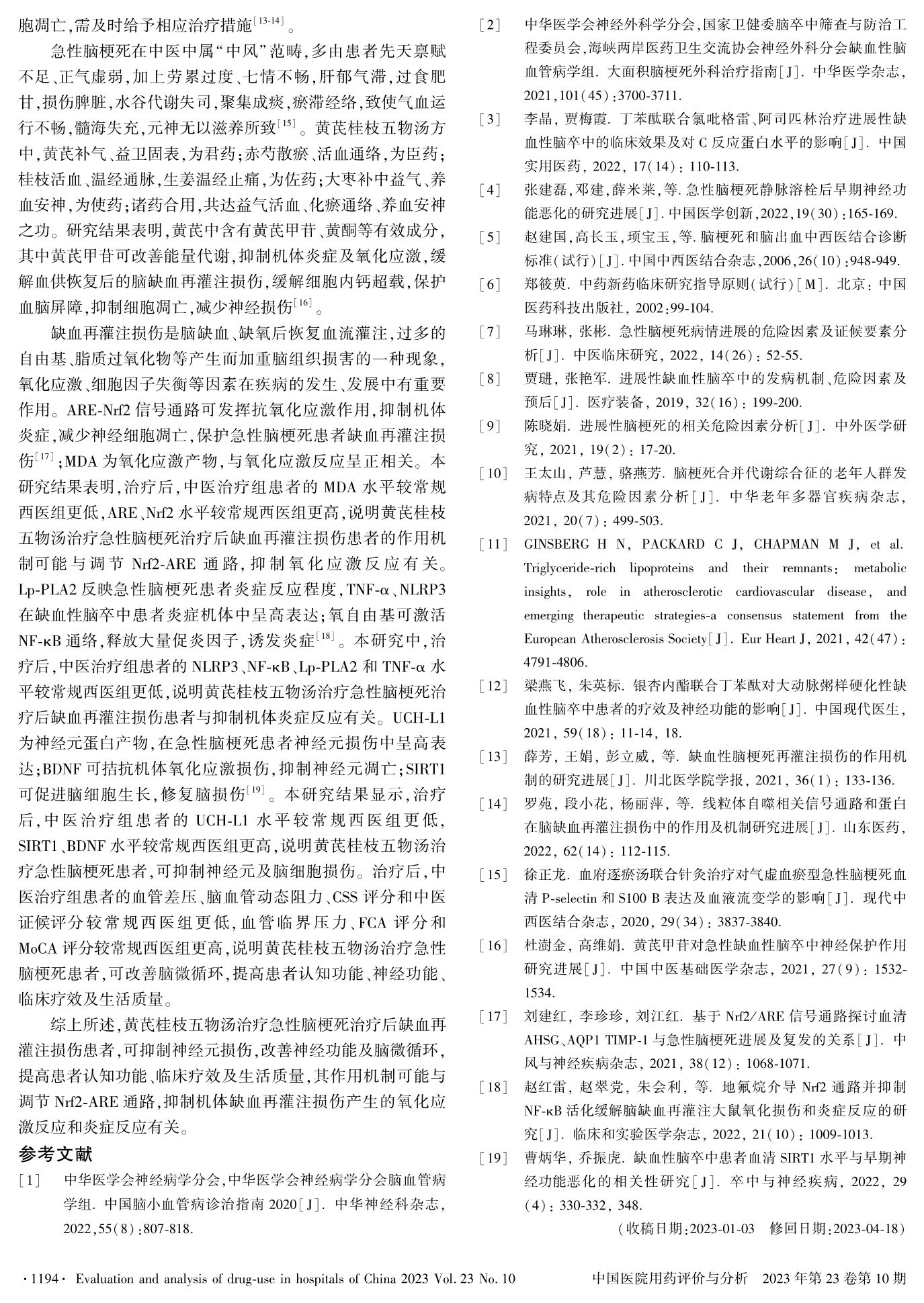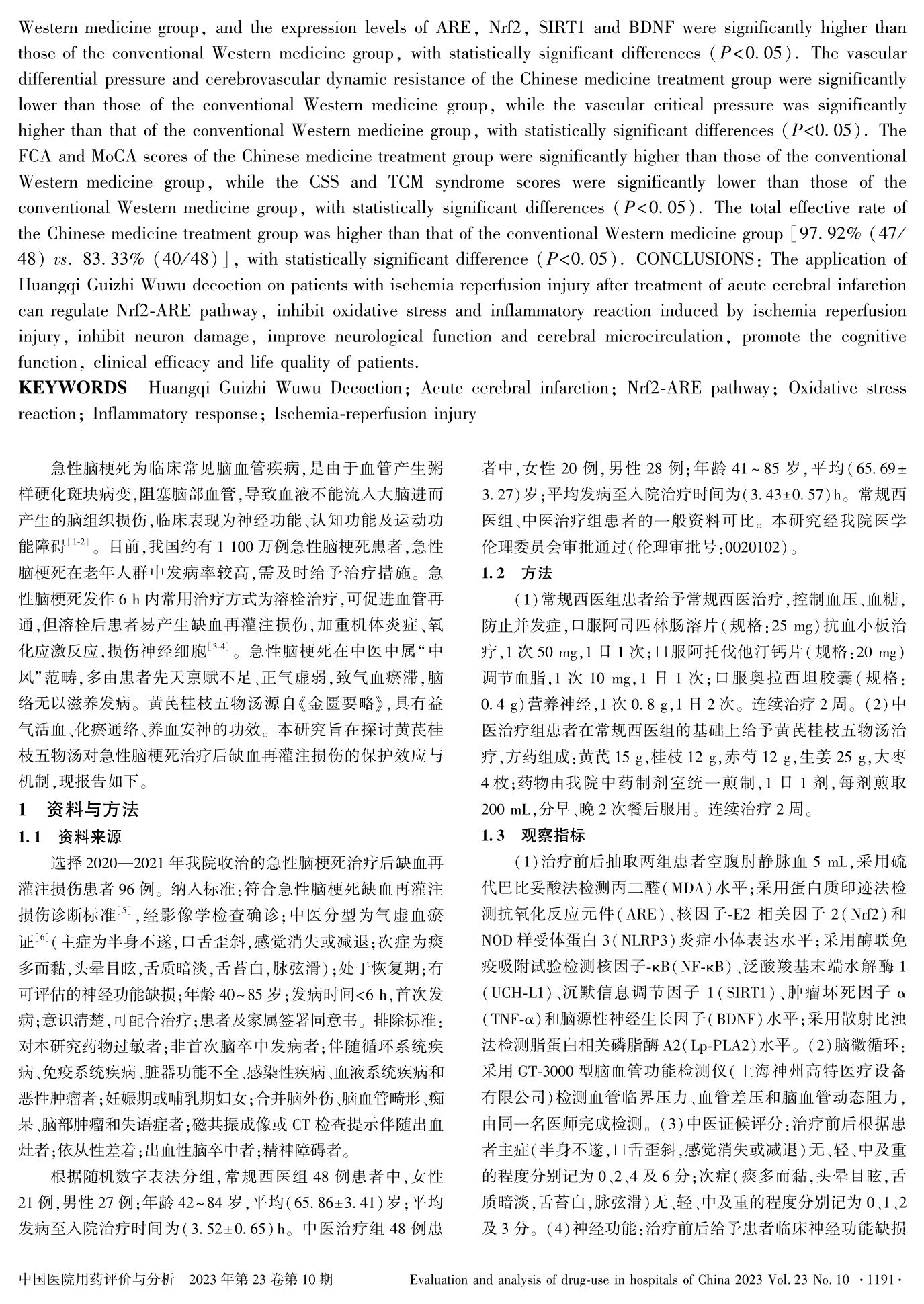 基于Nrf2-ARE通路探讨黄芪桂枝五物汤对急性脑梗死治疗后缺血再灌注损伤的保护效应与机制