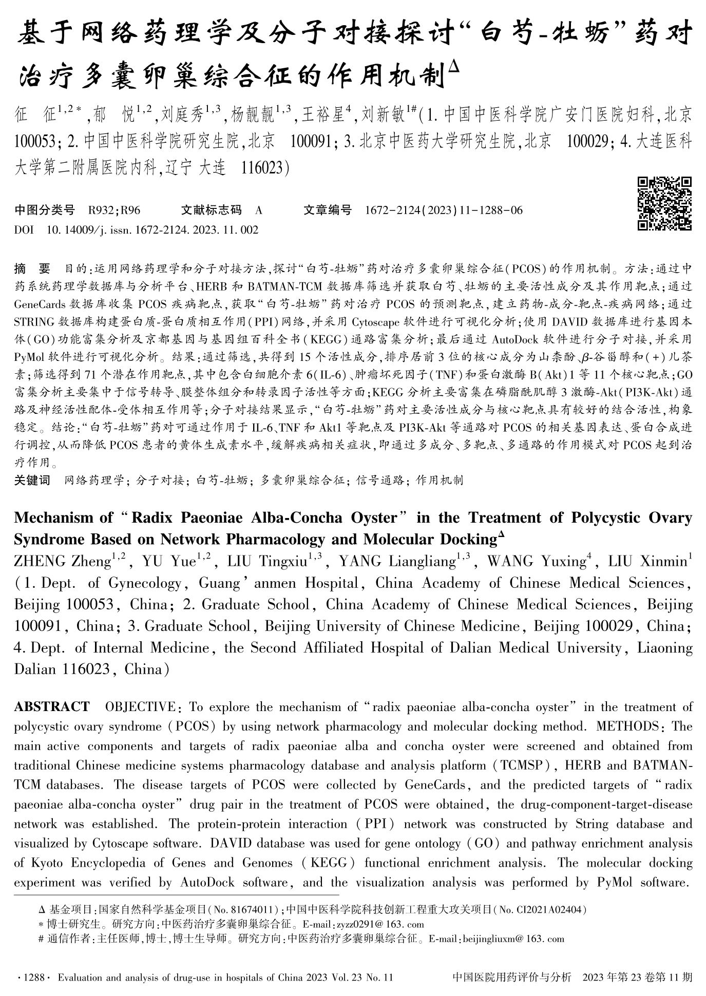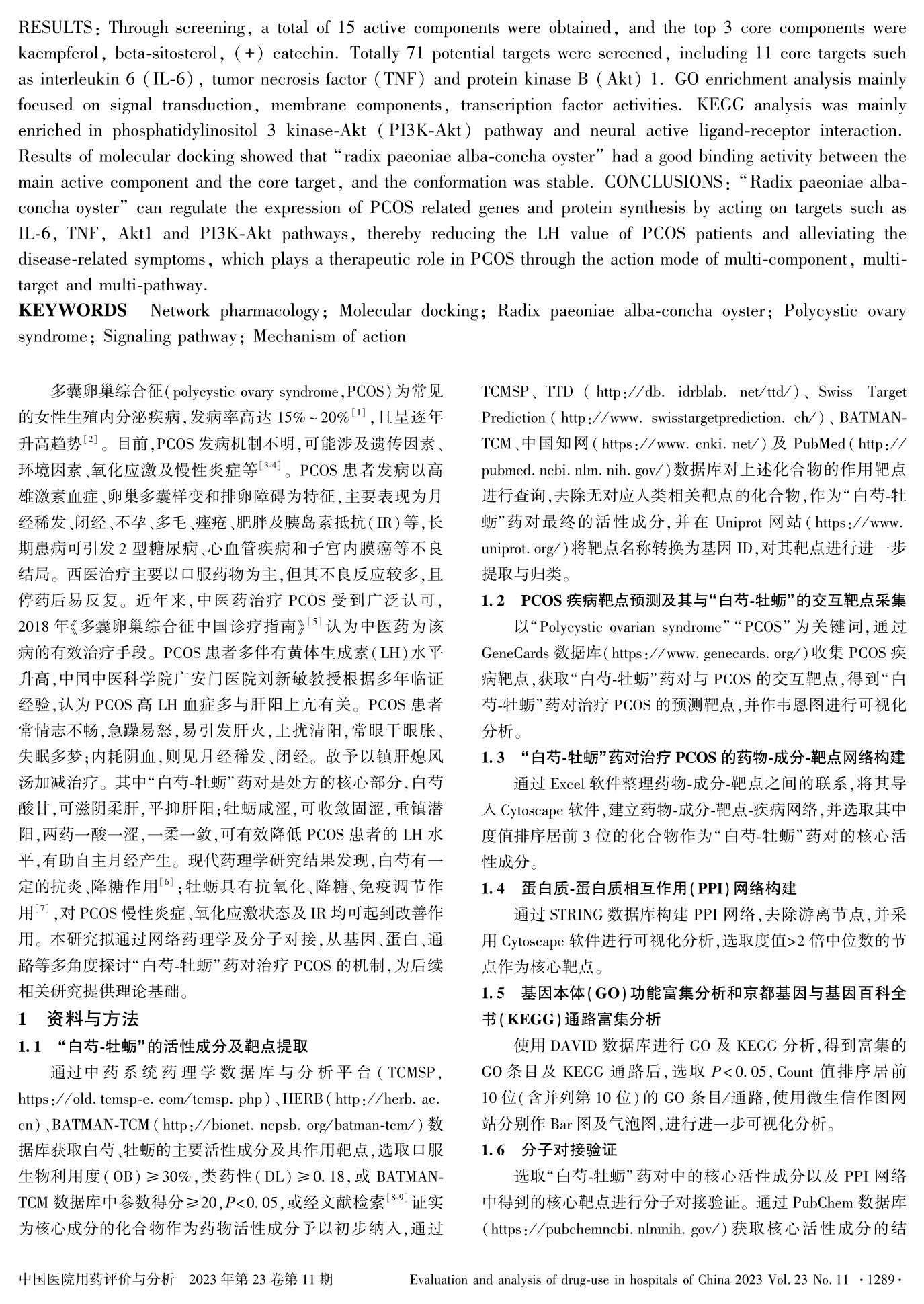基于网络药理学及分子对接探讨“白芍-牡蛎”药对治疗多囊卵巢综合征的作用机制