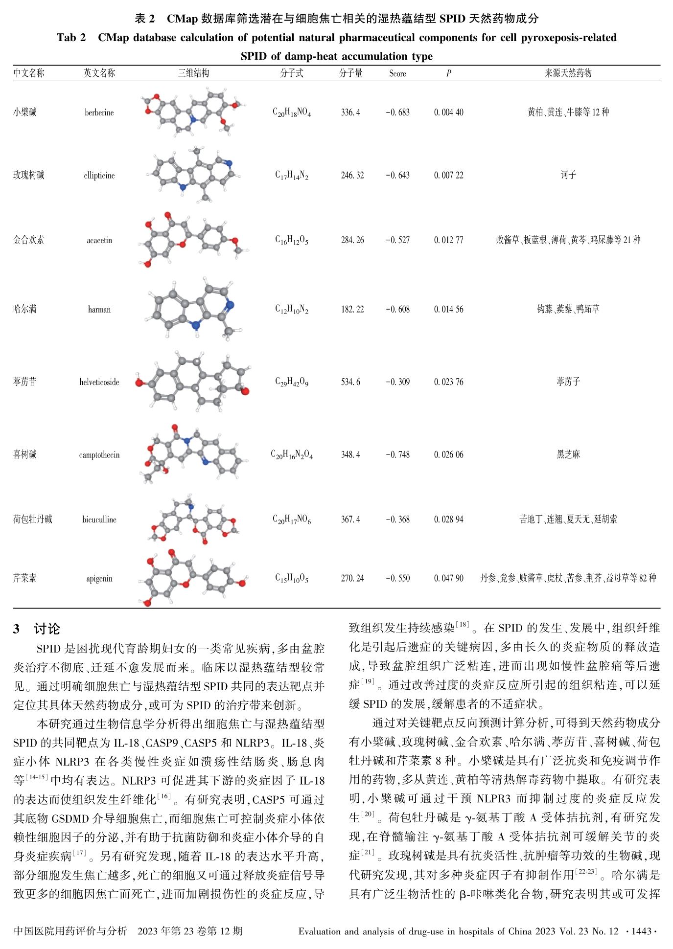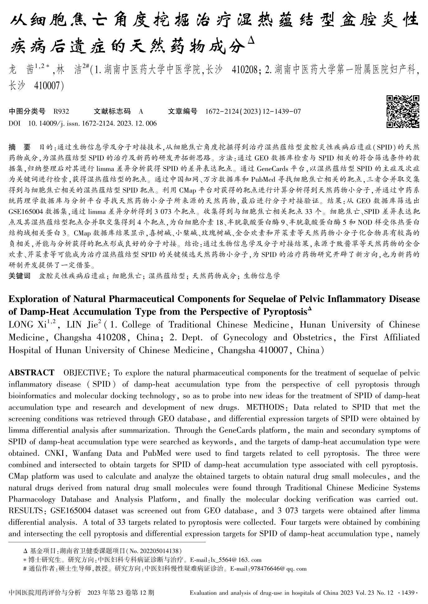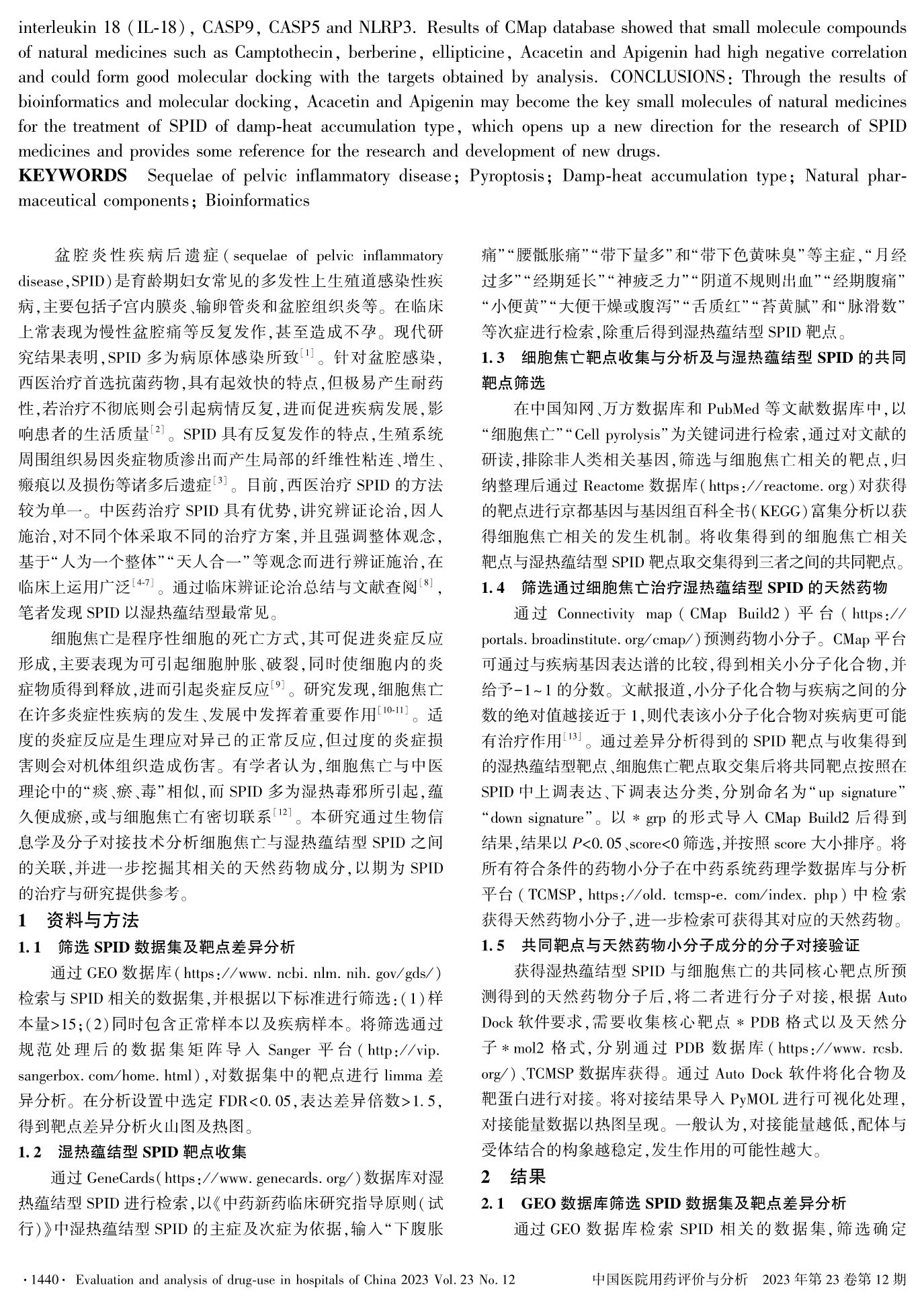从细胞焦亡角度挖掘治疗湿热蕴结型盆腔炎性疾病后遗症的天然药物成分