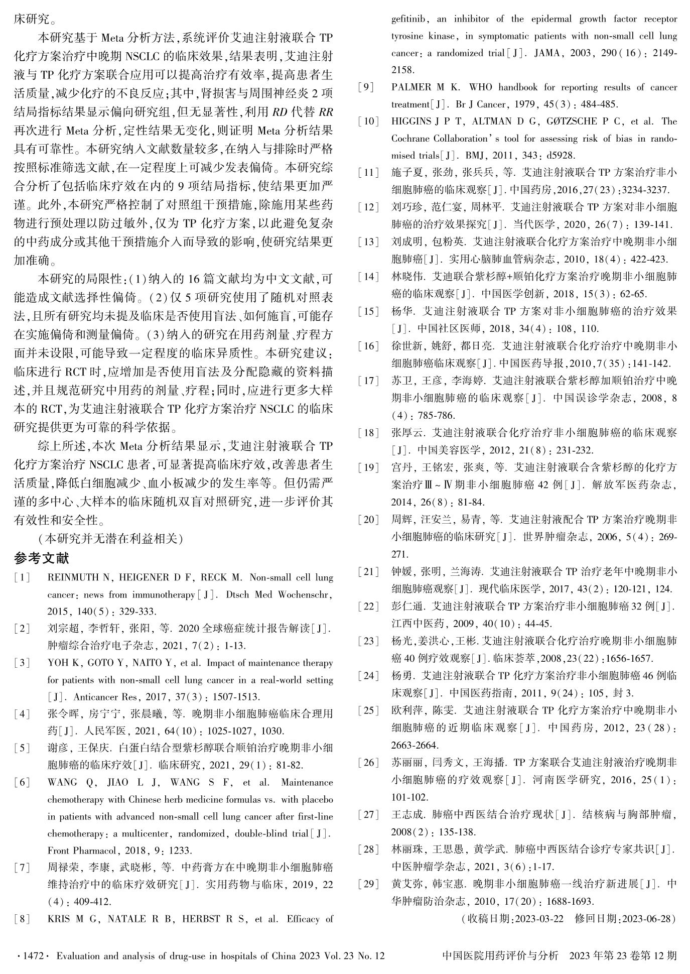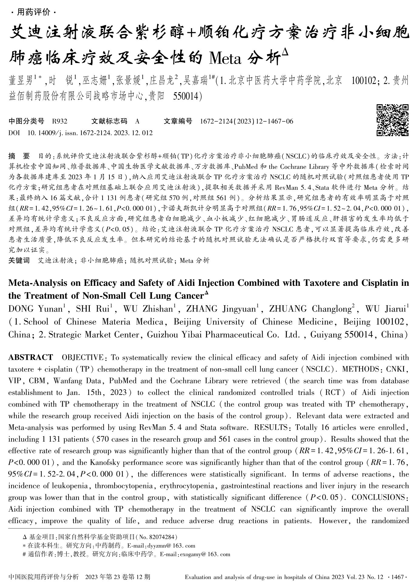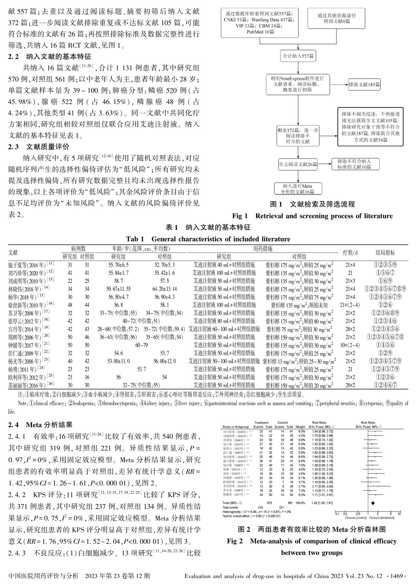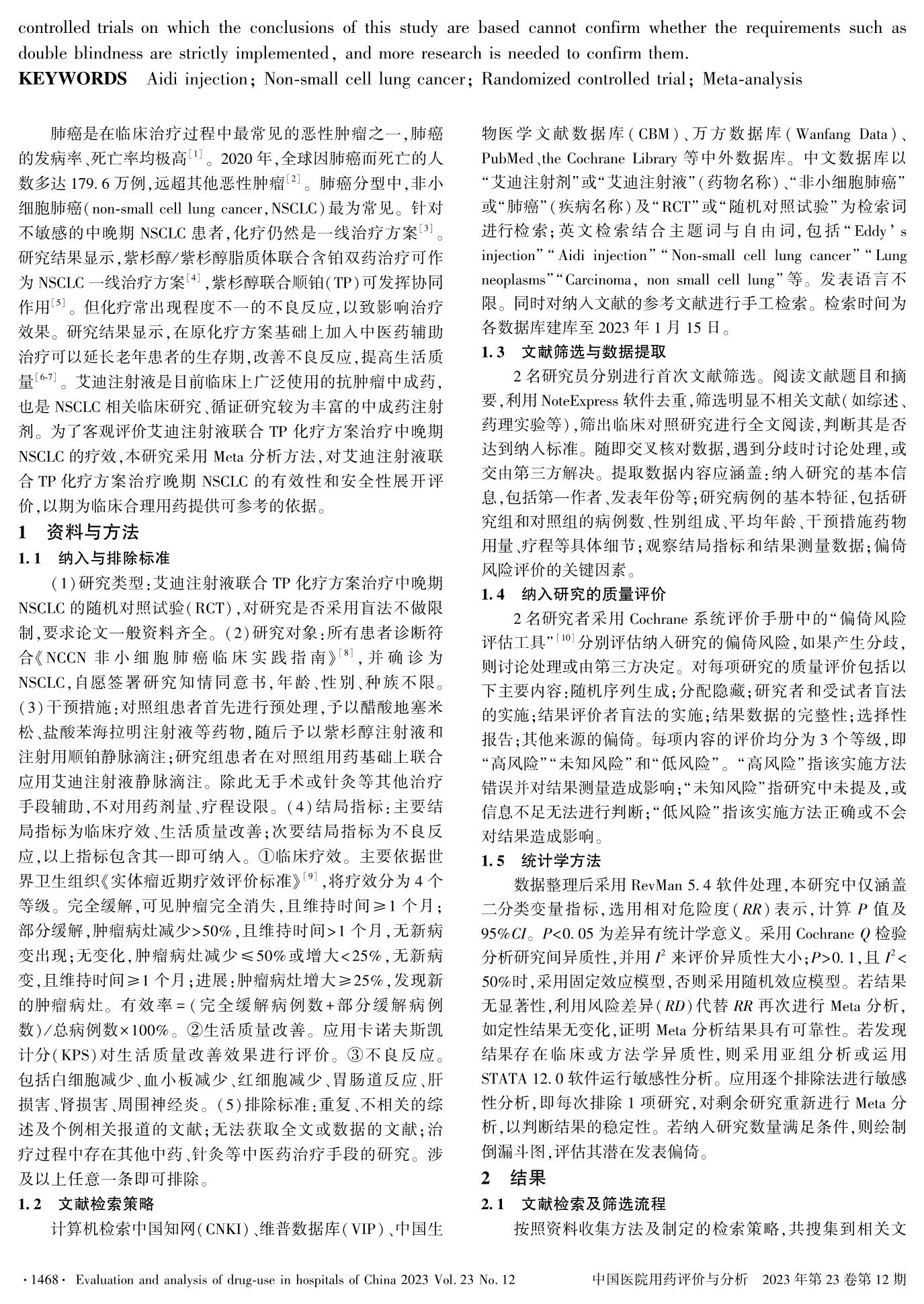 艾迪注射液联合紫杉醇+顺铂化疗方案治疗非小细胞肺癌临床疗效及安全性的Meta分析