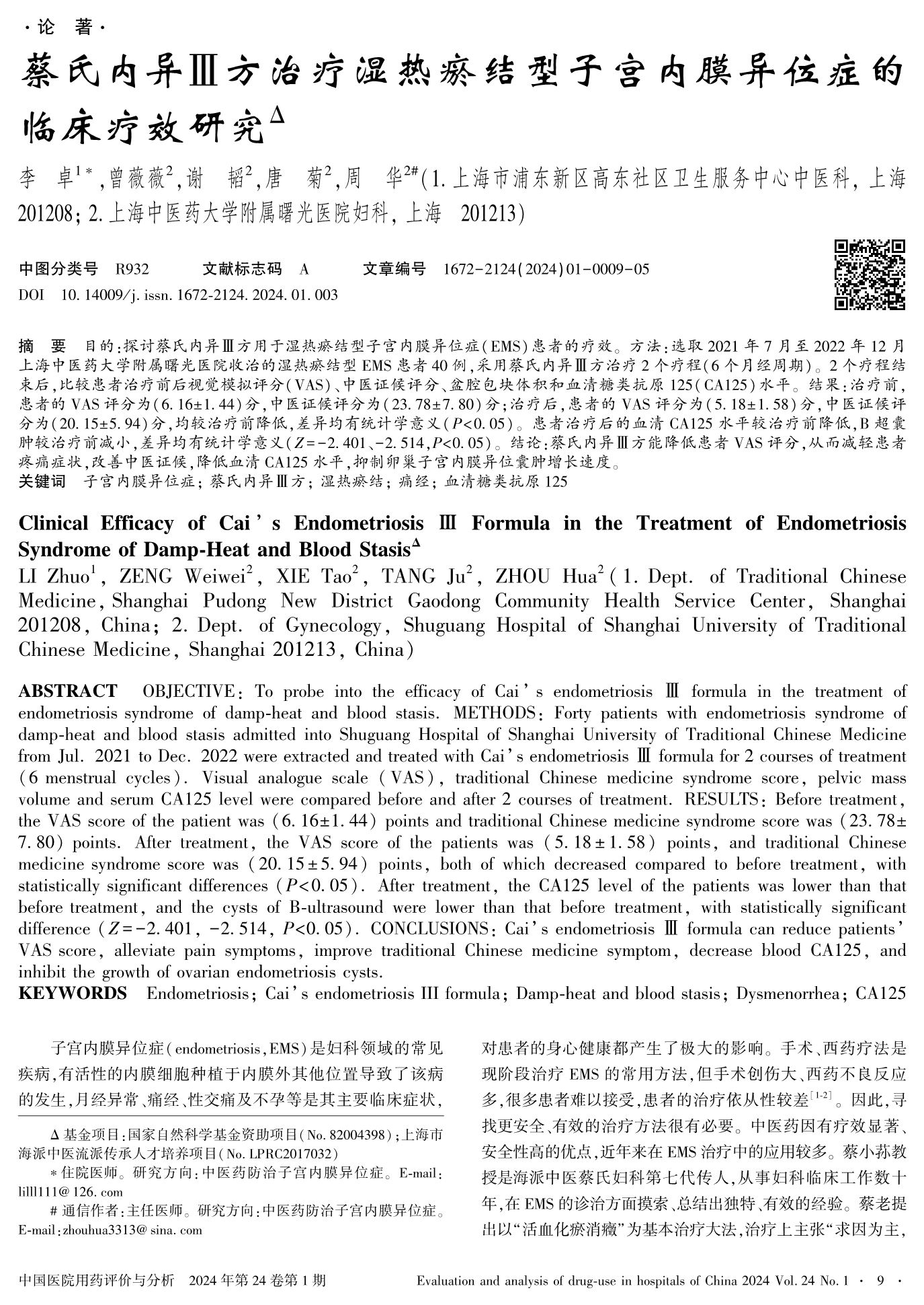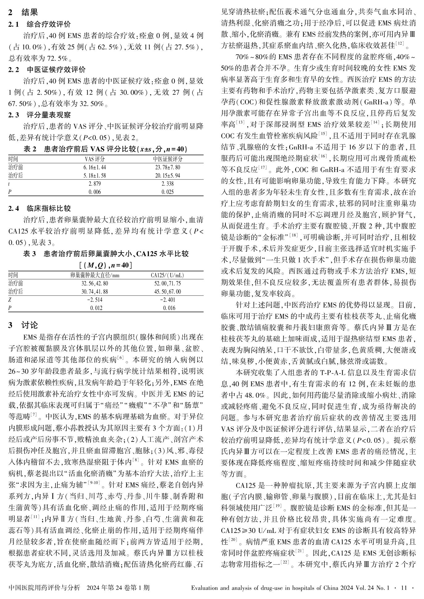 蔡氏内异Ⅲ方治疗湿热瘀结型子宫内膜异位症的临床疗效研究