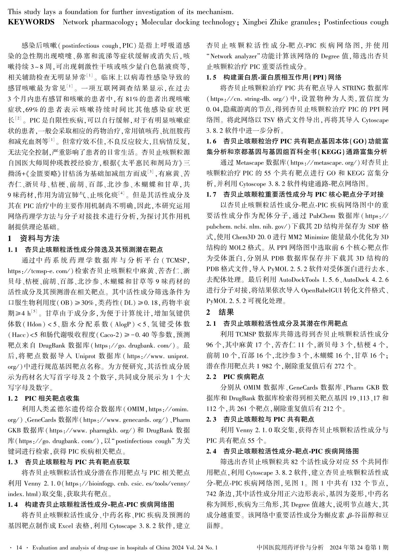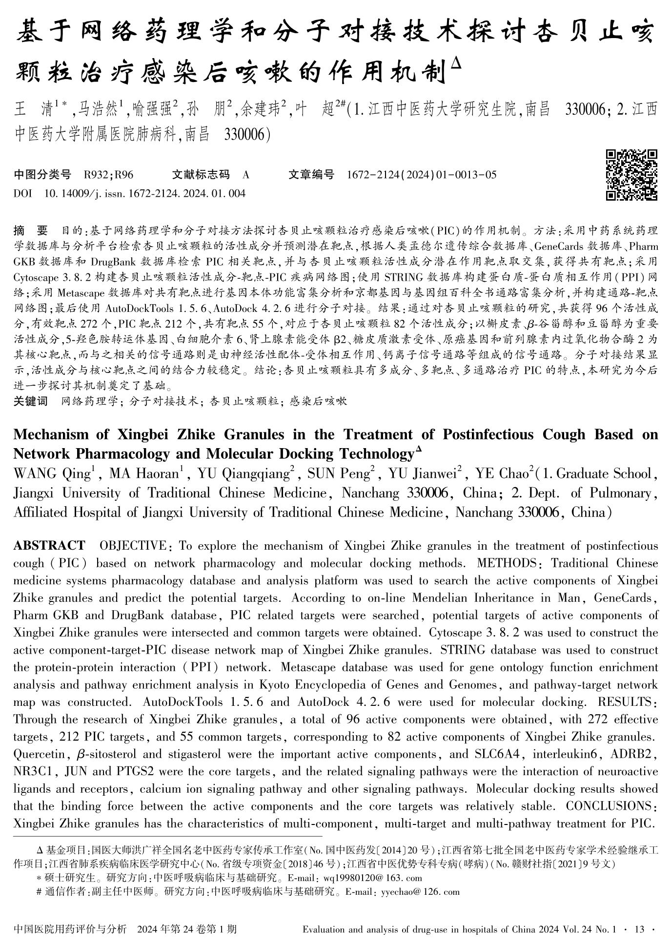 Mechanism of Xingbei Zhike Granules in the Treatment of Postinfectious Cough Based on Network Pharmacology and Molecular Docking Technology