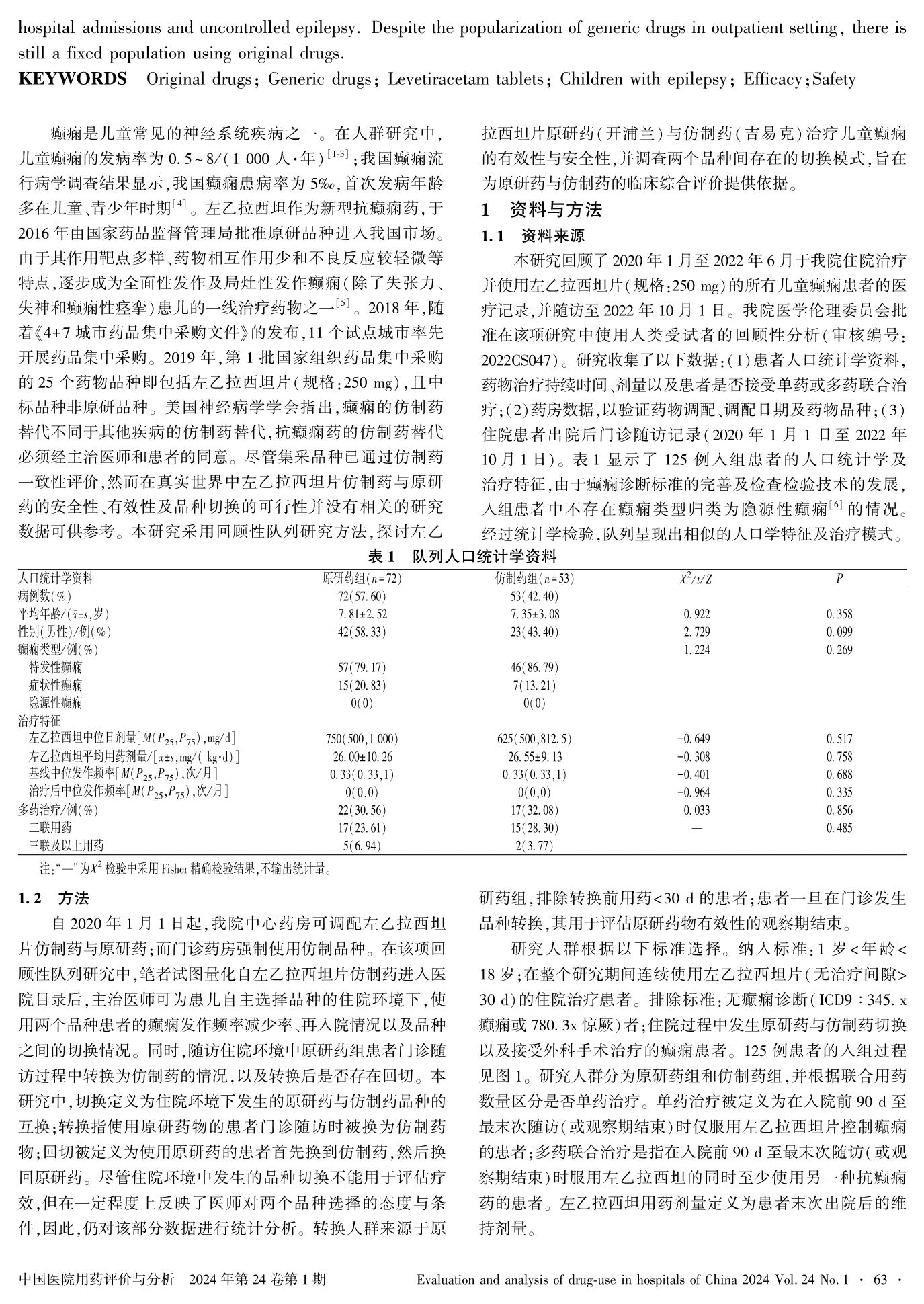 左乙拉西坦片仿制药与原研药治疗儿童癫痫的疗效、安全性比较