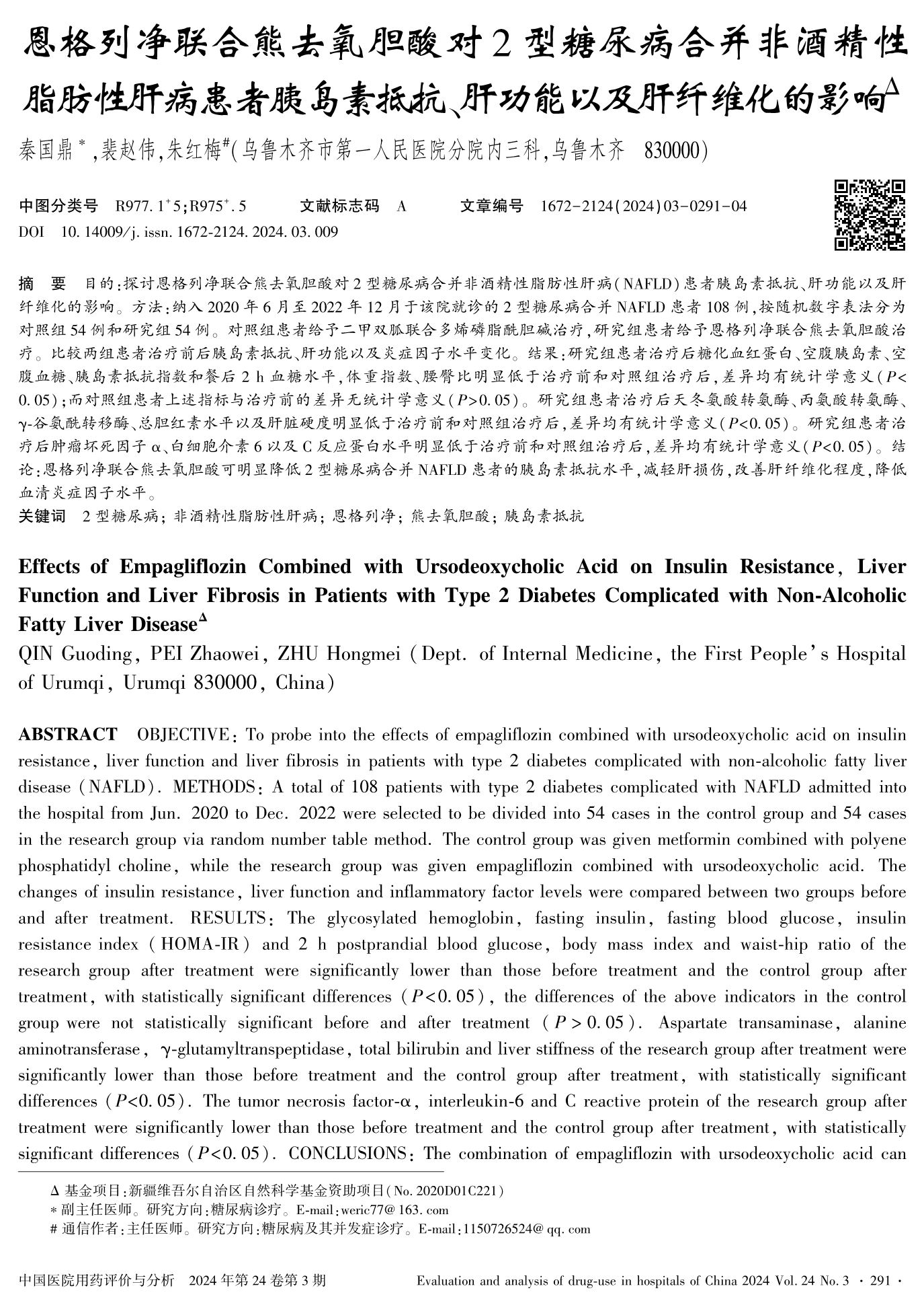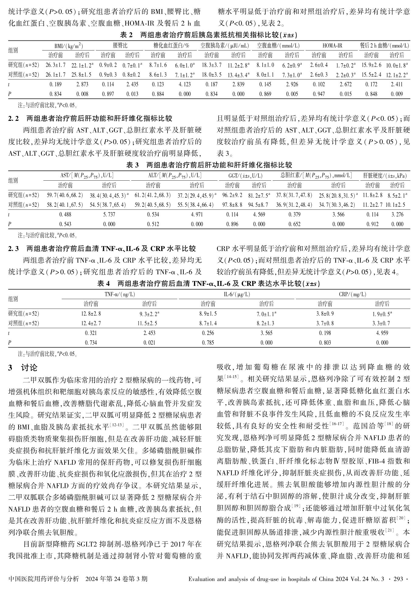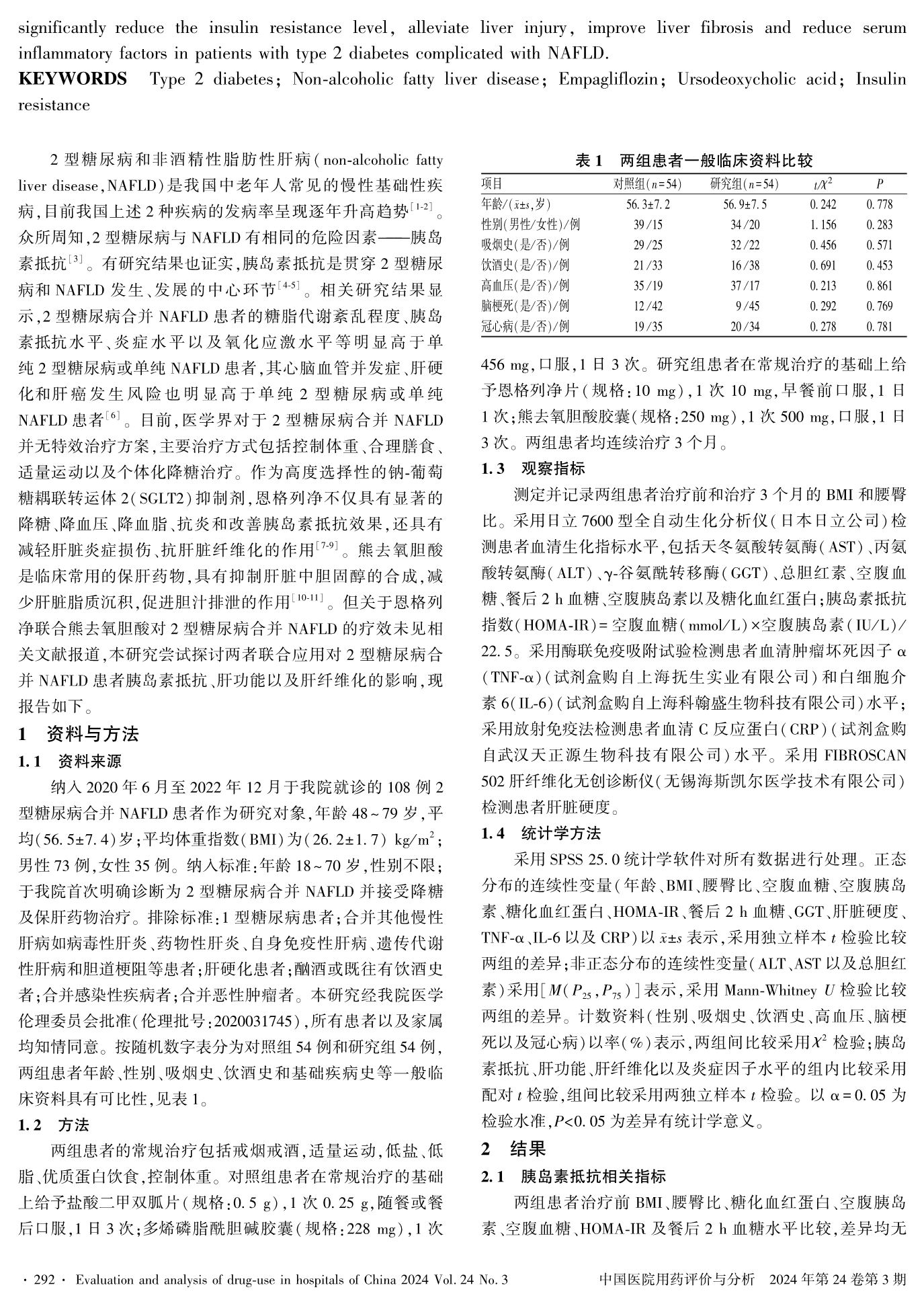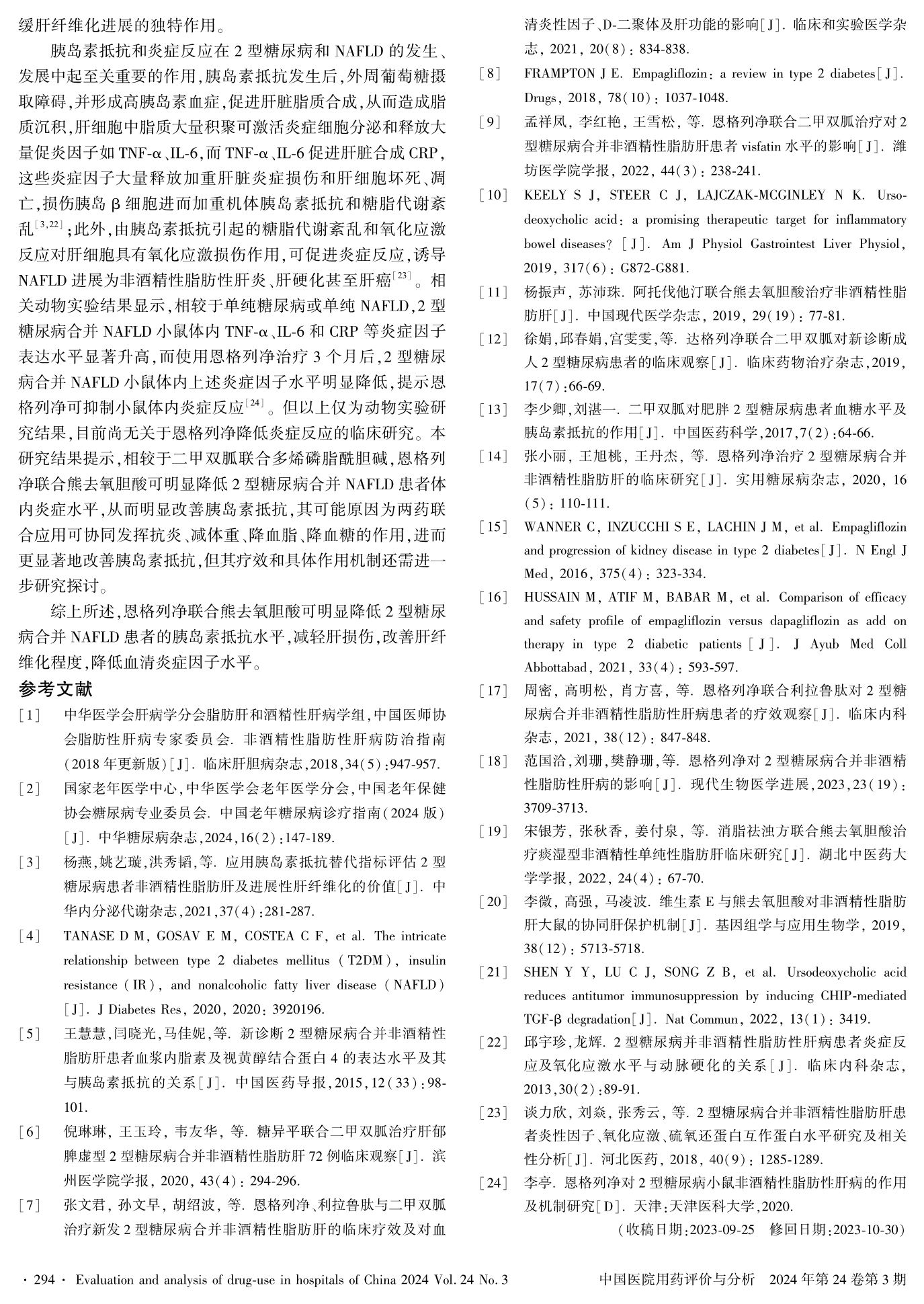 恩格列净联合熊去氧胆酸对2型糖尿病合并非酒精性脂肪性肝病患者胰岛素抵抗、肝功能以及肝纤维化的影响