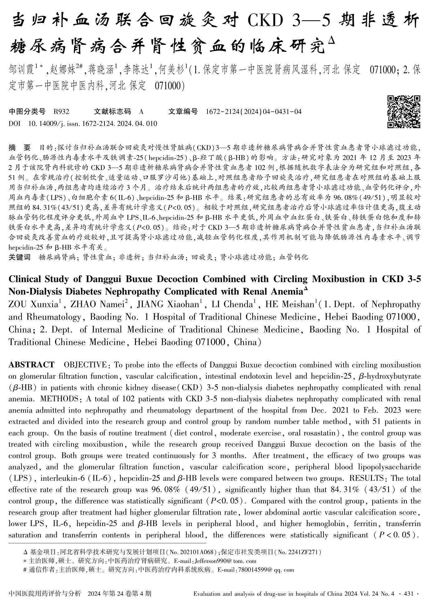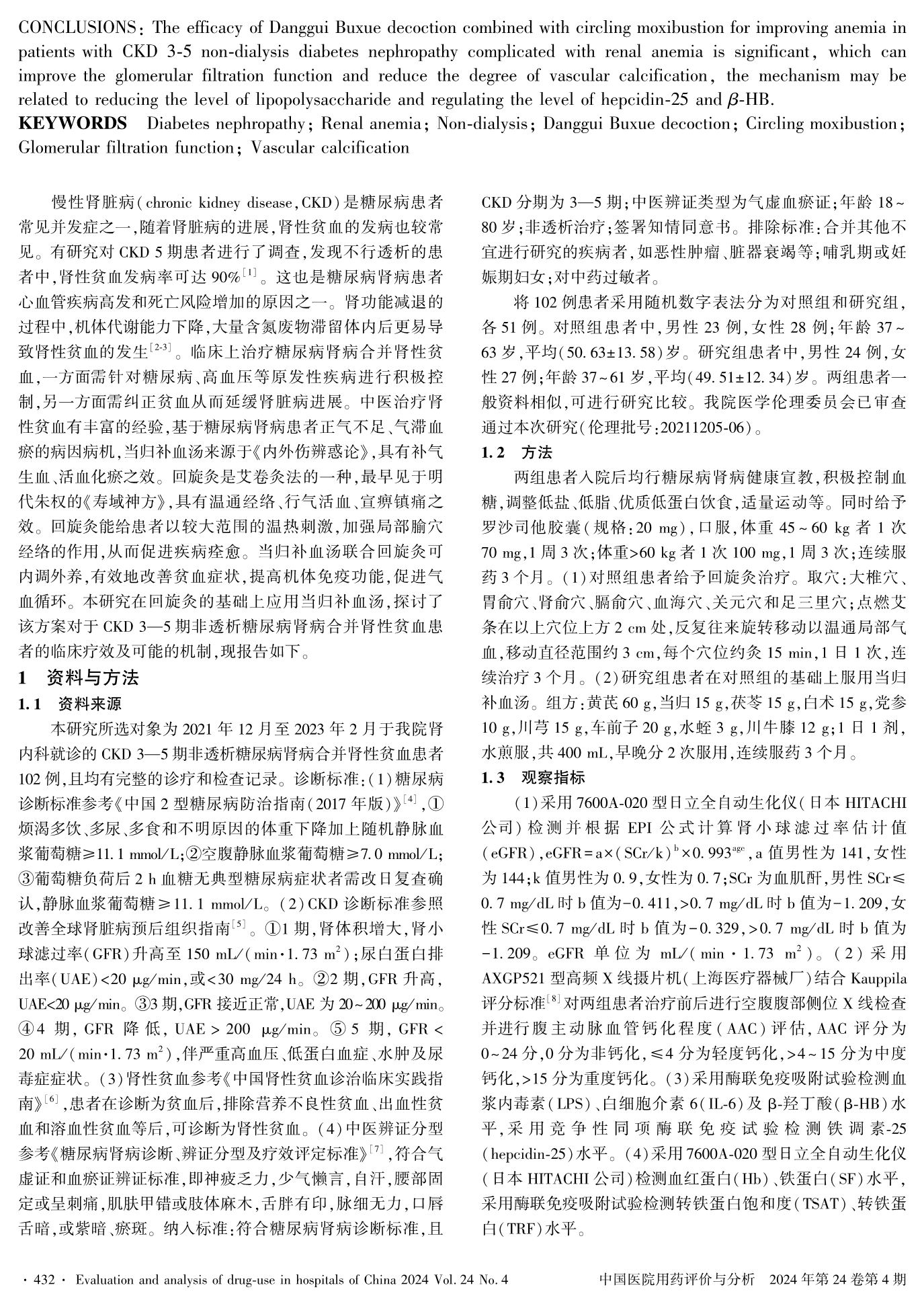 当归补血汤联合回旋灸对CKD3—5期非透析糖尿病肾病合并肾性贫血的临床研究