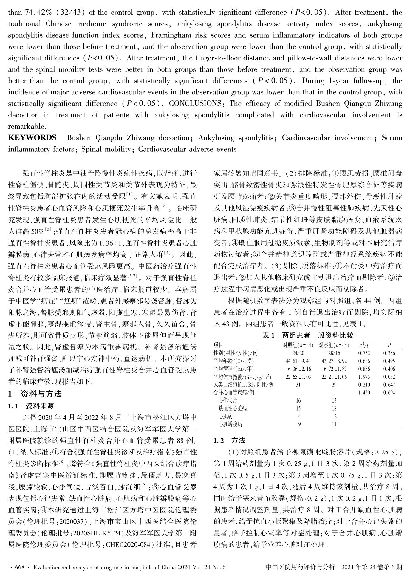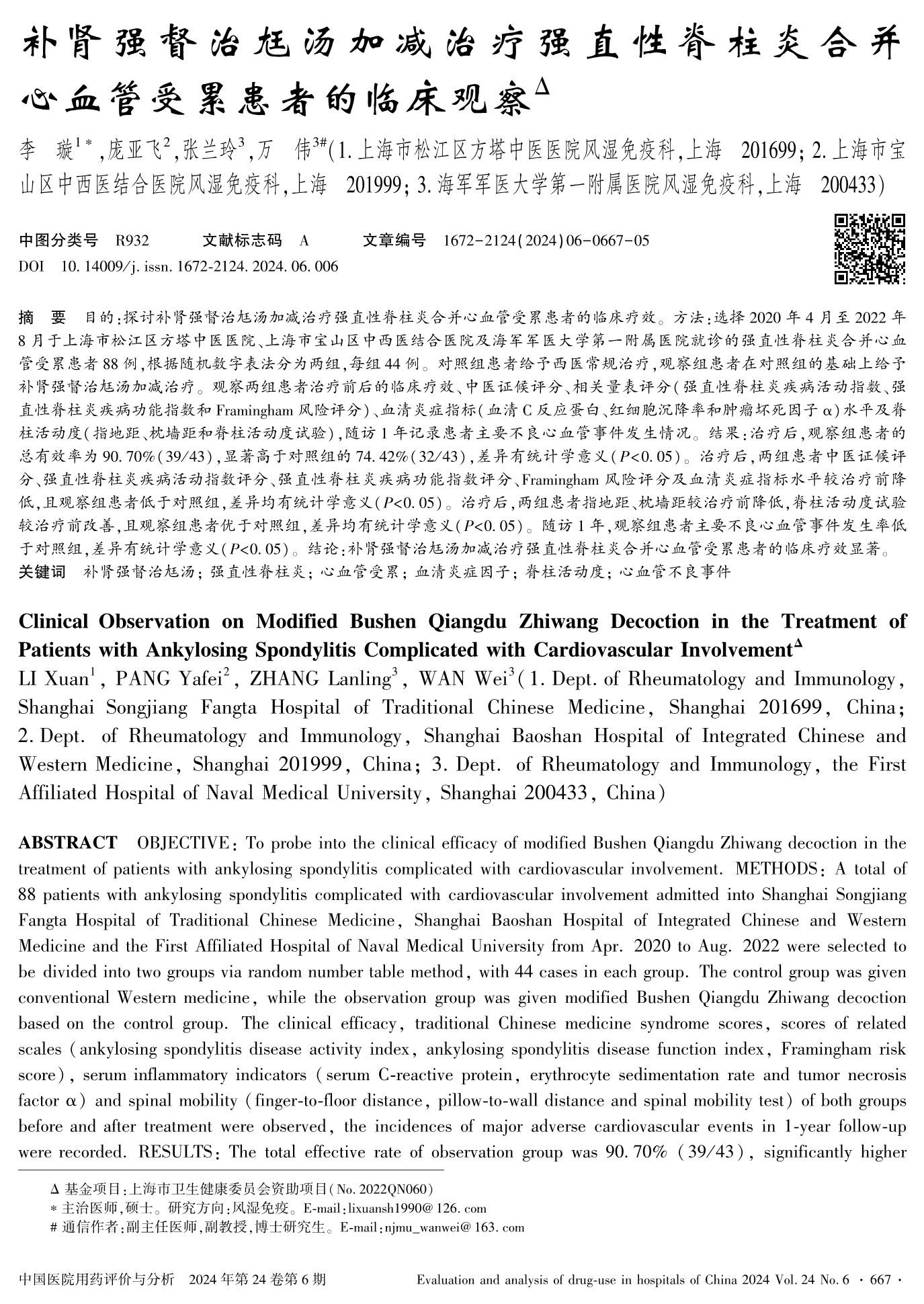 补肾强督治尪汤加减治疗强直性脊柱炎合并心血管受累患者的临床观察