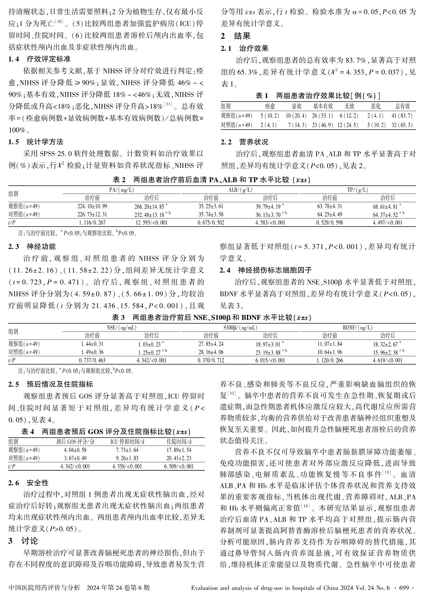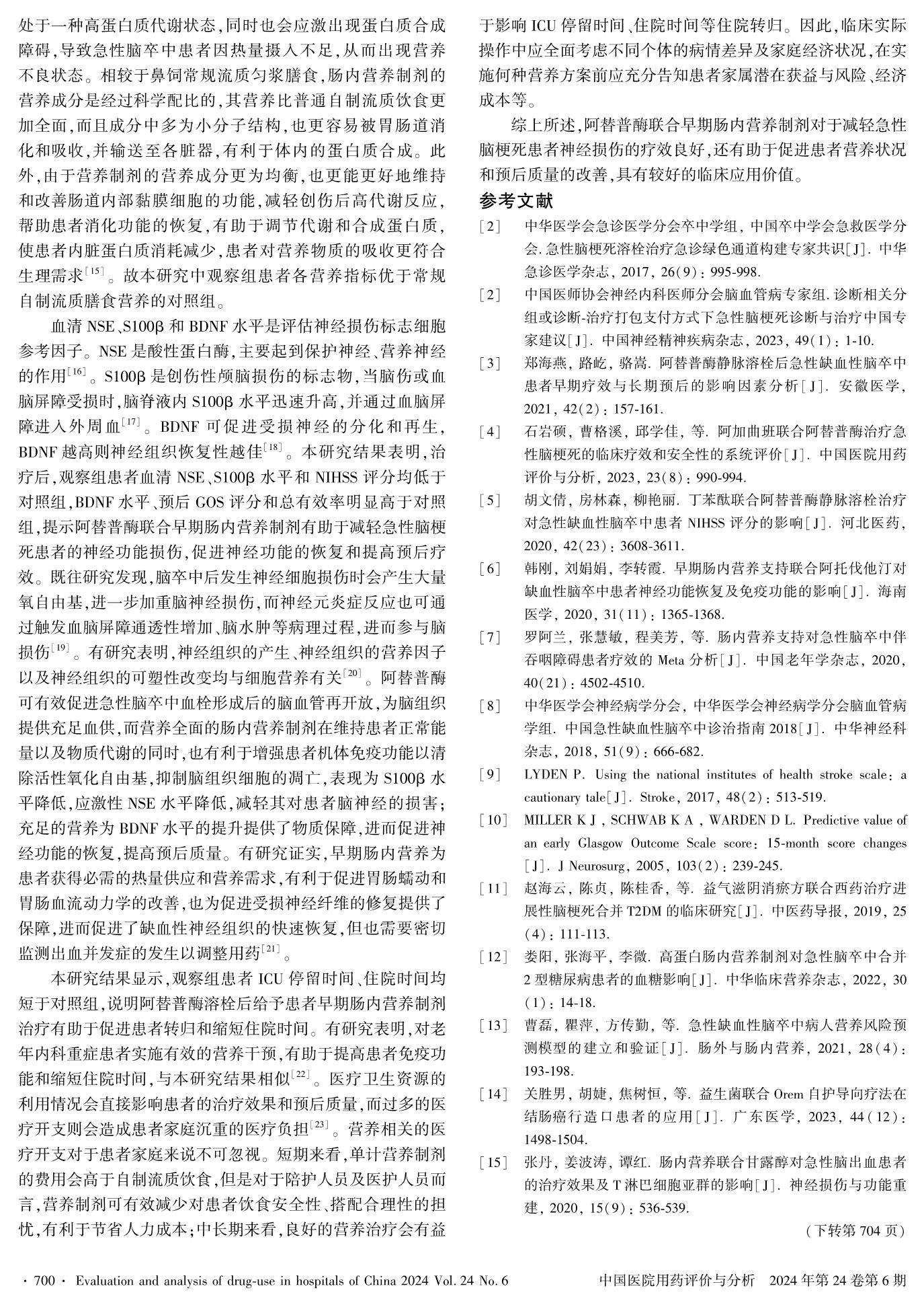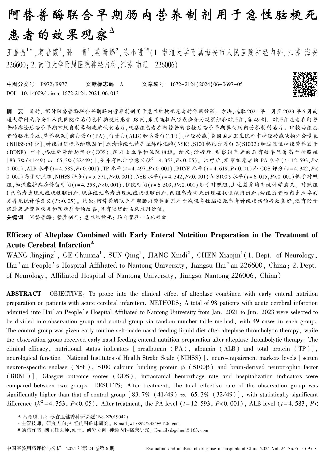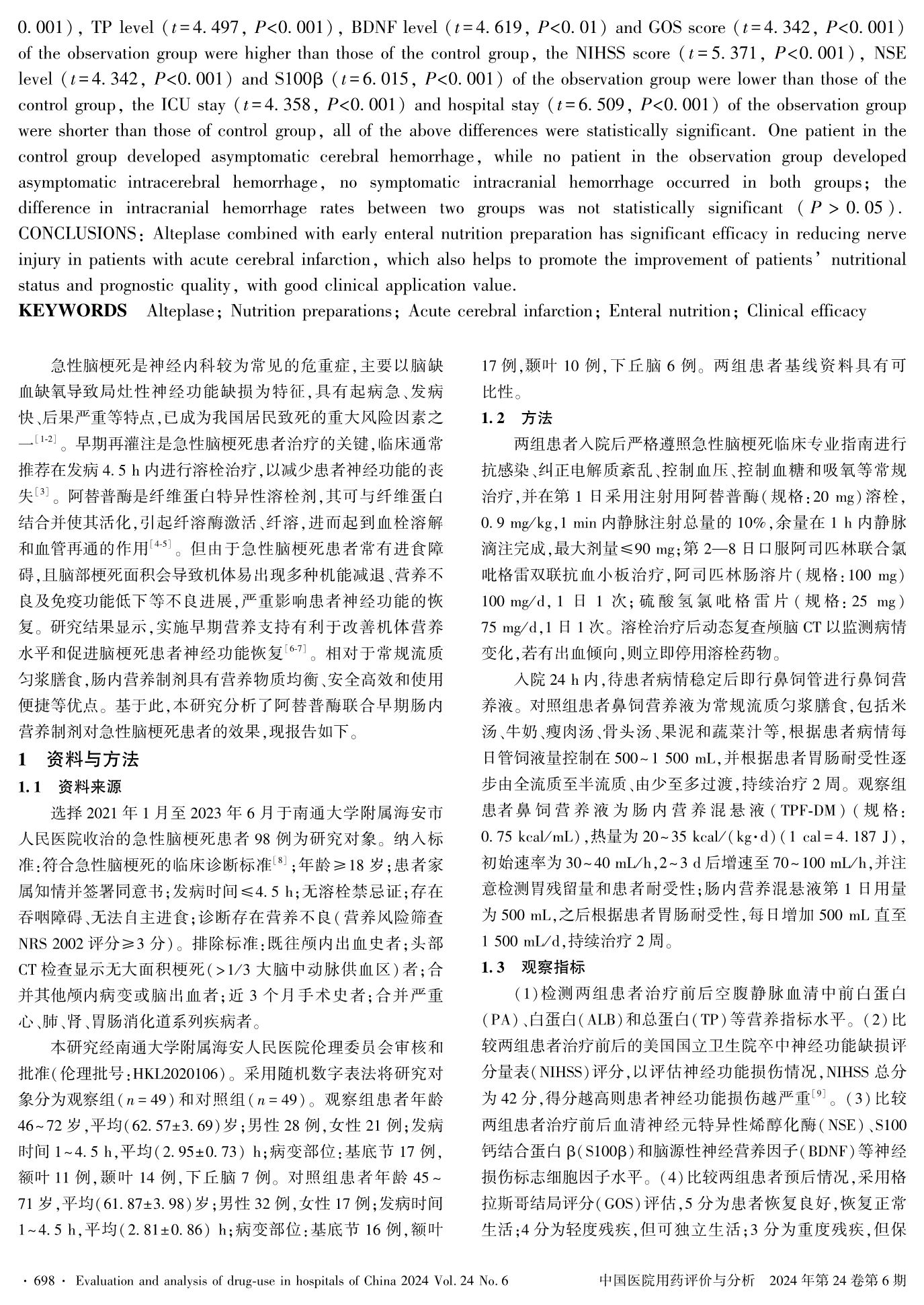 阿替普酶联合早期肠内营养制剂用于急性脑梗死患者的效果观察