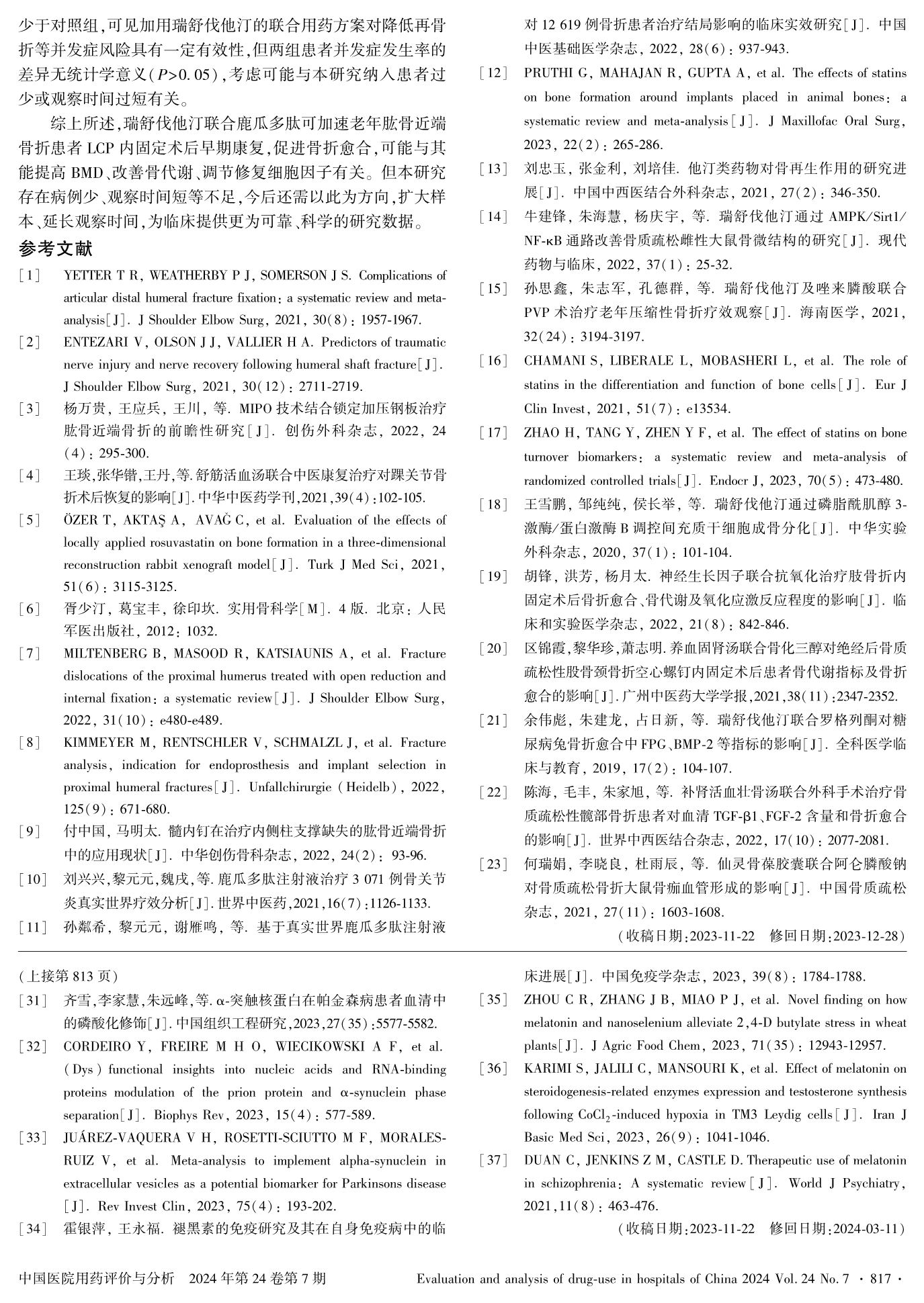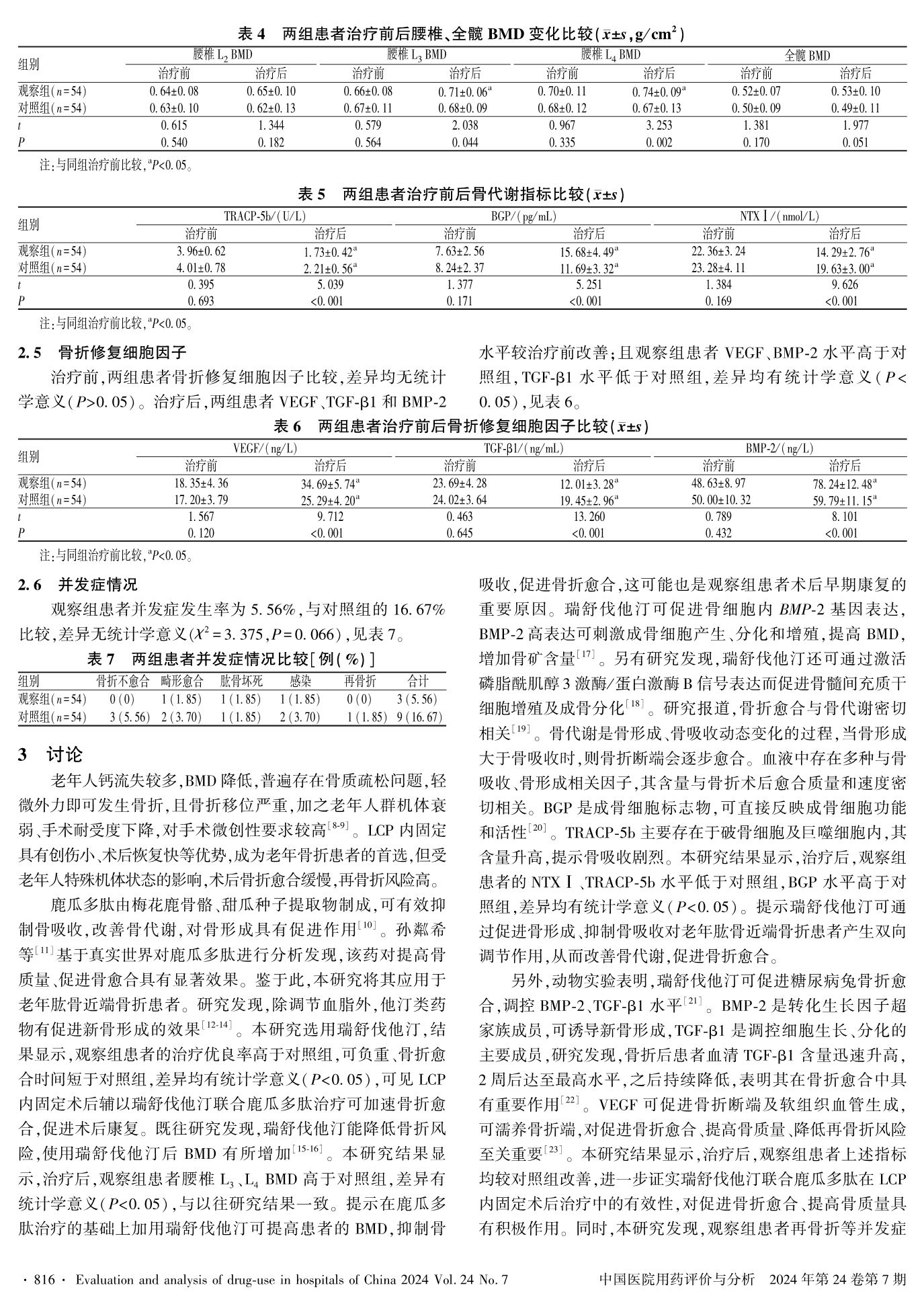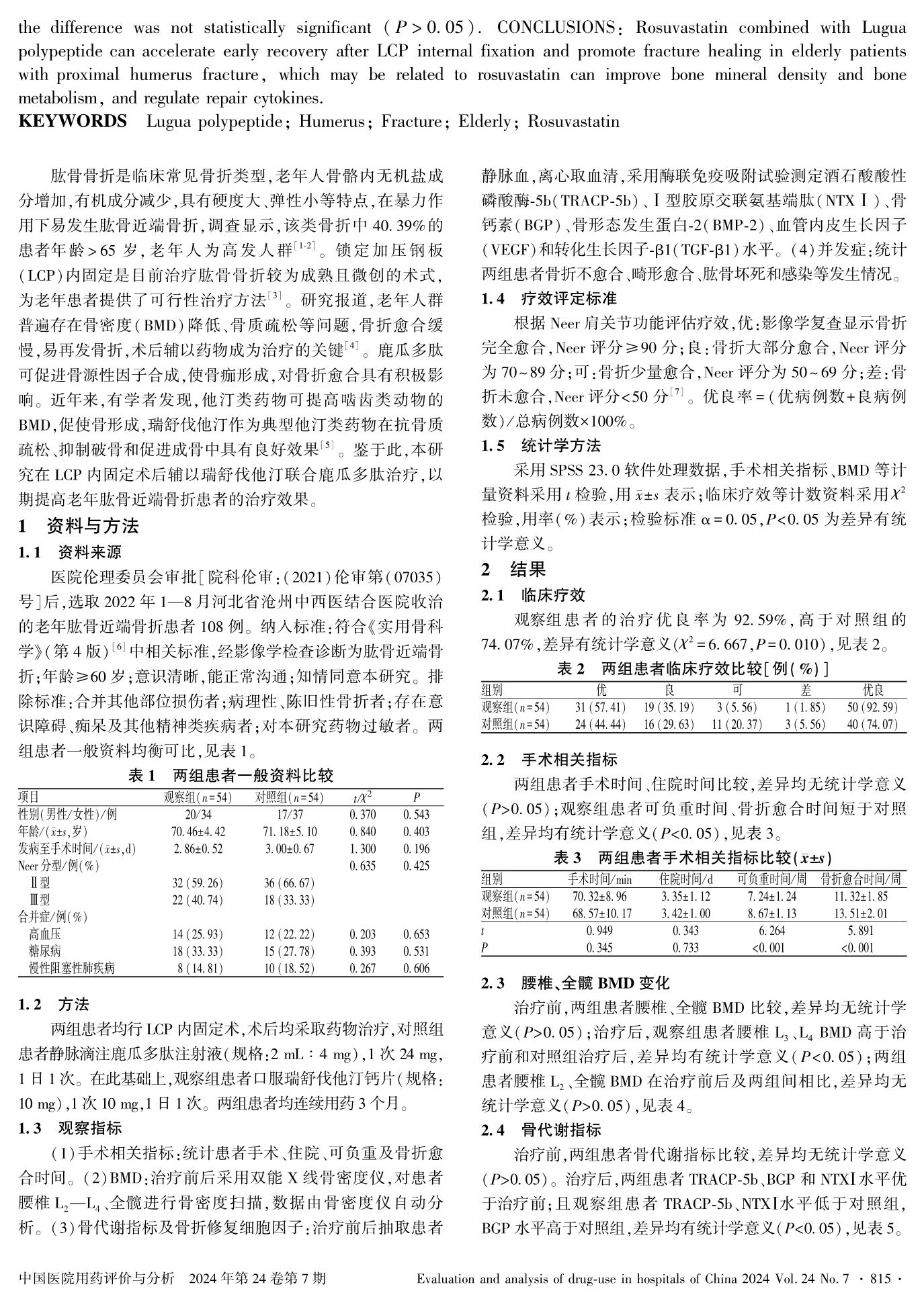 瑞舒伐他汀联合鹿瓜多肽辅助LCP内固定治疗对老年肱骨近端骨折患者骨代谢、再骨折的影响