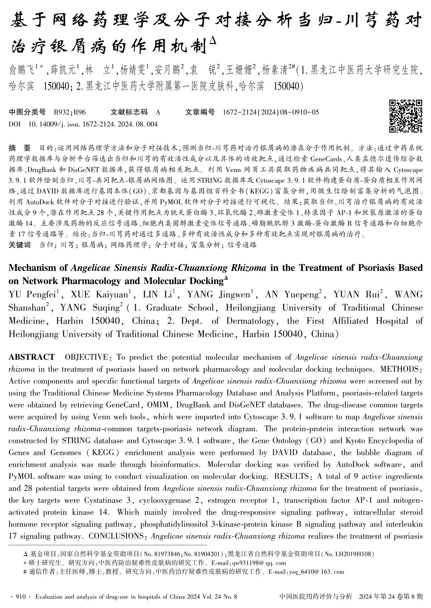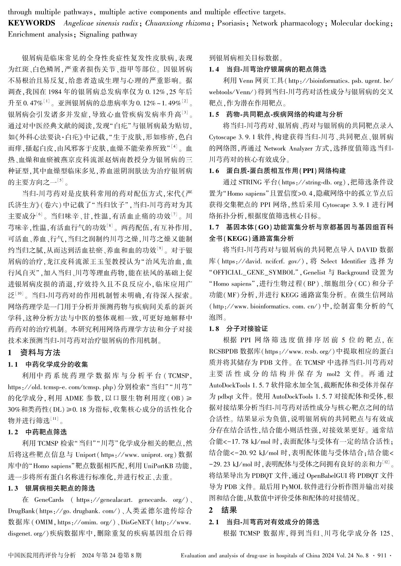 基于网络药理学及分子对接分析当归-川芎药对治疗银屑病的作用机制