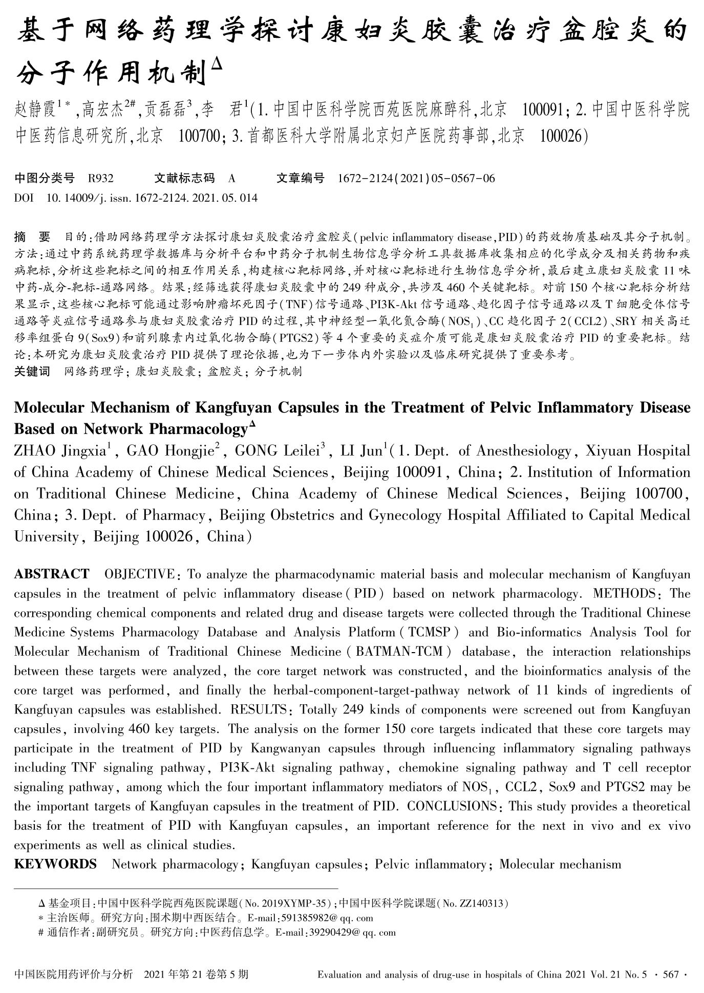 基于网络药理学探讨康妇炎胶囊治疗盆腔炎的分子作用机制