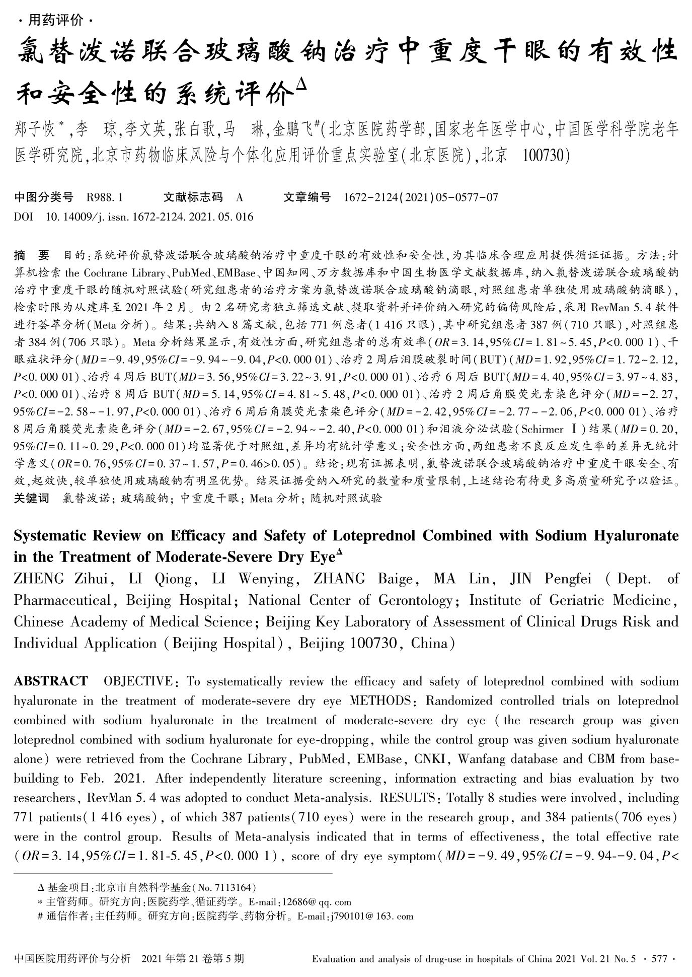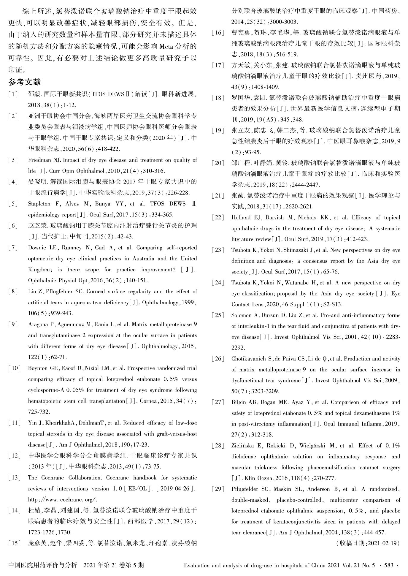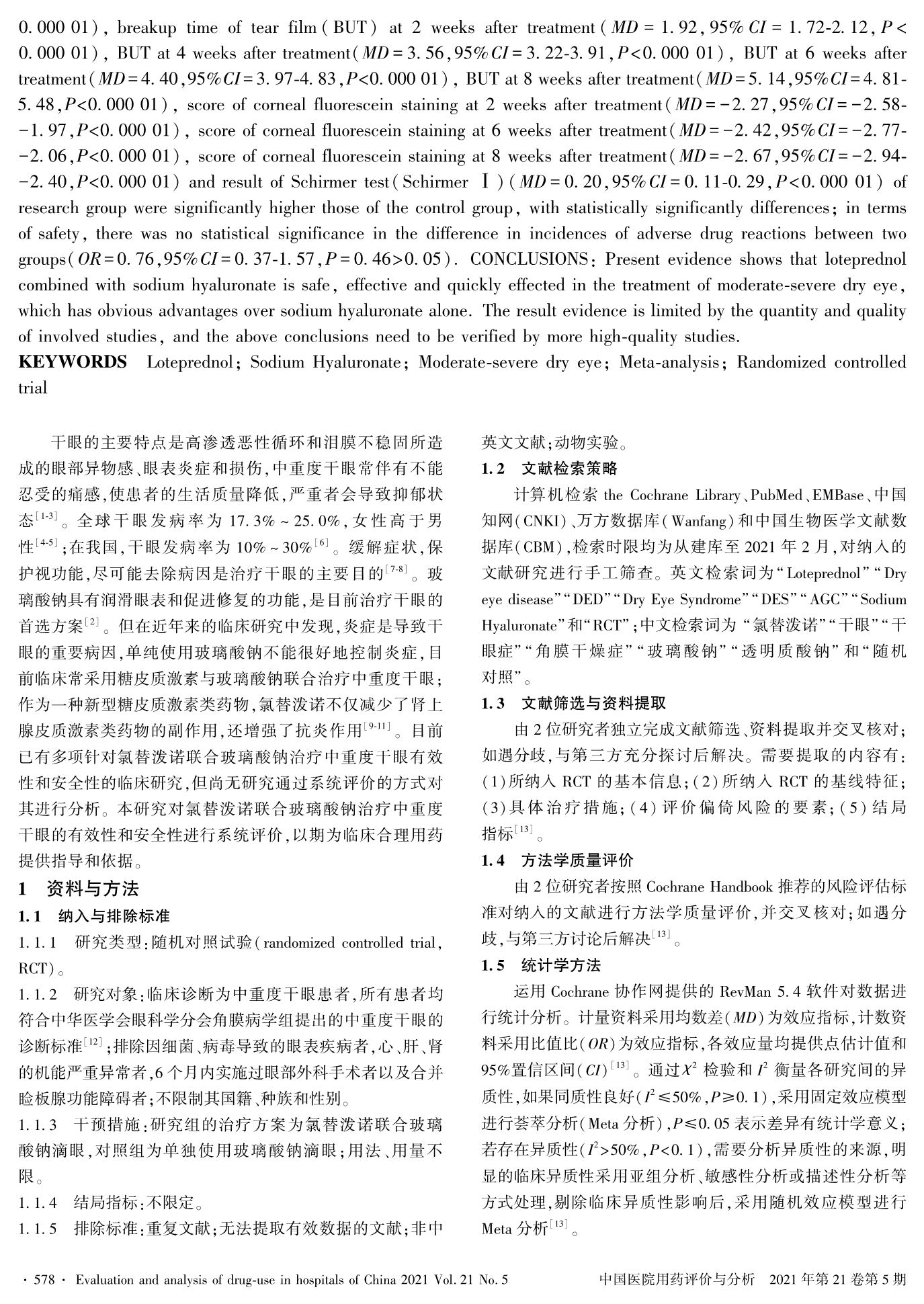 氯替泼诺联合玻璃酸钠治疗中重度干眼的有效性和安全性的系统评价