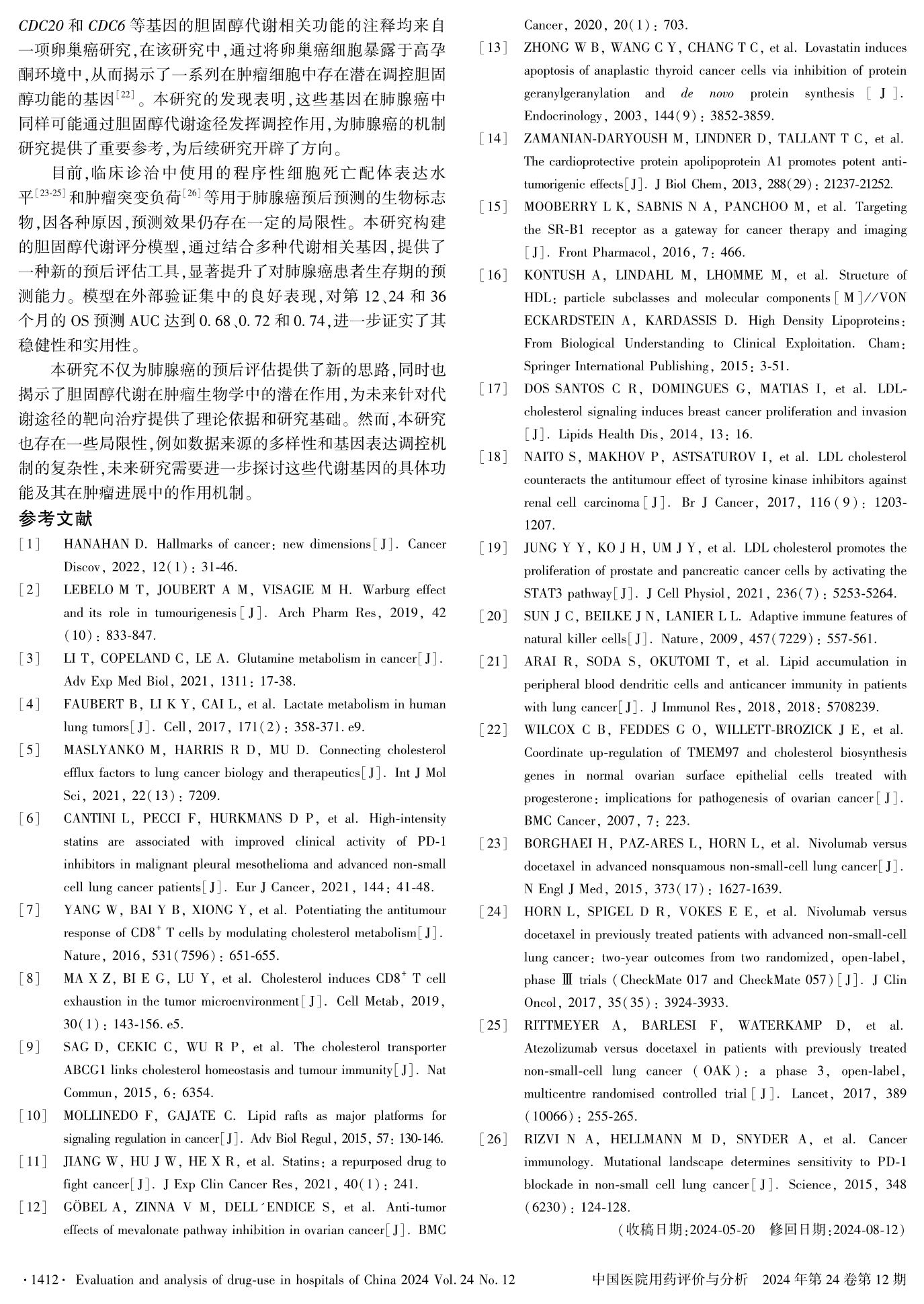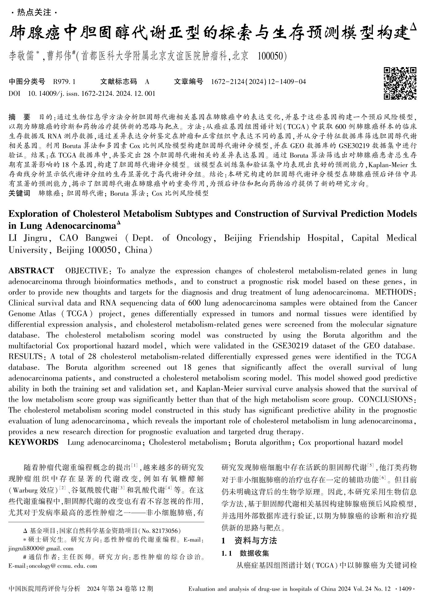 肺腺癌中胆固醇代谢亚型的探索与生存预测模型构建